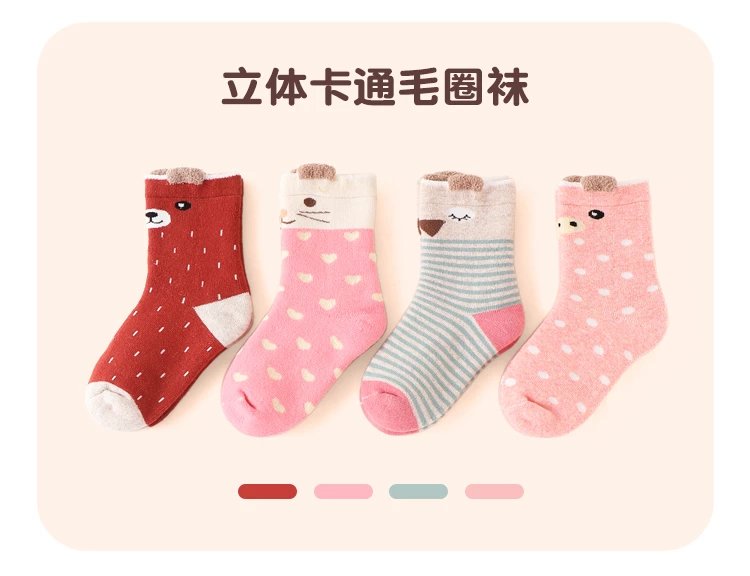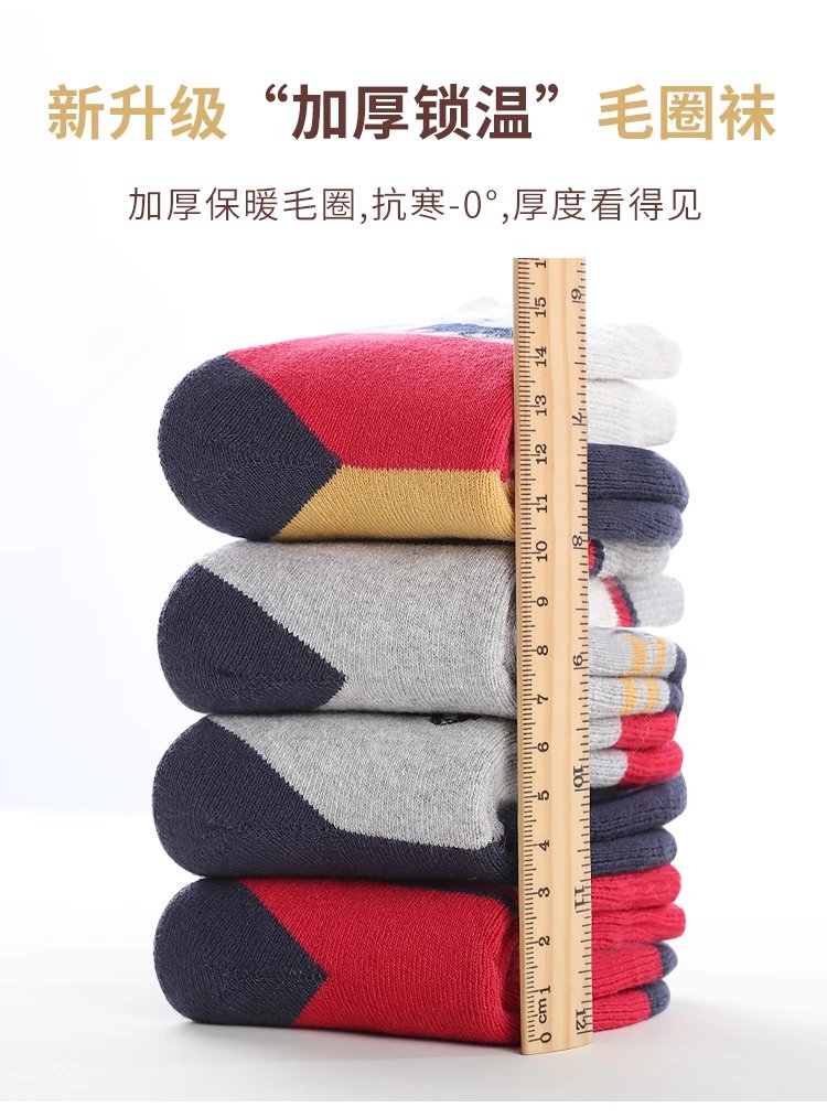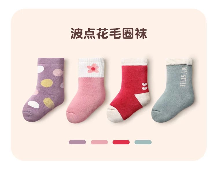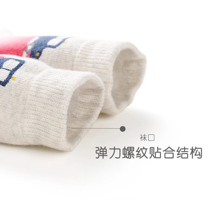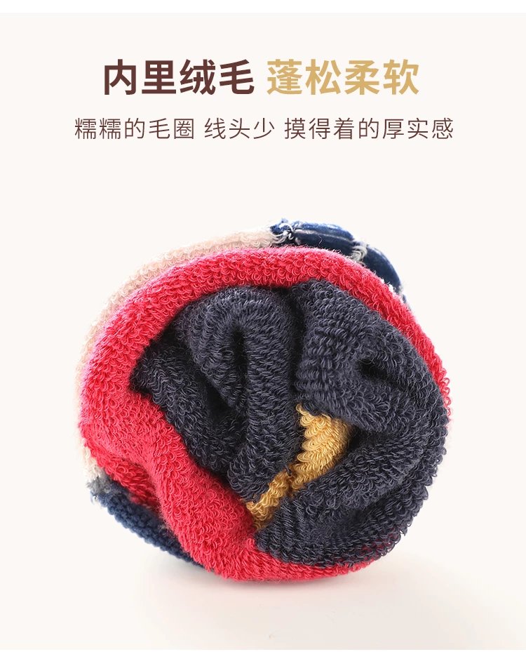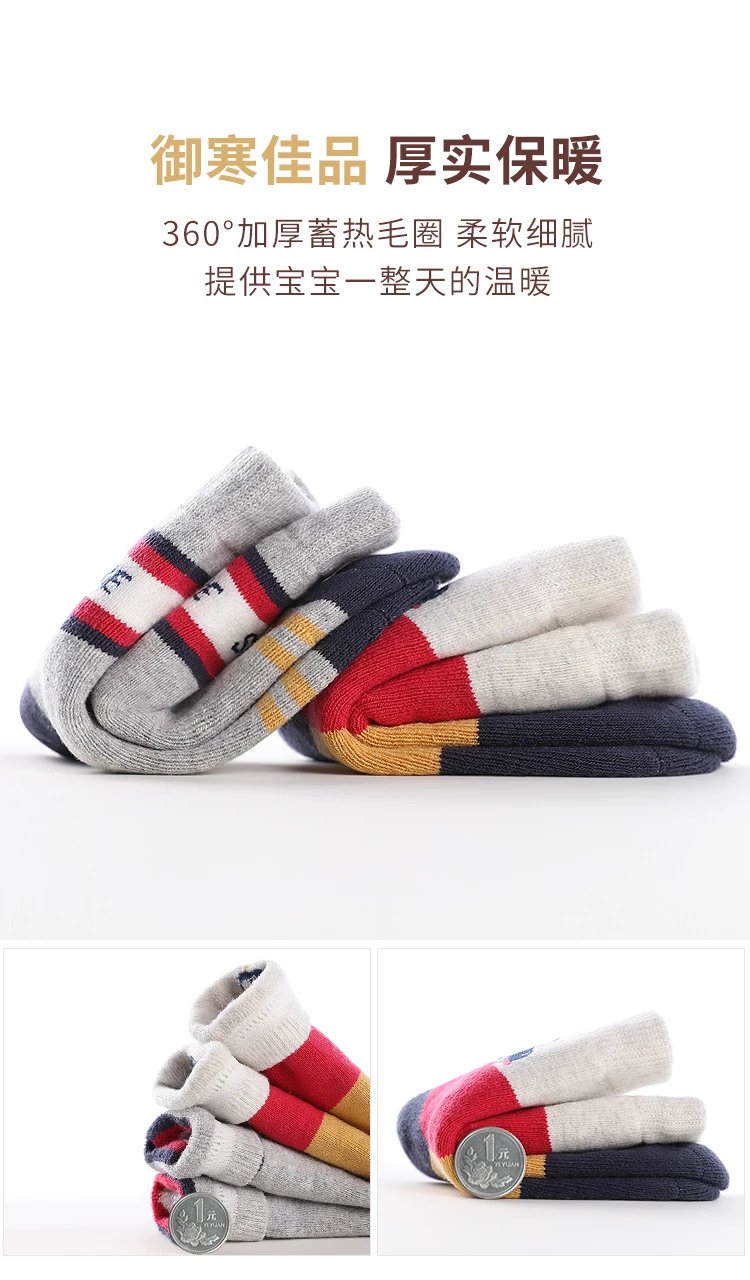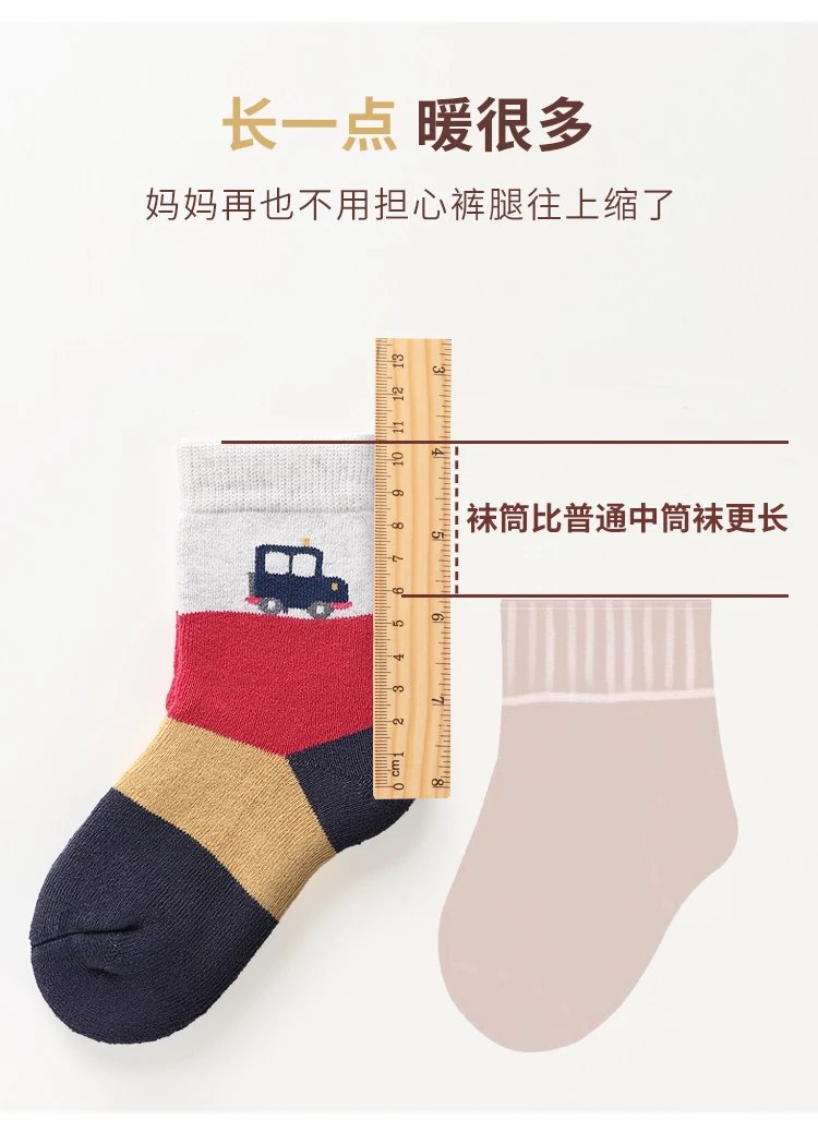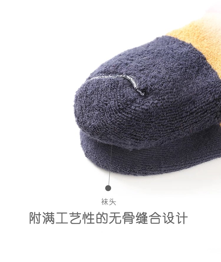 精梳棉材质,内里绒毛,糯糯的毛圈,摸得着的厚实感;无骨缝合袜头,防勒袜口,弹力皮筋,不勒小腿;袜筒比普通中筒袜长一些,妈妈再也不用担心裤腿会往上缩了~