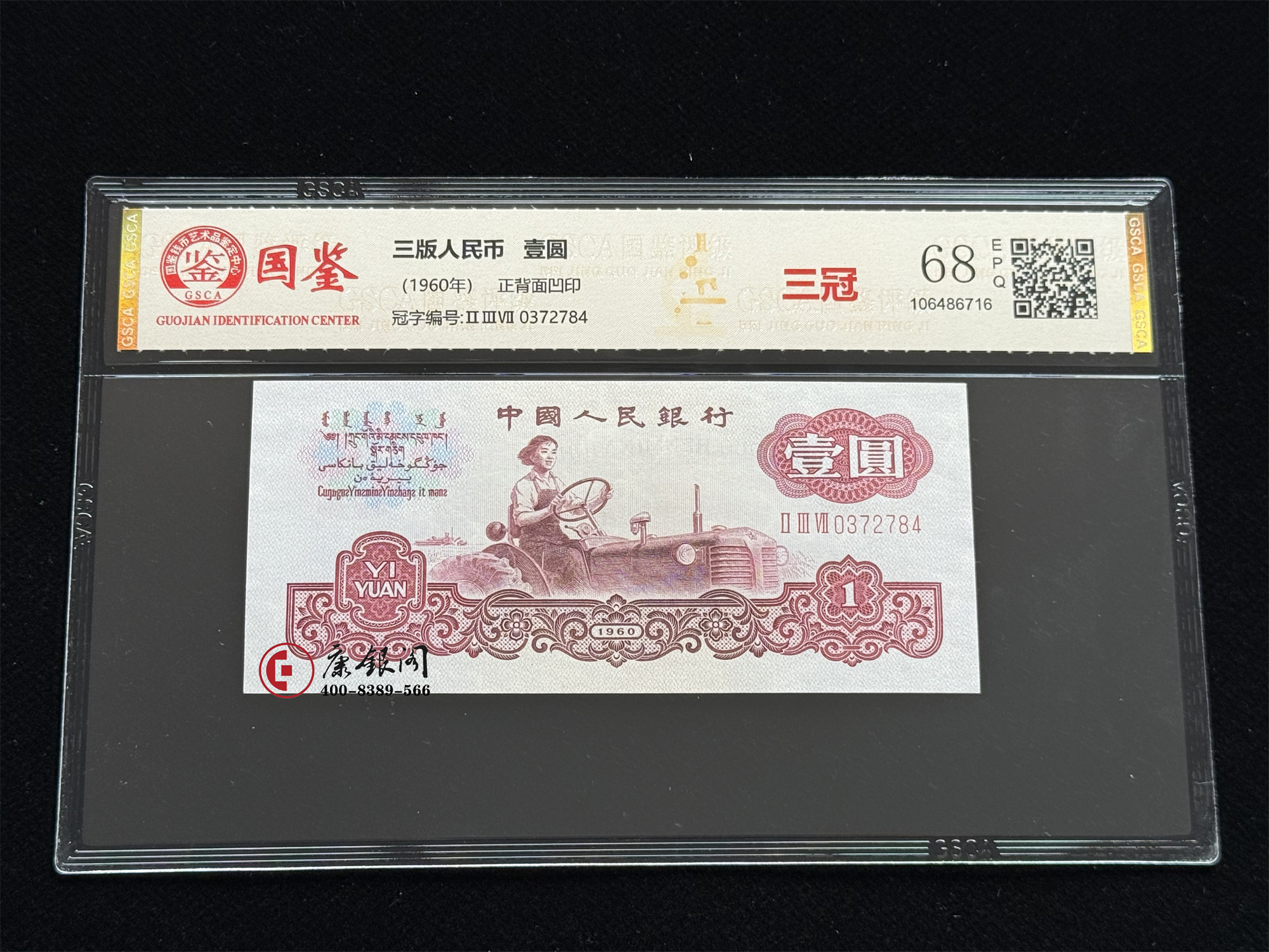 主景为人民代表步出人民大会大会堂图。在刚发行之时,一般工薪阶层人月工资只有三枚之多,一般贷款只有几十枚之多,因而其印制在全套中Z少。有2冠8号码和3冠7号码之分。
