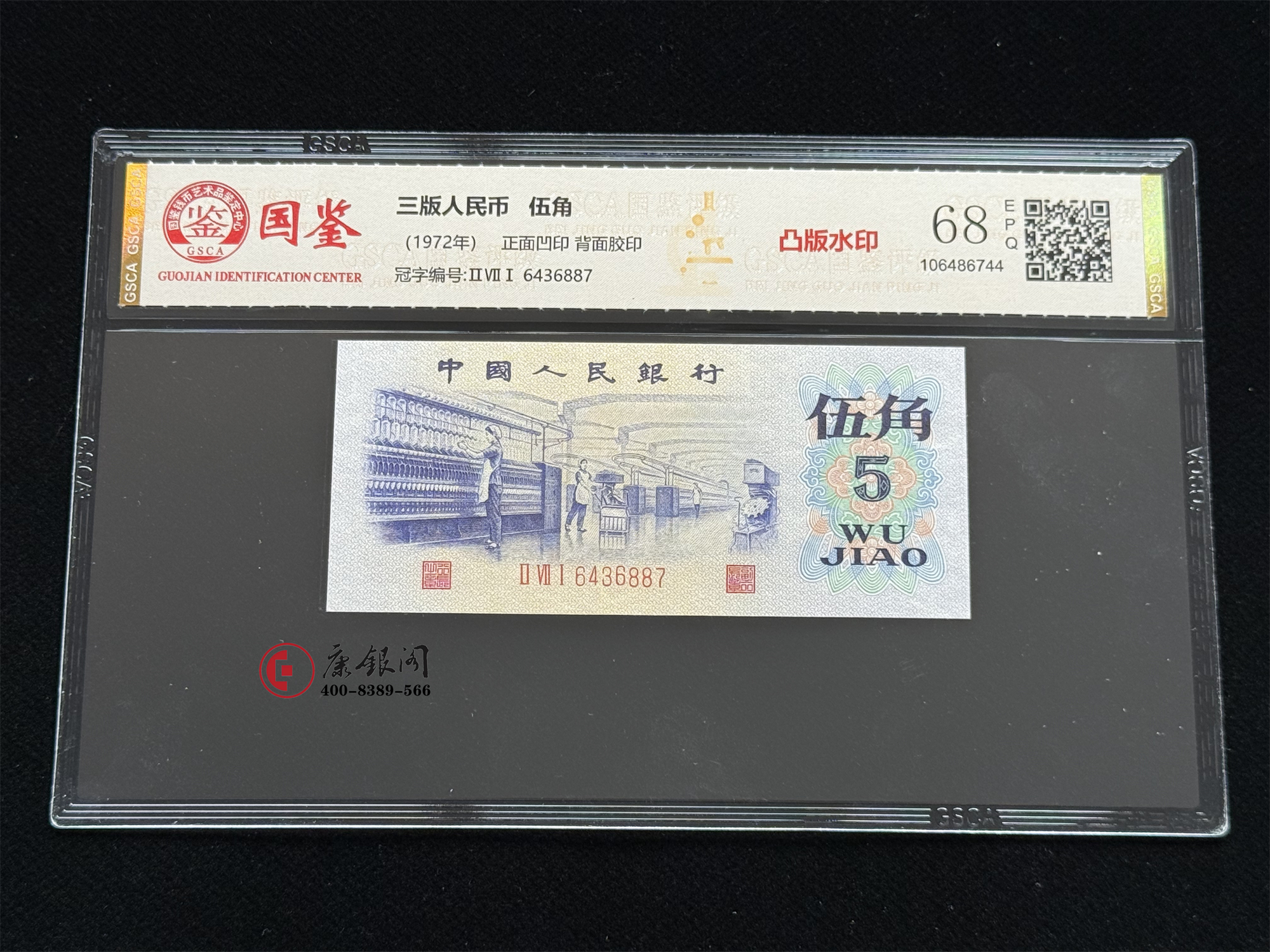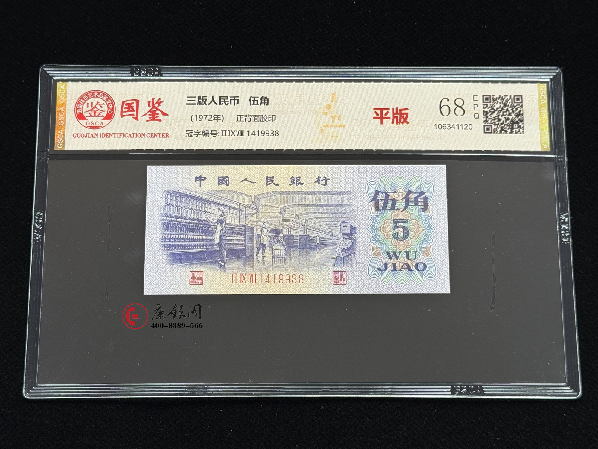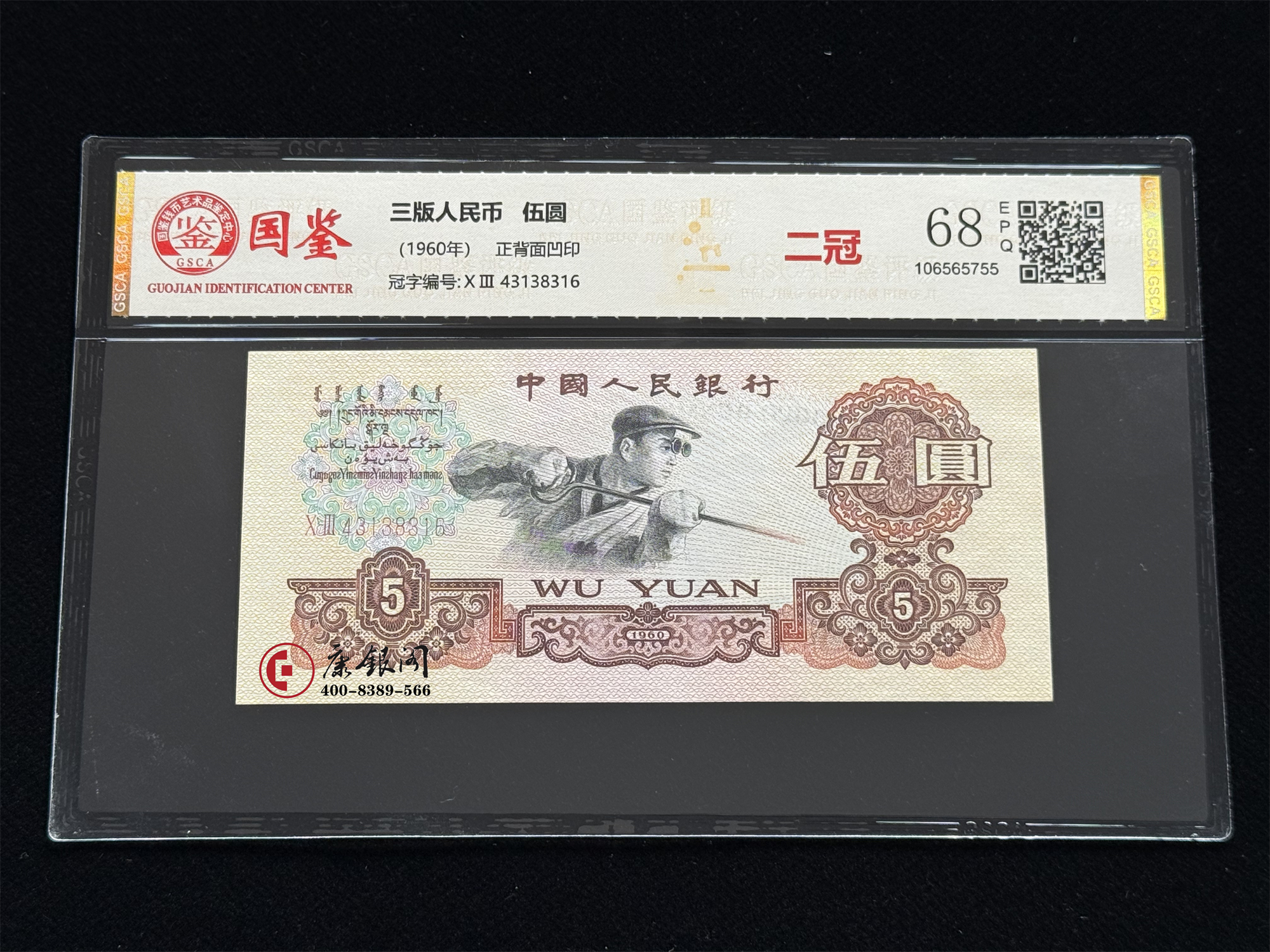 正面为炼钢工人图,俗称“炼钢伍圆”,以精湛的雕刻艺术和先进的印刷技术”荣获国际纸币行业“z佳纸币和世界z佳纸币”设计奖。是第三套人民币中的五大珍品之一。有2冠8号码和3冠7号码之分。