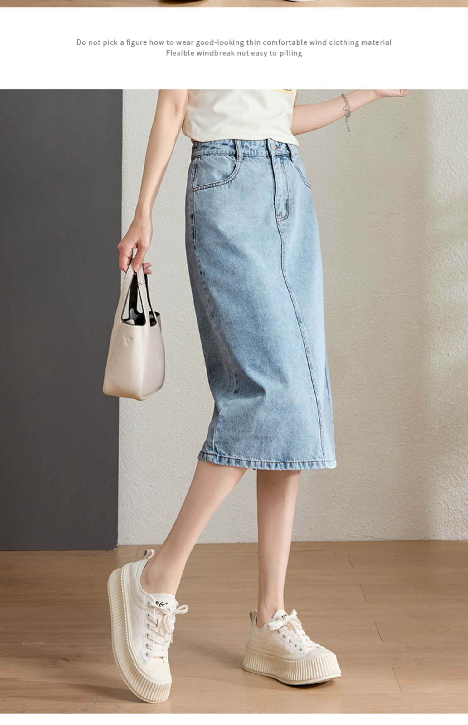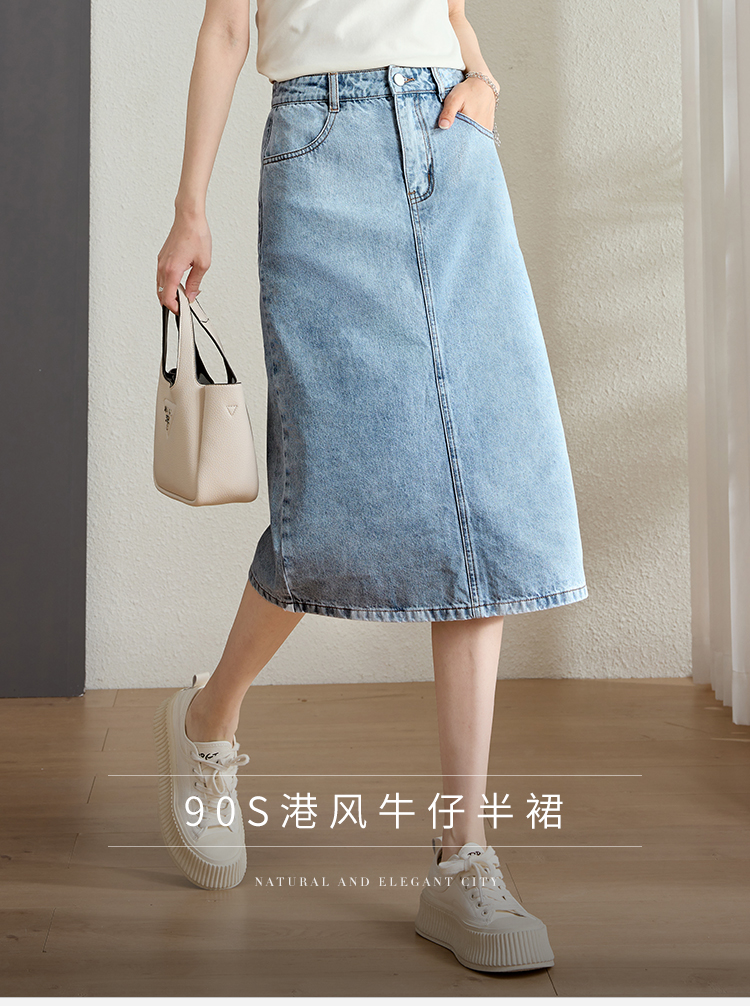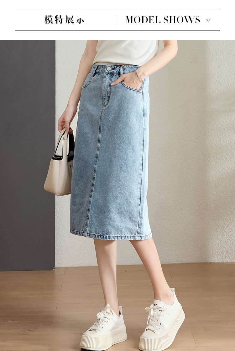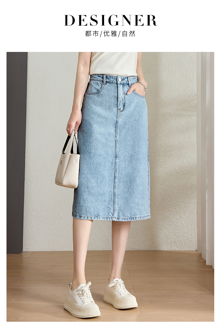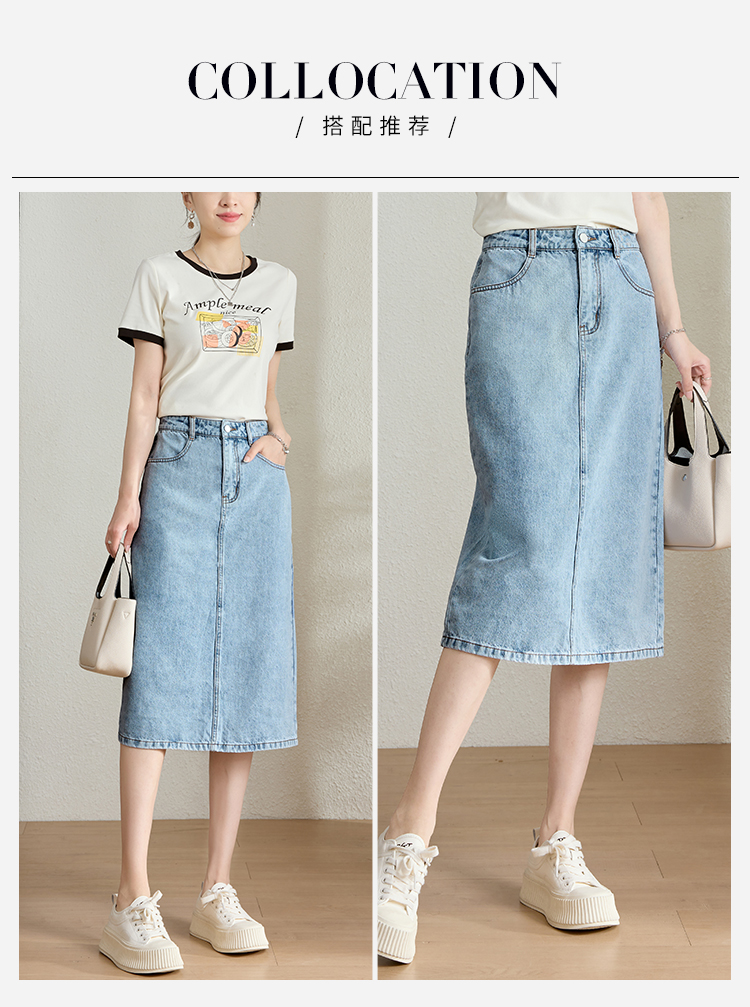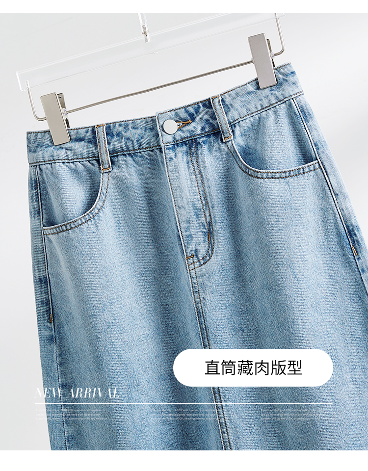 【五折购】熙世界牛仔半身裙女夏2025年新款高腰显瘦开叉中长裙包臀直筒裙子