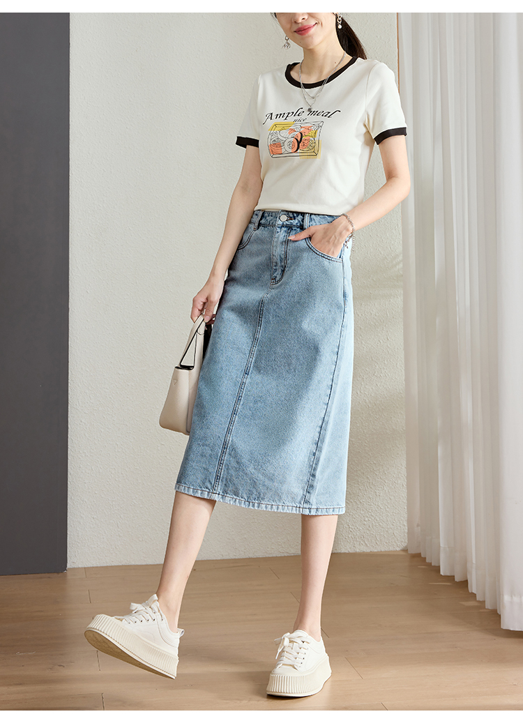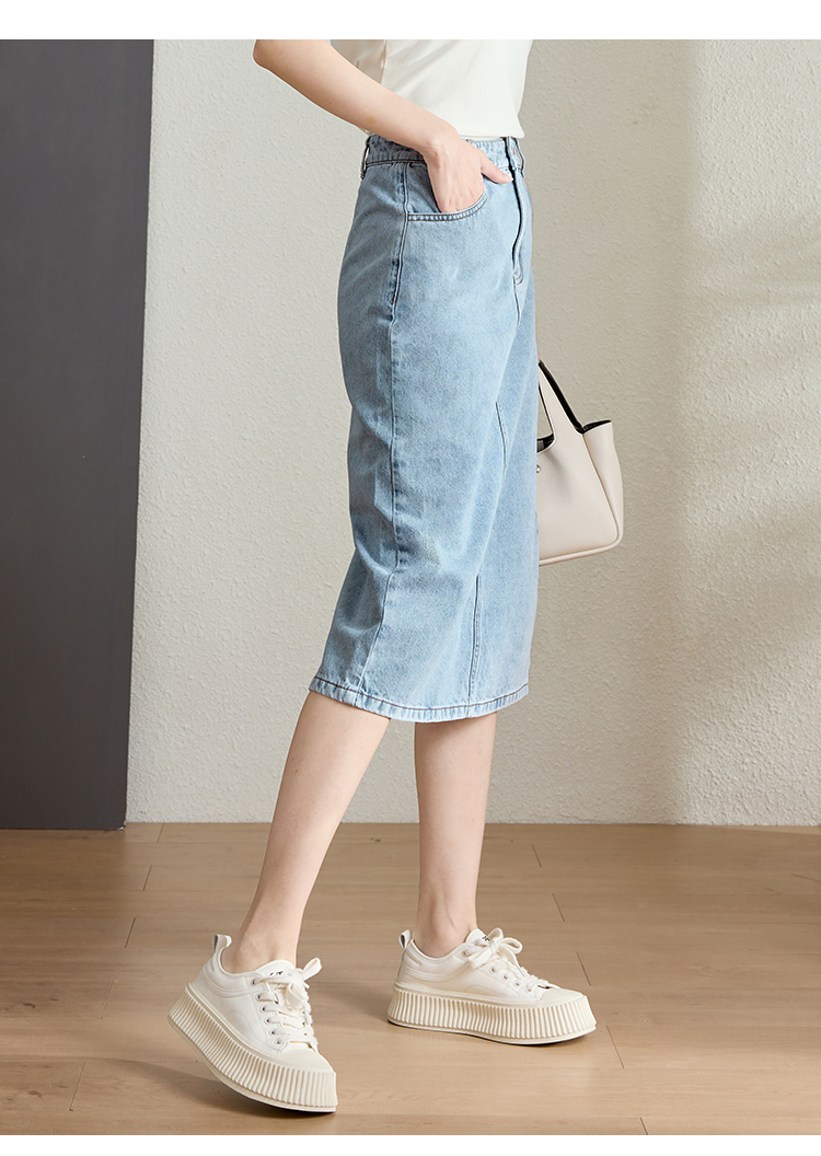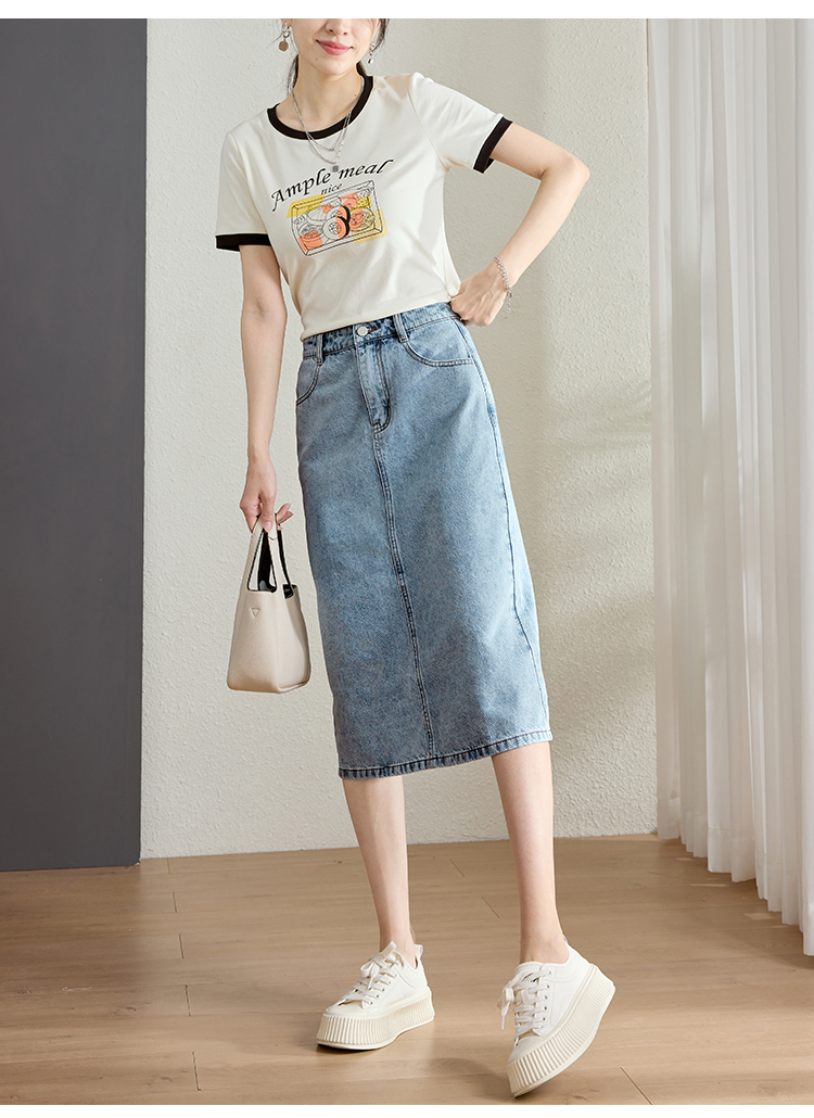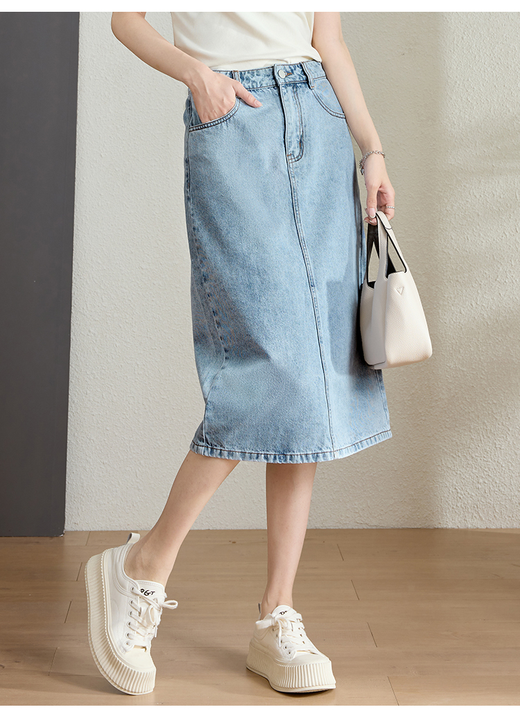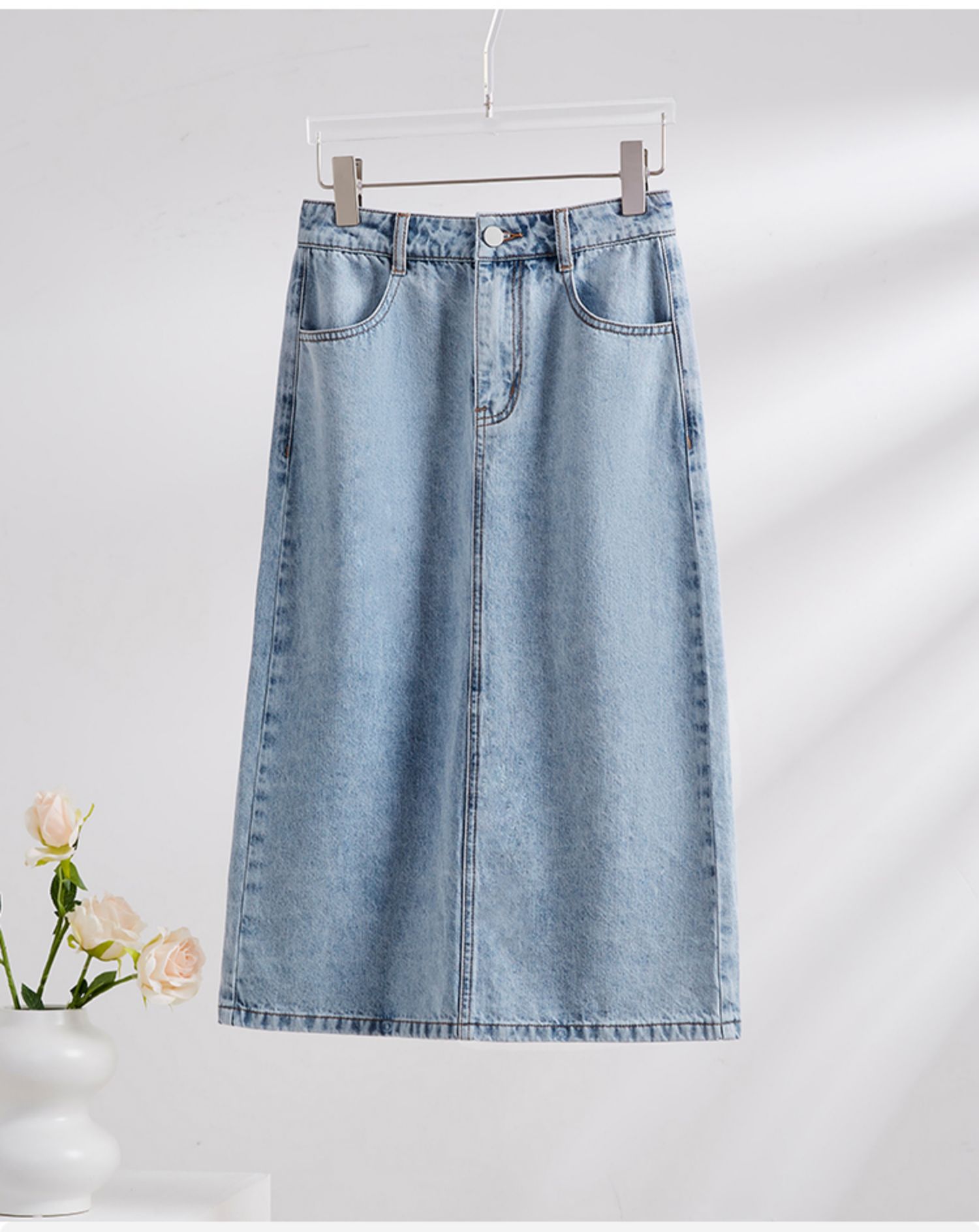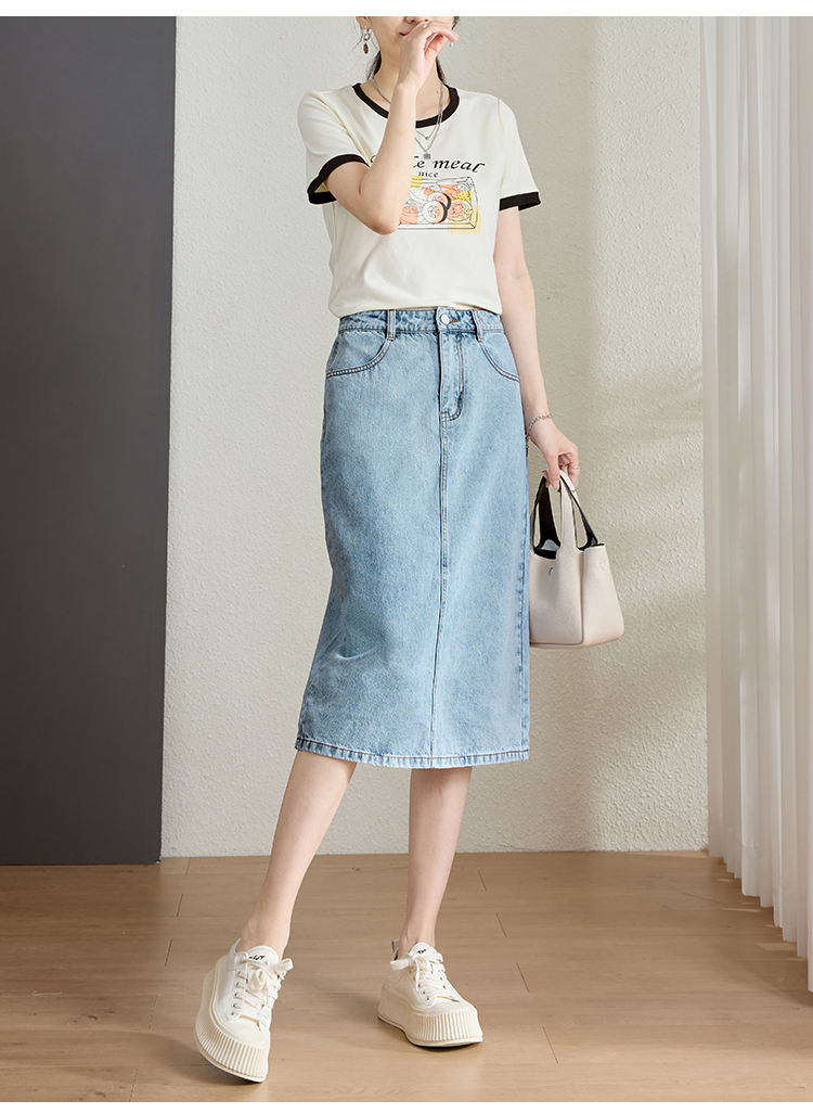 【五折购】熙世界牛仔半身裙女夏2025年新款高腰显瘦开叉中长裙包臀直筒裙子