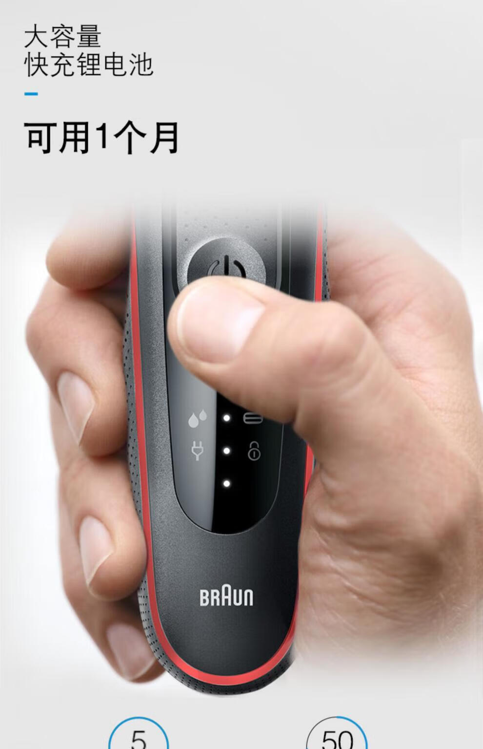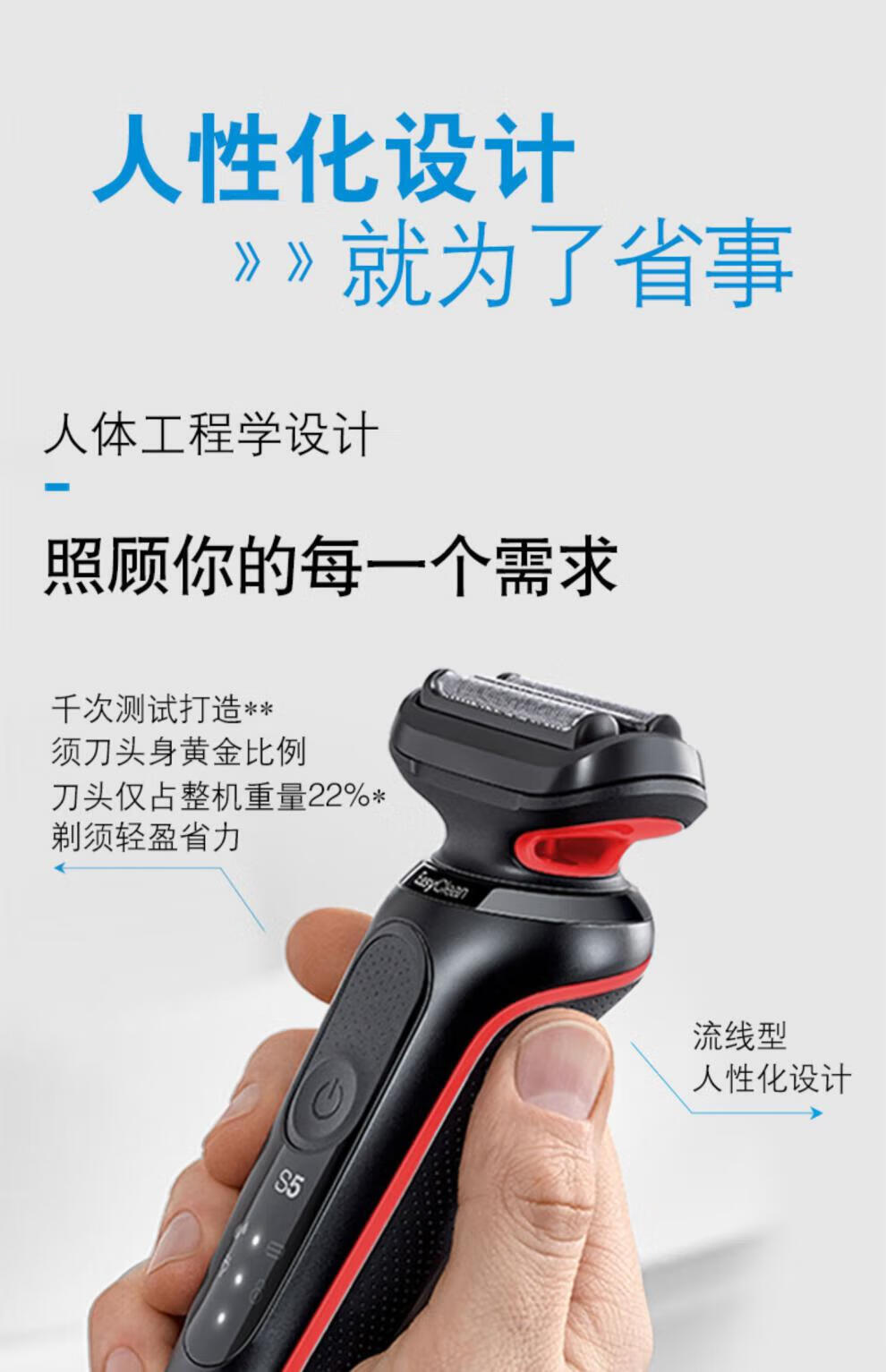 【分仓直发包邮】博朗5系50-R1000s电动剃须刀(红色)