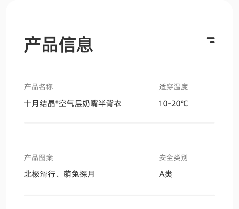【满200减100】婴儿空气层保暖半背衣
