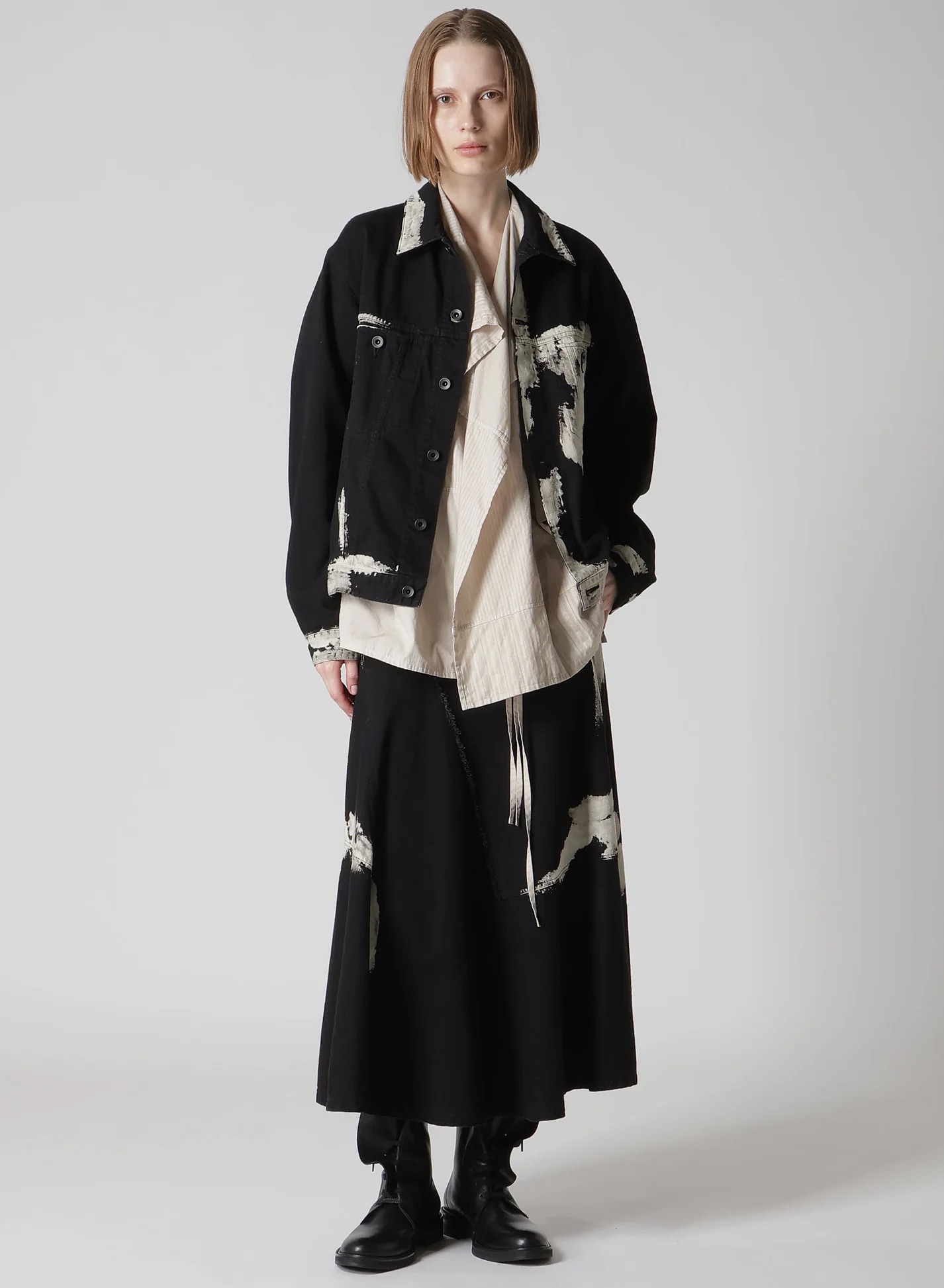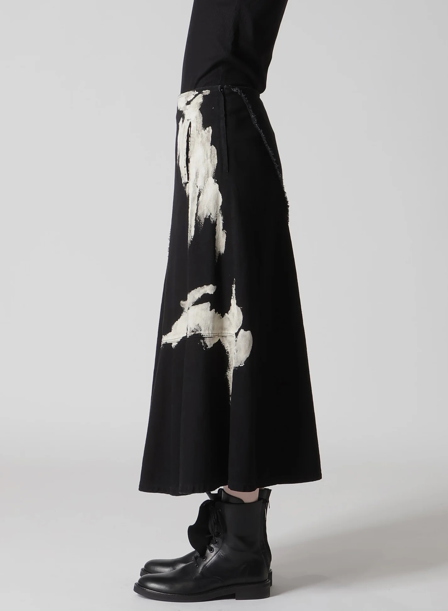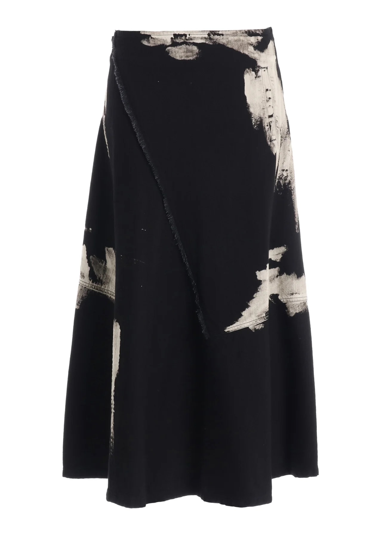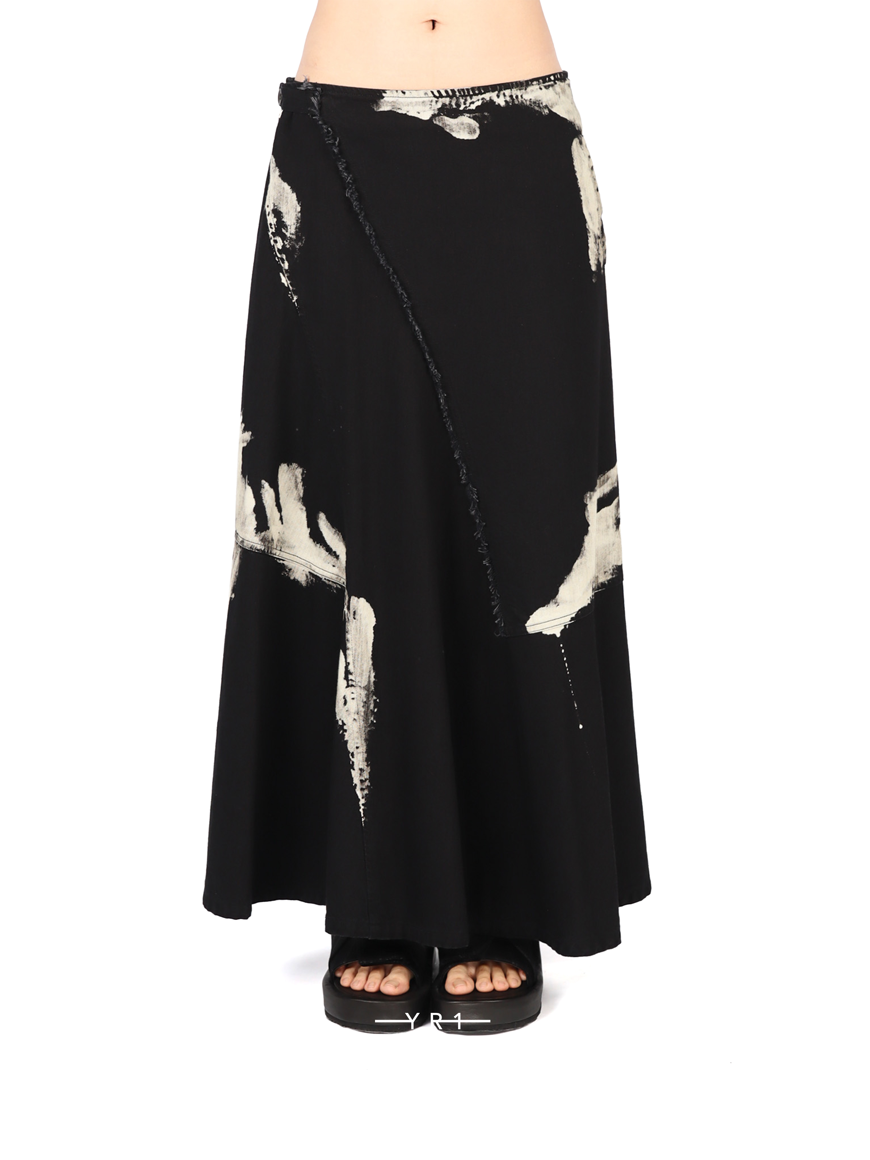 这款8盎司牛仔长裙采用深黑色牛仔布,经过放电处理,带来独特的漂白效果。腰部可通过纽扣调节。由于每件作品均为手工漂白,因此可能存在个体差异。牛仔布材质可能会导致颜色褪色。