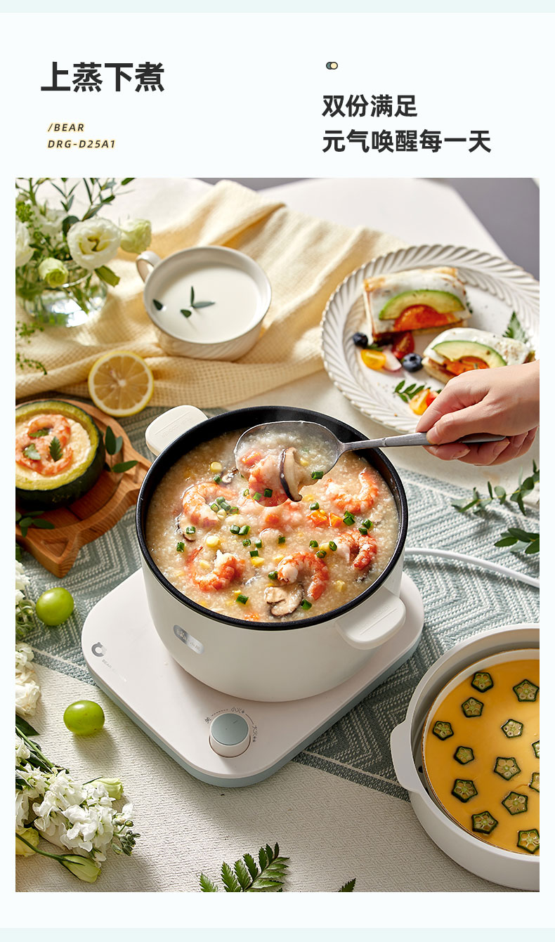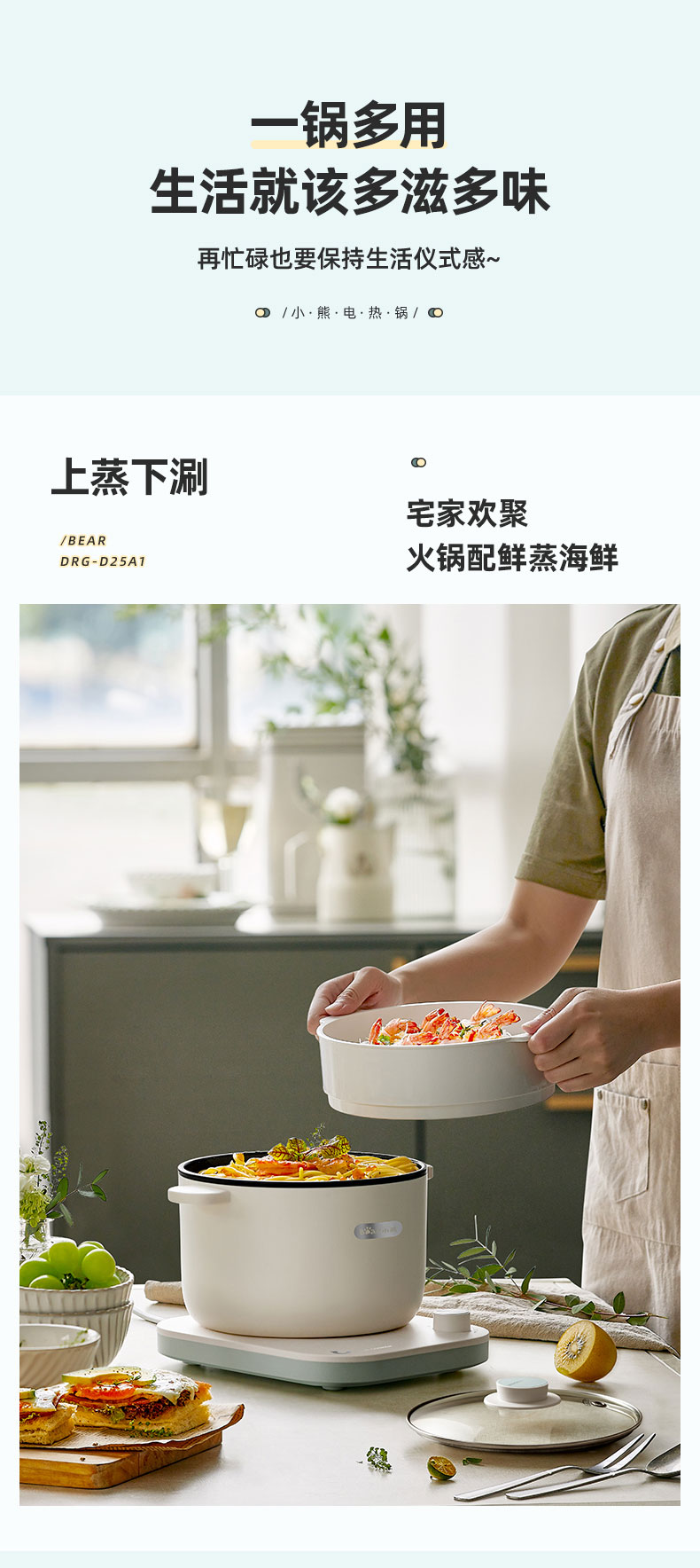 小熊 多用途电热锅【2.5L分体式设计+蒸笼】 DRG-D25A1