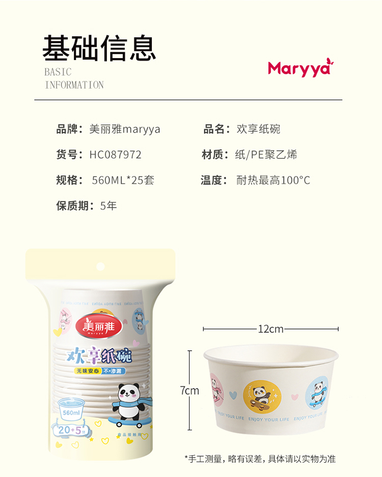 【批发】美丽雅欢享纸碗560ML(20个加赠5个)