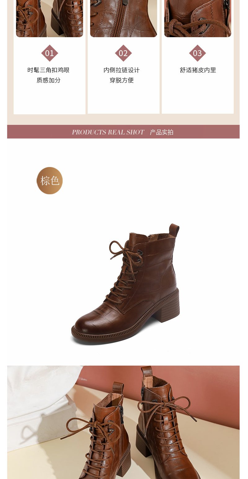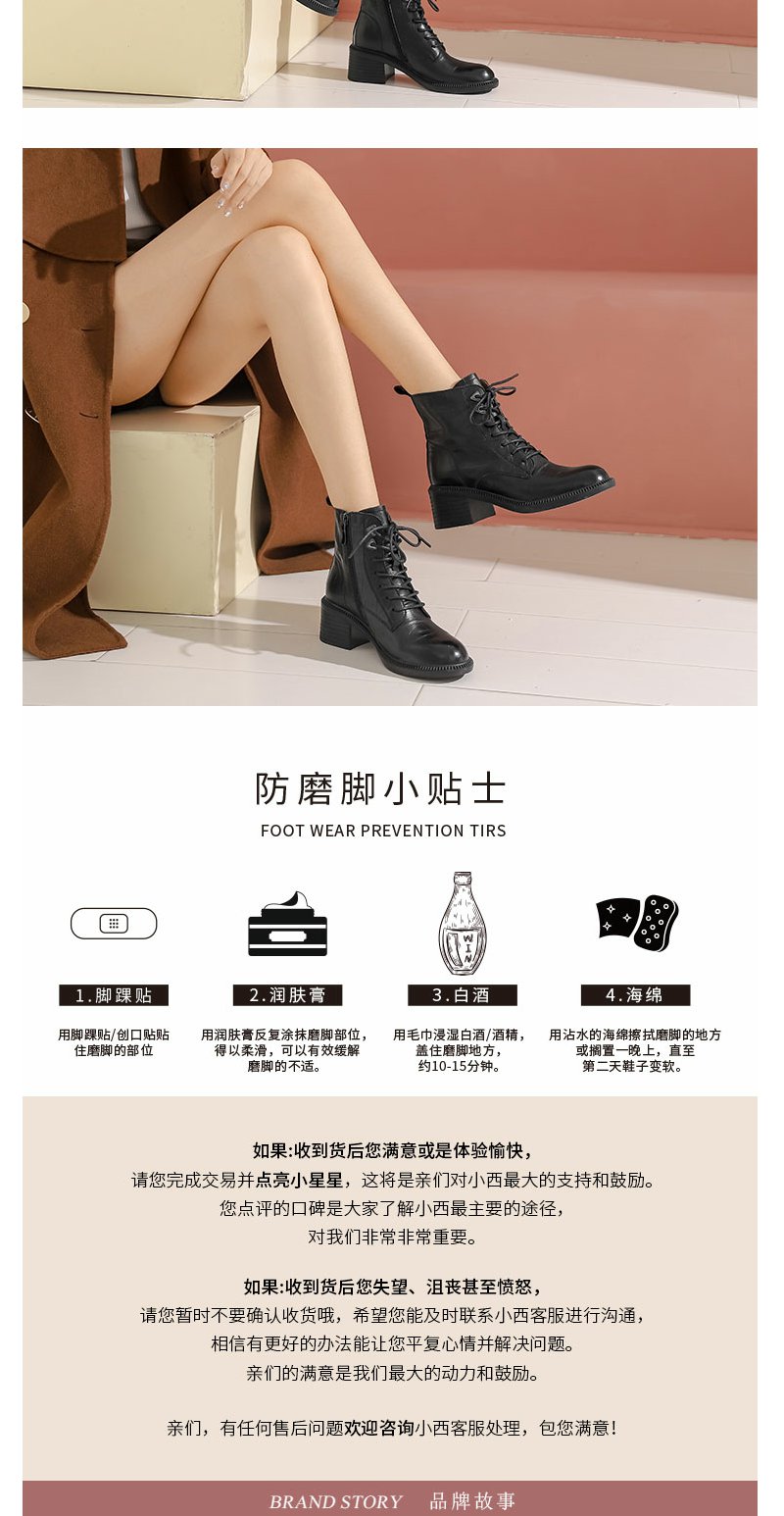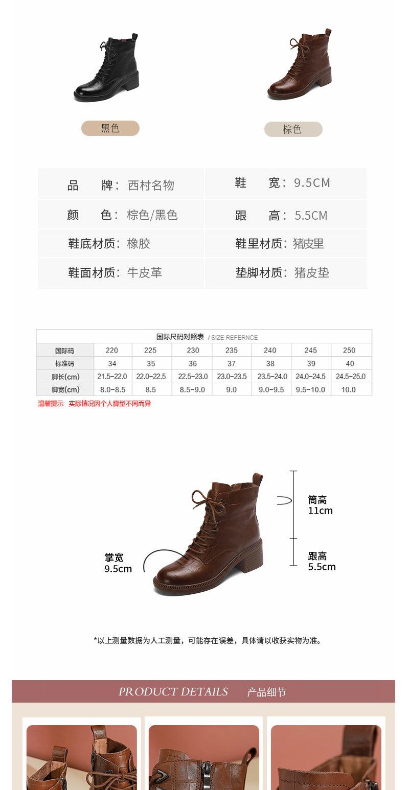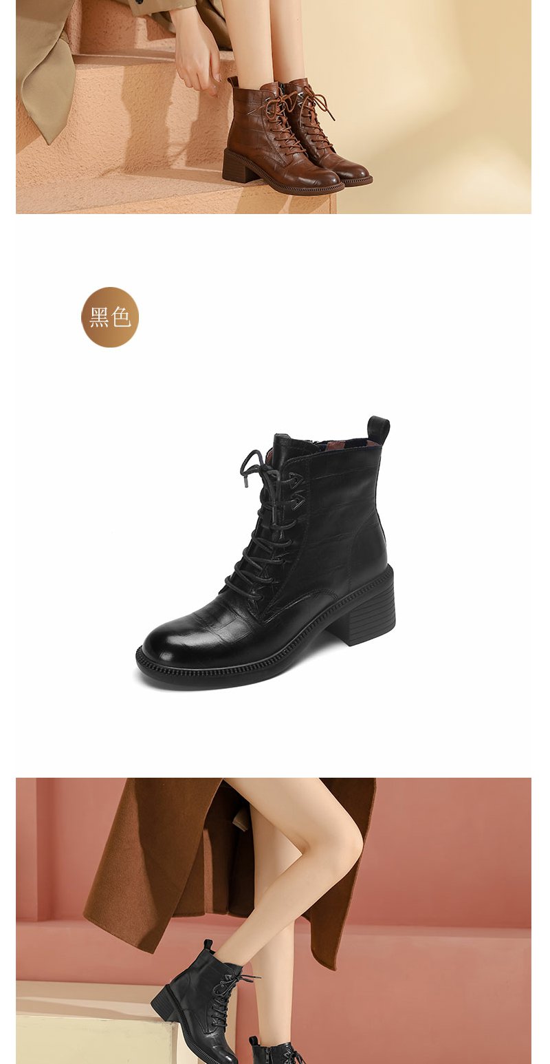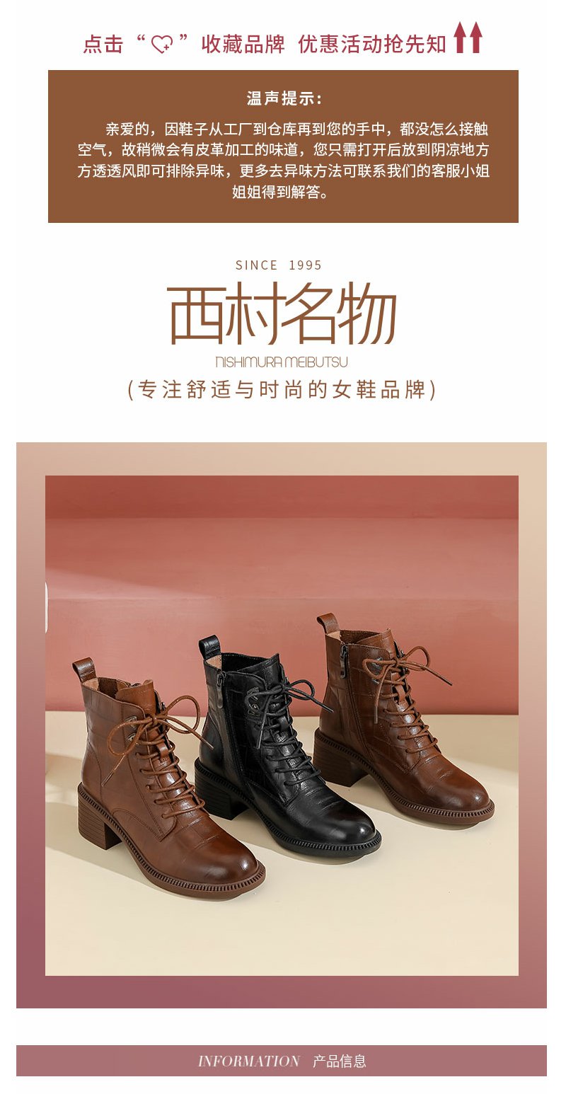 西村名物22年冬新款时髦石头压纹绑带马丁靴粗跟短靴女43931