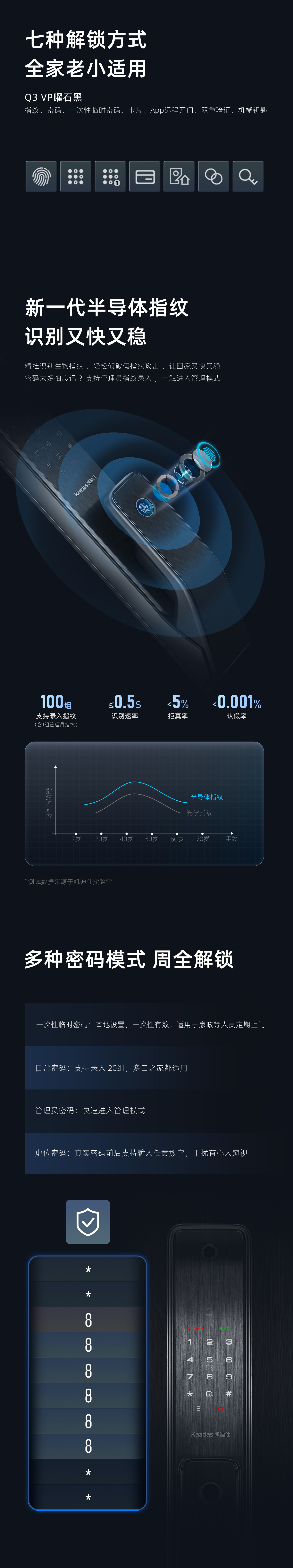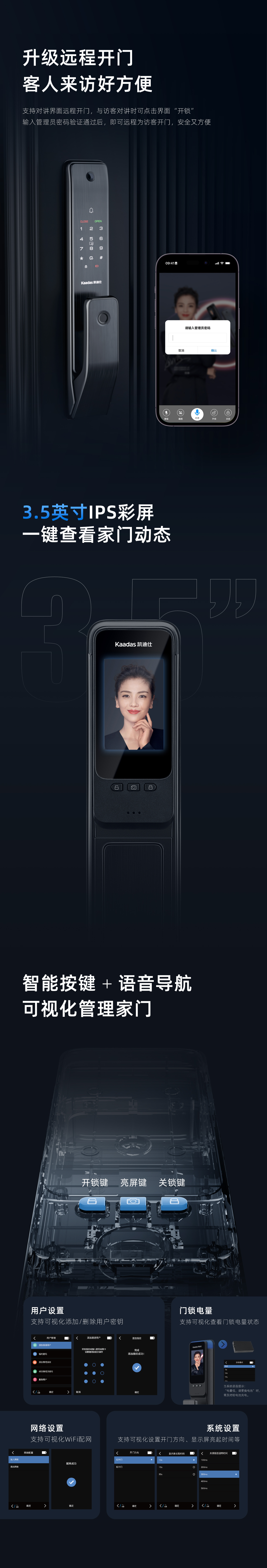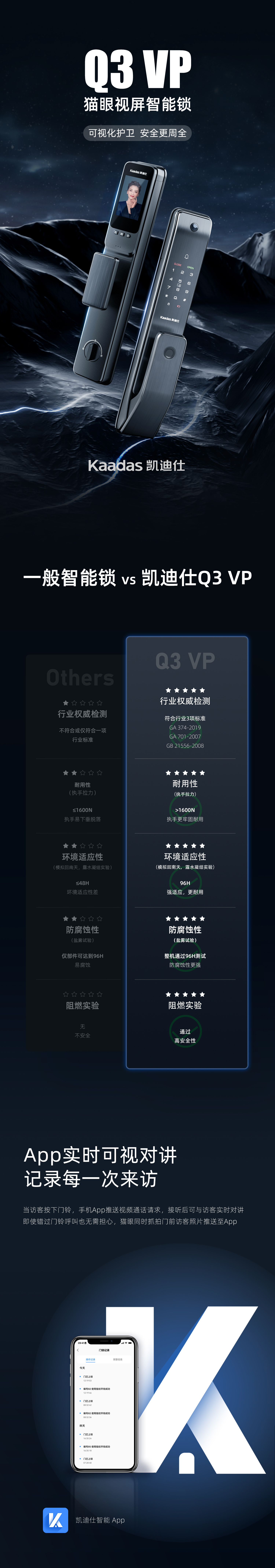 【美居】凯迪仕(KAADAS)智能门锁 智能锁 指纹锁 电子锁 家用可视猫眼内屏密码锁 Q3 VP星空黑
