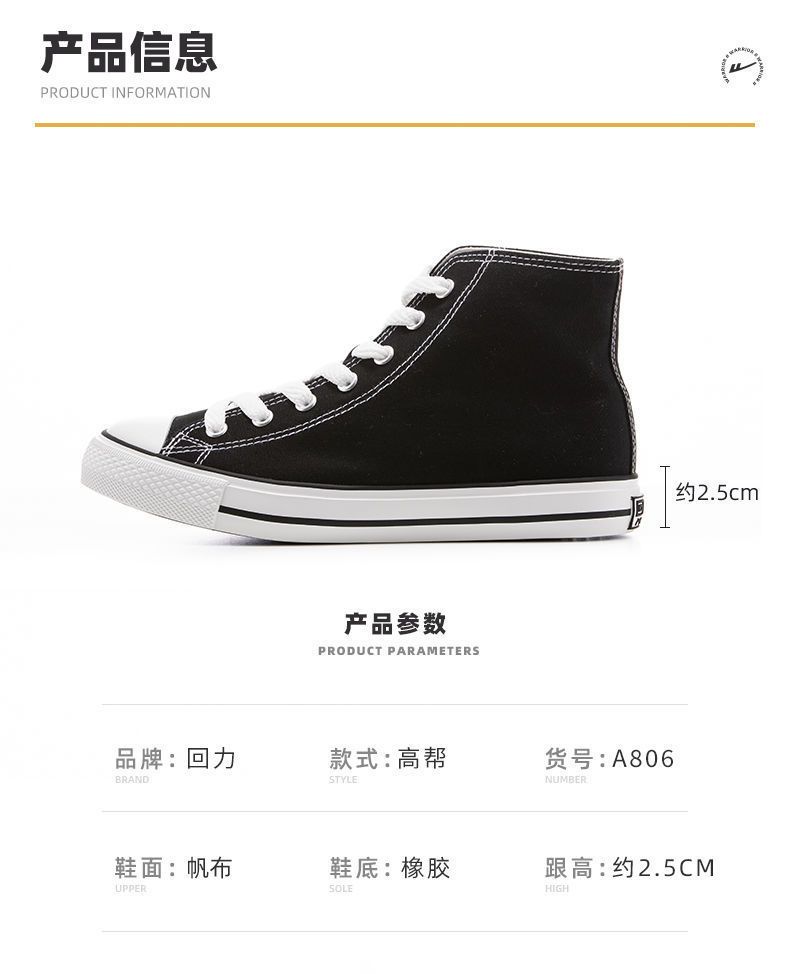 回力帆布鞋女秋季高帮休闲运动板鞋经典百搭情侣款小白鞋子男款