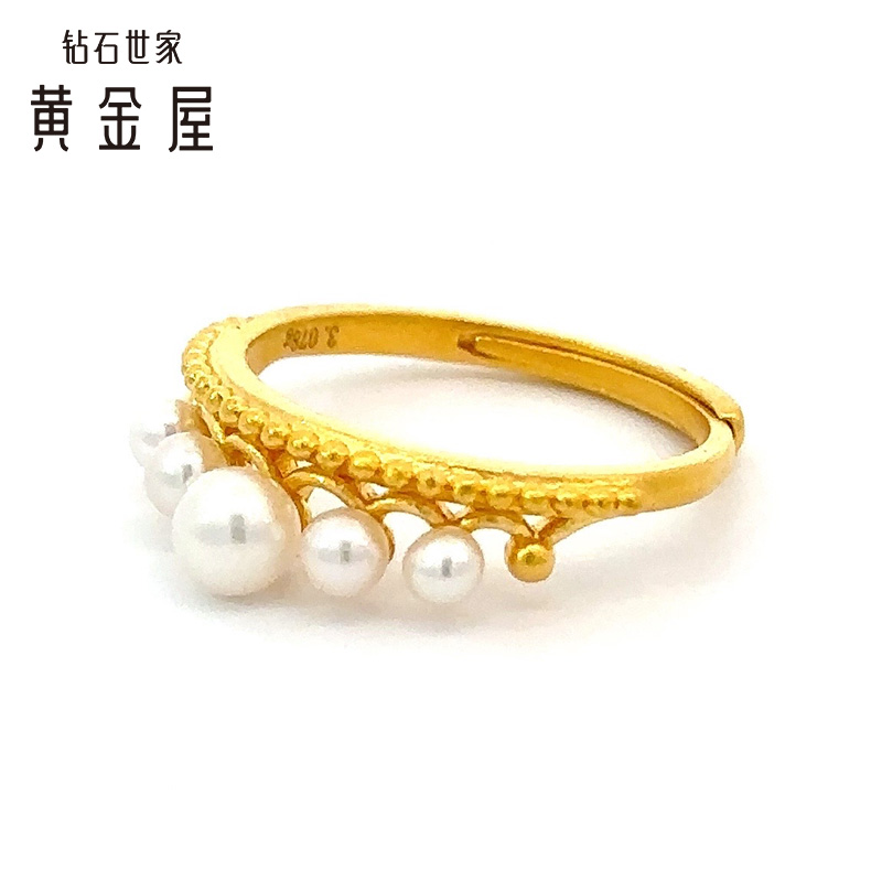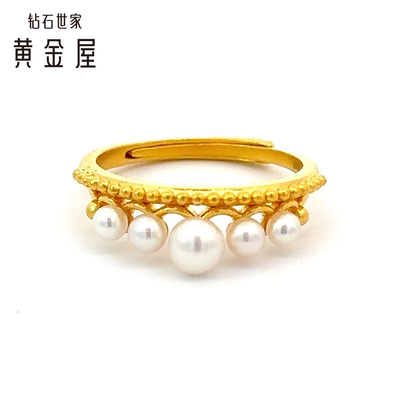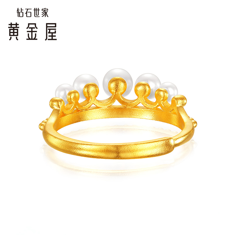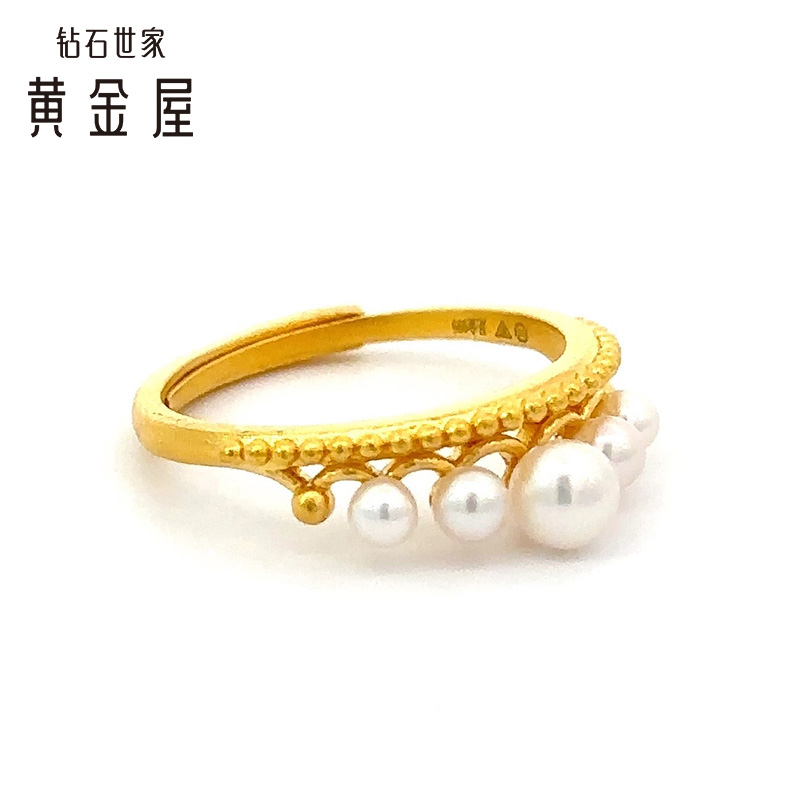 【定价黄金】【限时8折】【现货】钻石世家 黄金珍珠皇冠戒指(5颗)约3克