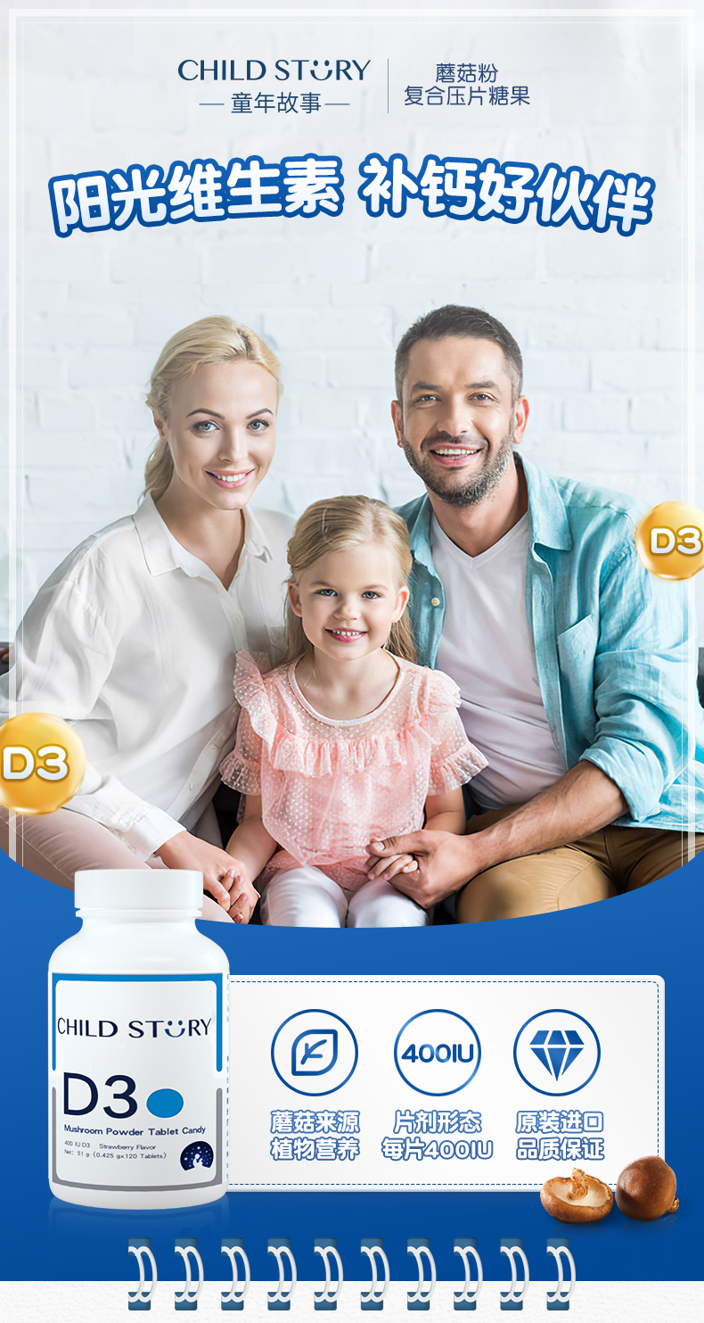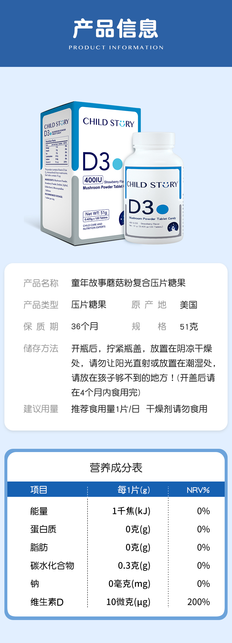 童年故事蘑菇粉复合压片糖果120片维生素d儿童成人d3维d3片剂vd3