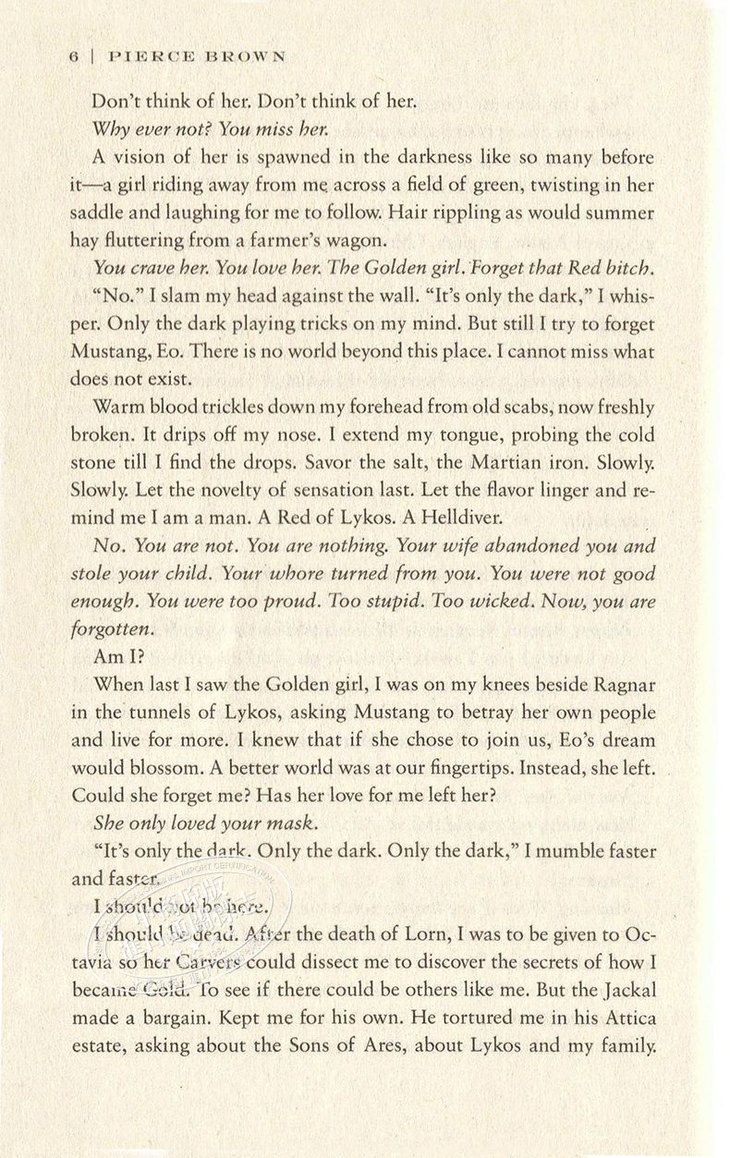 Morning Star: Darrow is a Helldiver, one of a thousand men and women who live in the vast caves beneath the surface of Mars, generations of people who spend their lives toiling to mine the precious elements that will allow the planet to be terraformed. Just knowing that, one day, people will be able to walk the surface of the planet is enough to justify their sacrifice. The Earth is dying, and Darrow and his people are the only hope humanity has left.