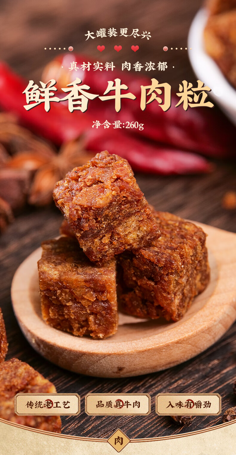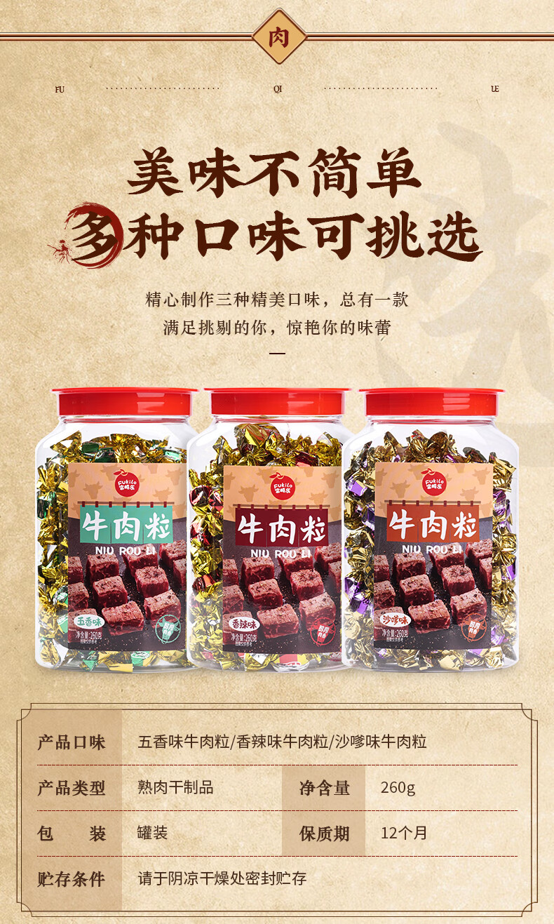 富崎乐沙嗲味/五香味牛肉粒260g 牛肉嚼劲十足肉厚饱满美味不简单 055947/055948