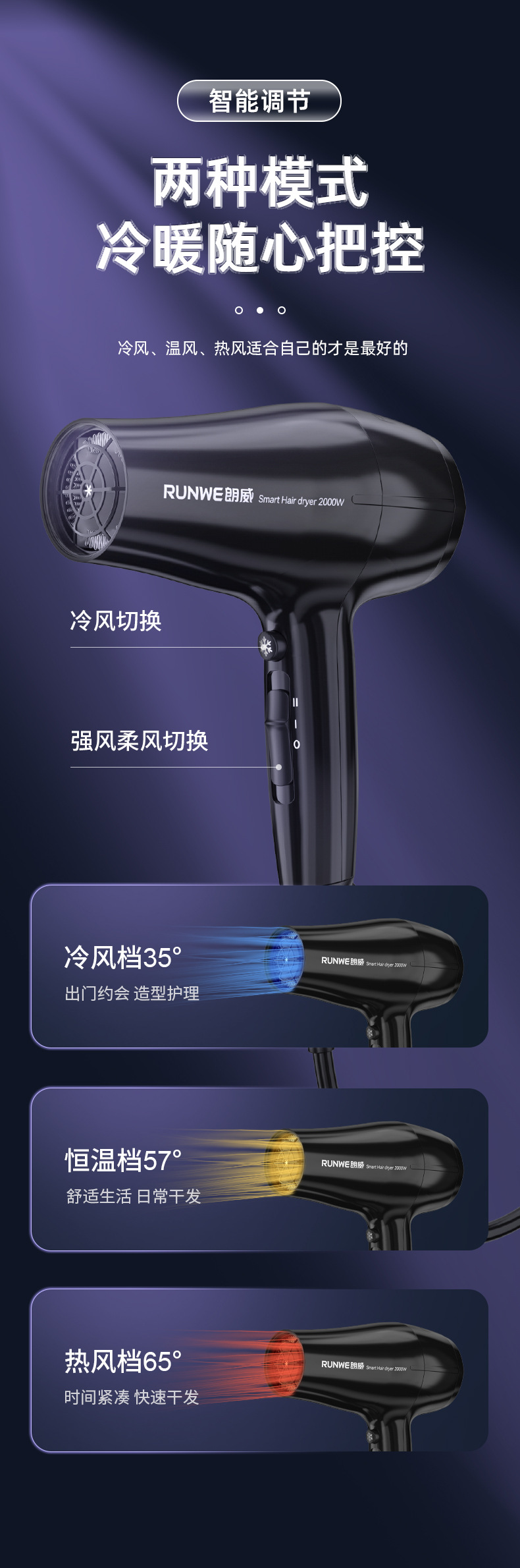 【理发店大功率专业吹风机】蓝光负离子冷热 发廊大风力风筒  商品图3
