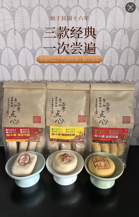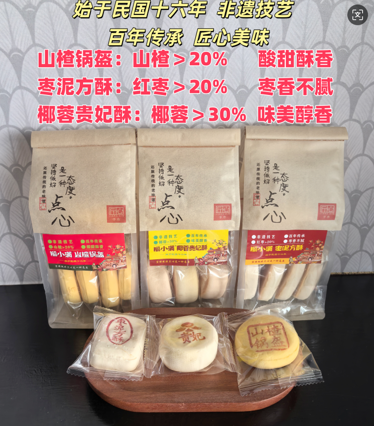 【榴小满】非遗中式糕点 轻甜不腻 经典三杰 山楂锅盔 枣泥方酥 椰蓉贵妃酥 非遗经典口味