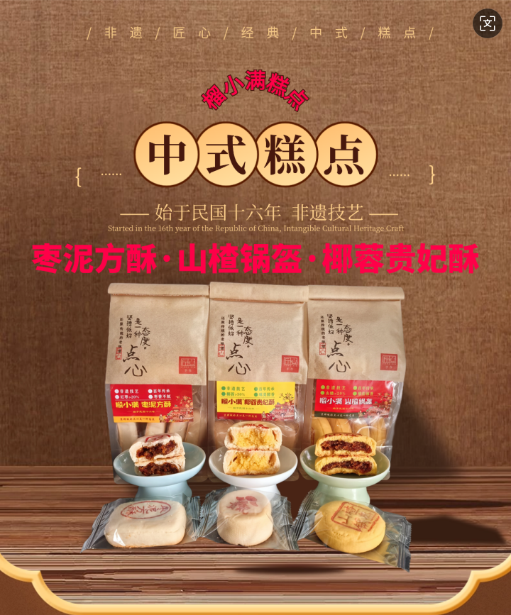 1.始于民国十六年,百年传承的中式糕点,匠心打造,不甜不腻,老少皆宜,是家中不可缺少的点心;