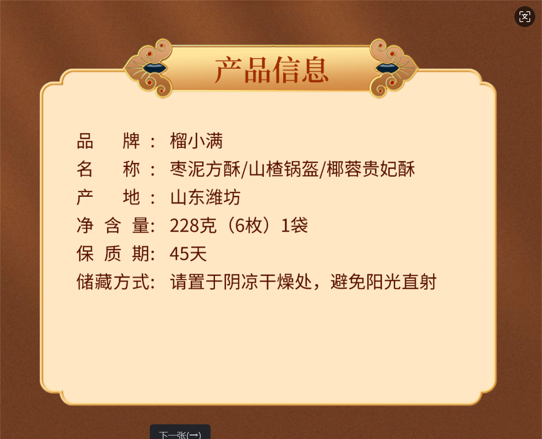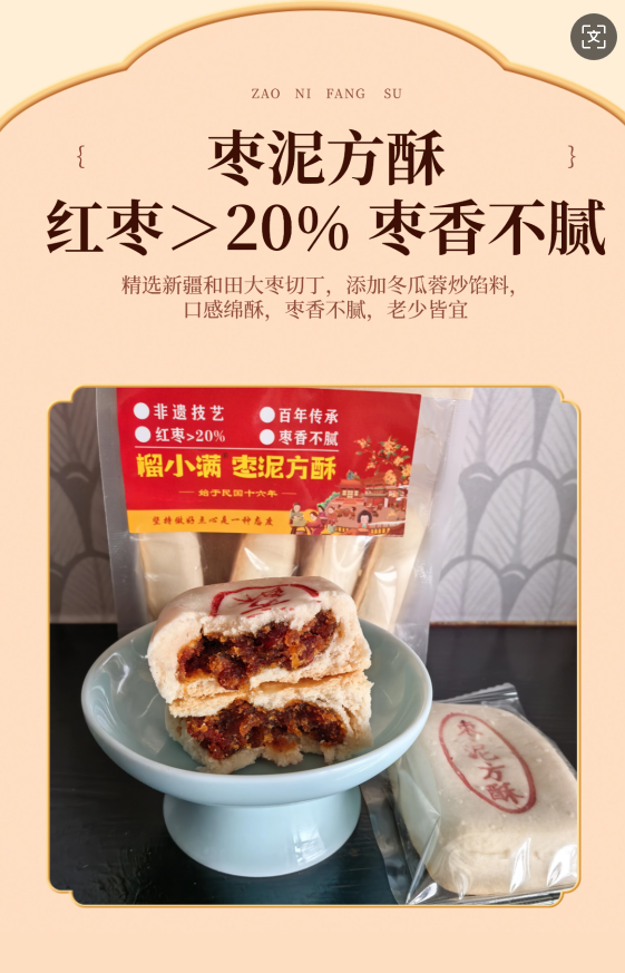 【品名/规格】【榴小满】非遗中式糕点(枣泥方酥/山楂锅盔/椰蓉贵妃酥,228g/袋,6枚装/袋)