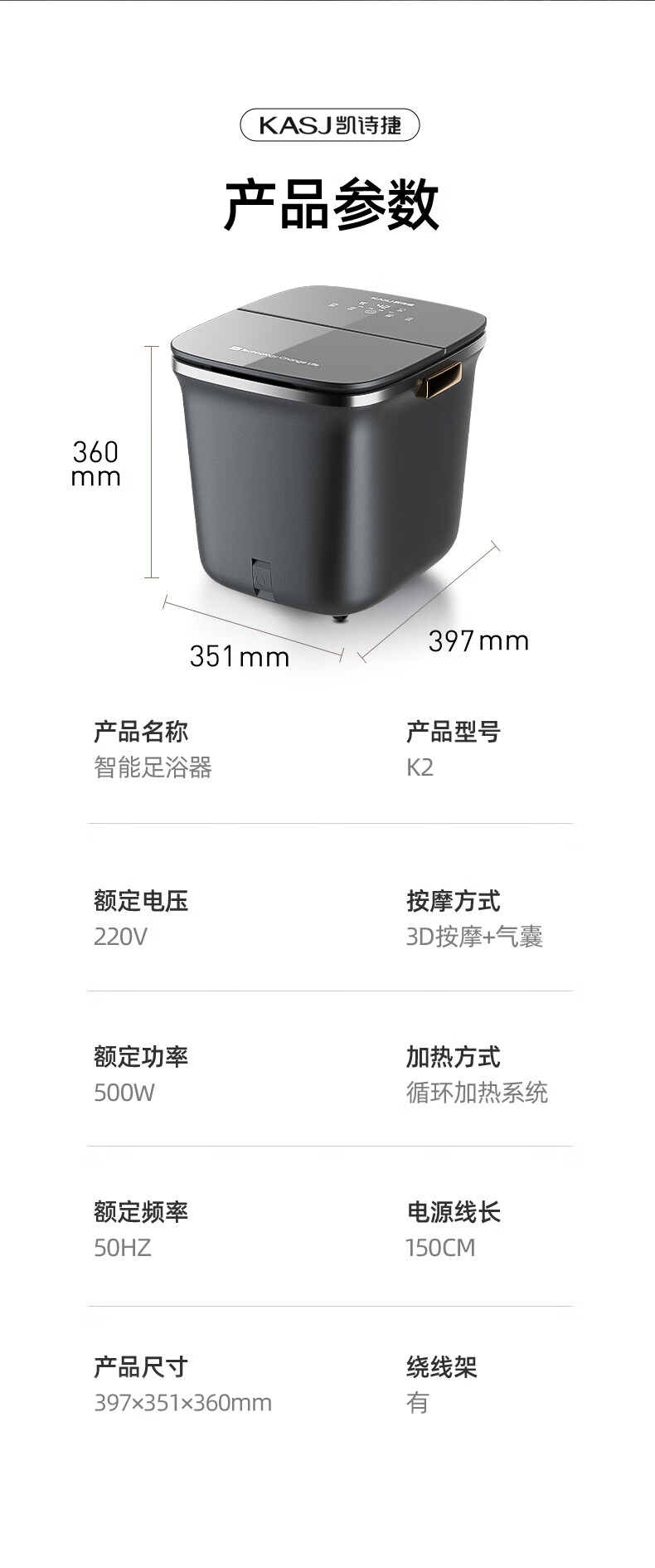 【凯诗捷 K2足浴器】泡脚桶+足疗机 双重体验