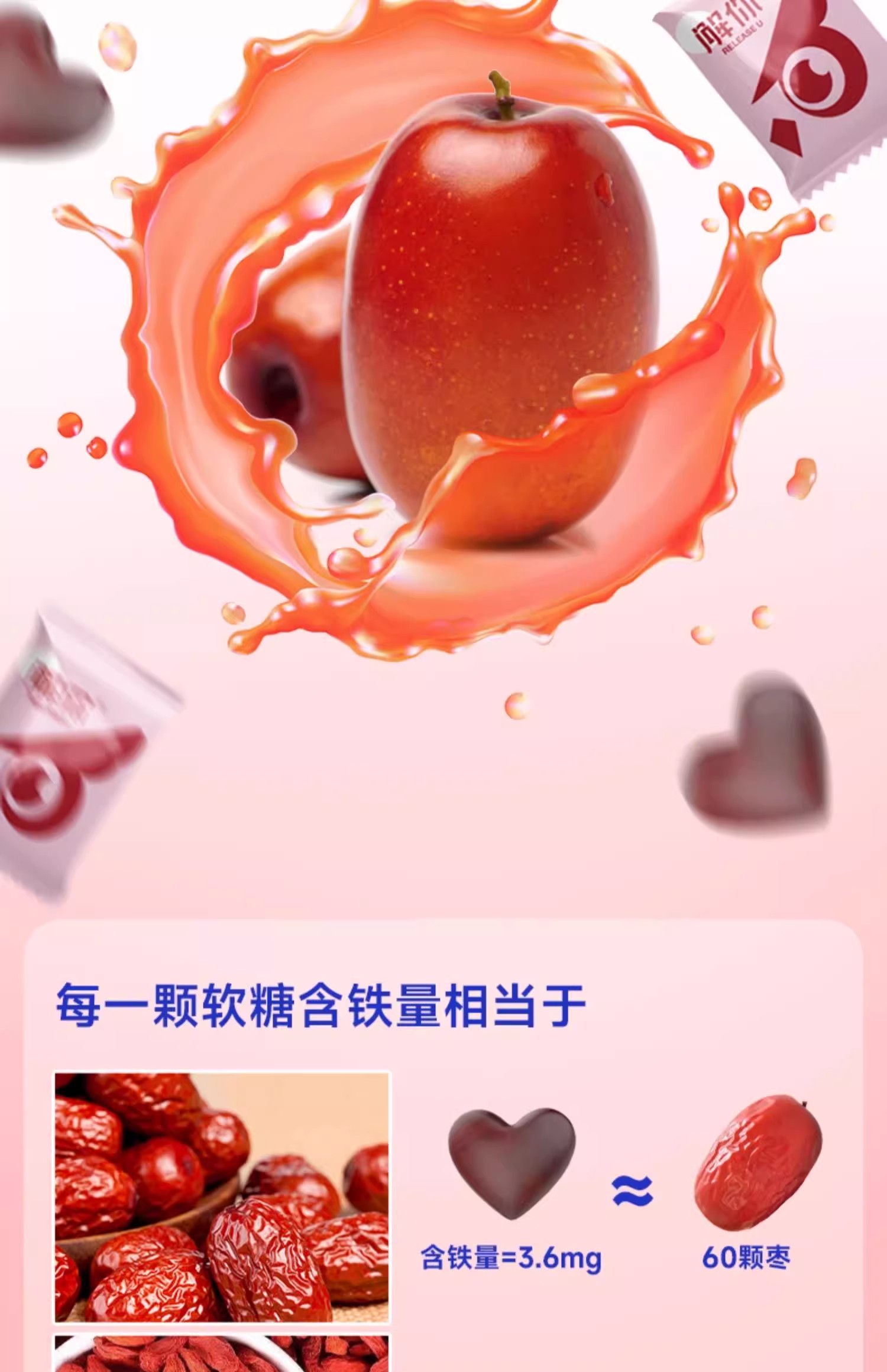 解你富铁软糖成人女性儿童孕妇产后红枣糖果健康零食90克(3克/粒X30粒)