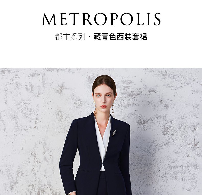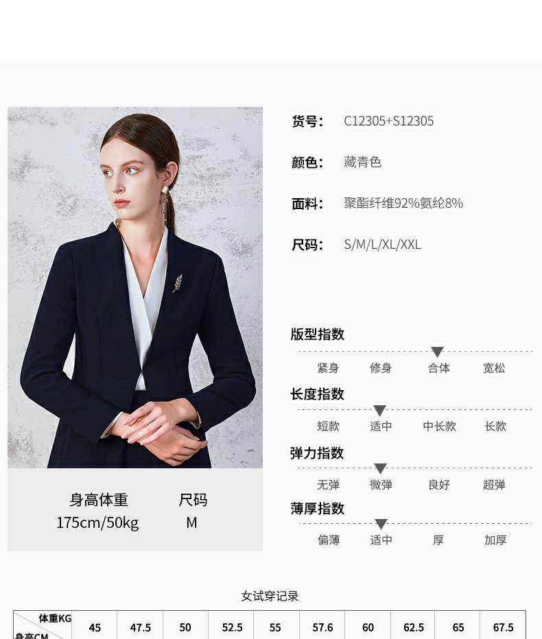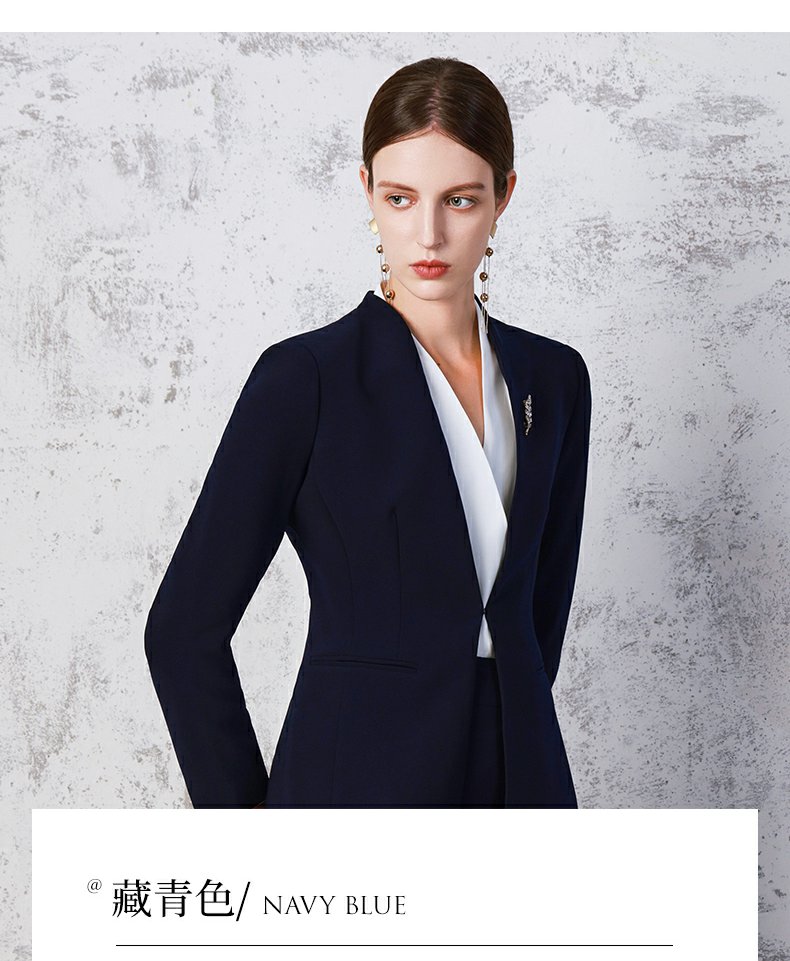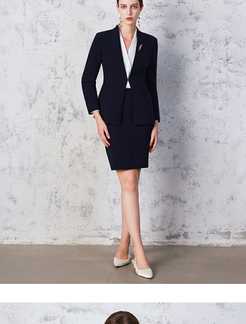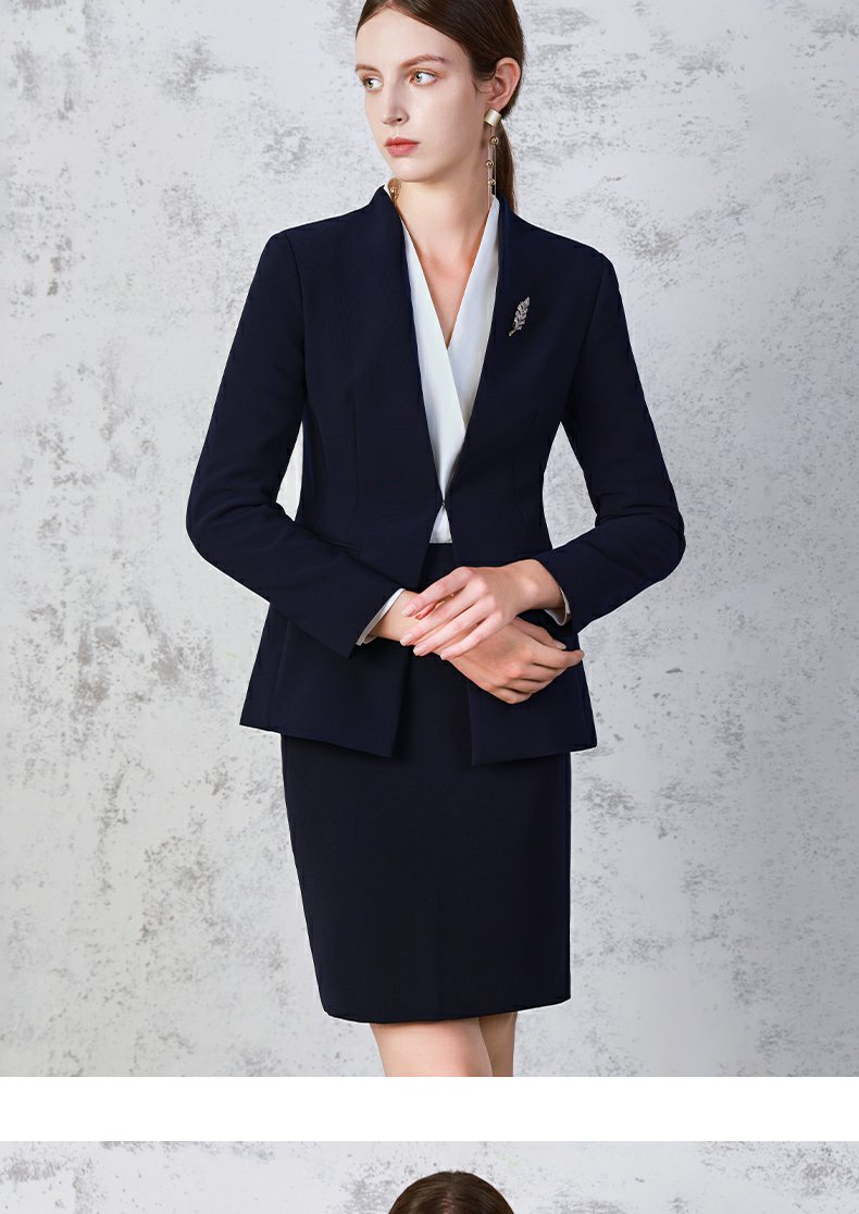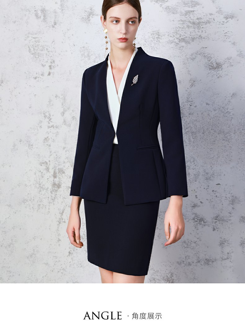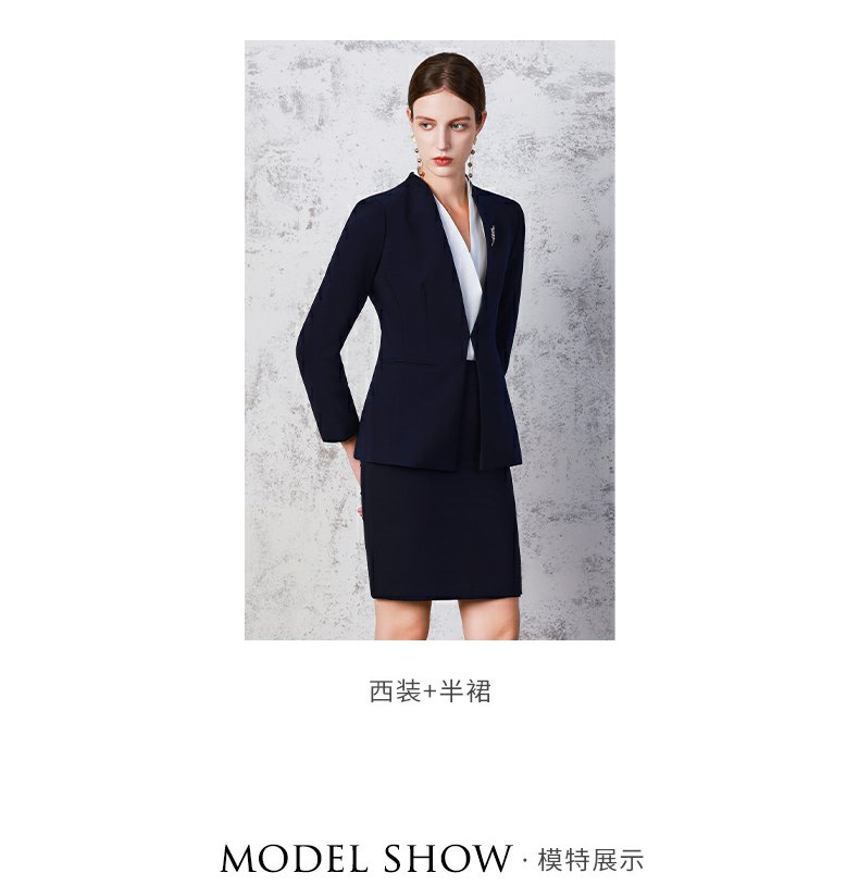 IWY/秋冬藏青色职业装套裙优雅售楼部白领西装半身裙两件套工作服C12305+S12305