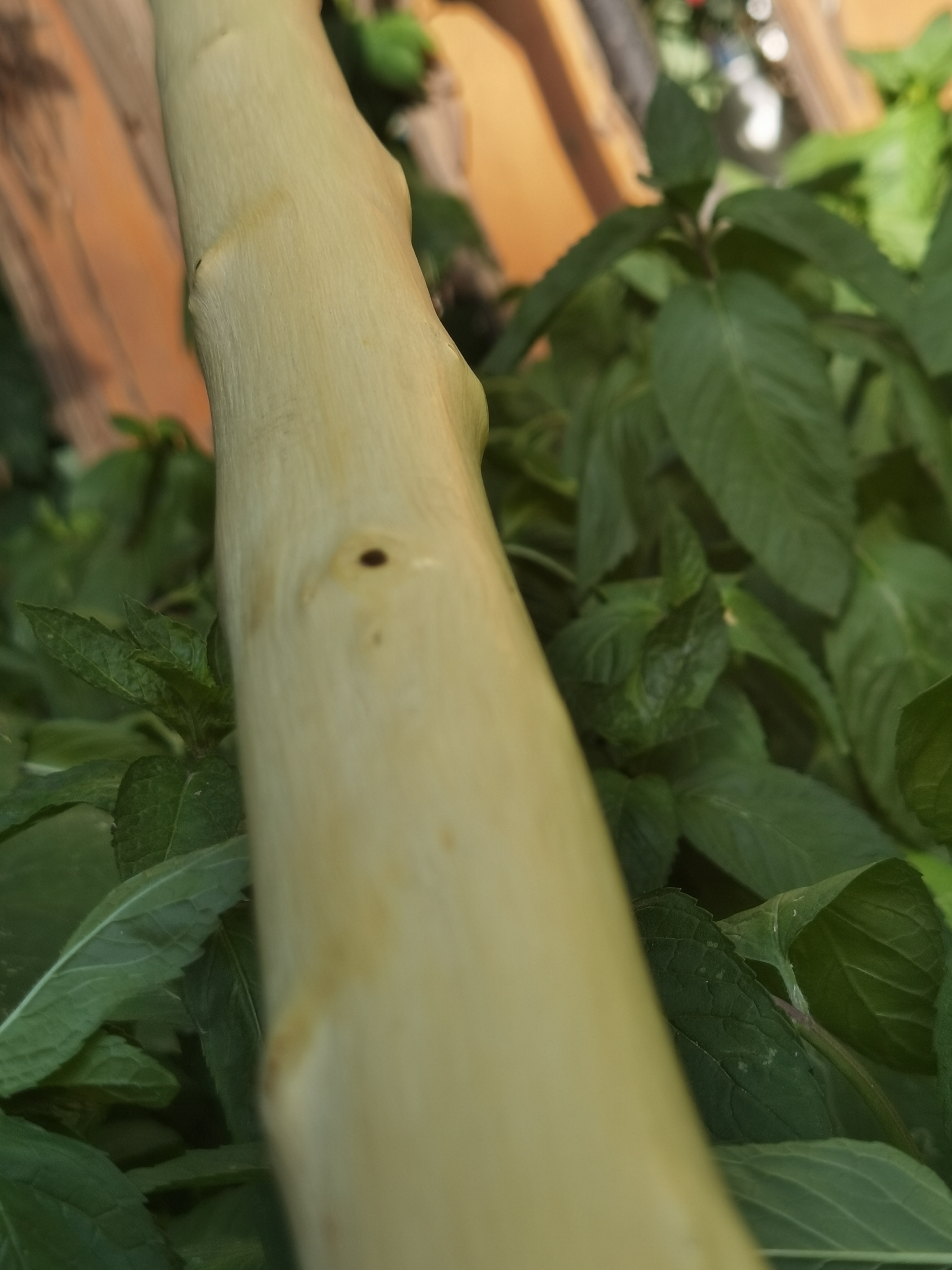我们通过,打油以及日常的盘练,时间长了后,油会将木芯浸透,杆子硬度和韧性都会达到最佳,刀砍难伤,表面包浆也很漂亮。