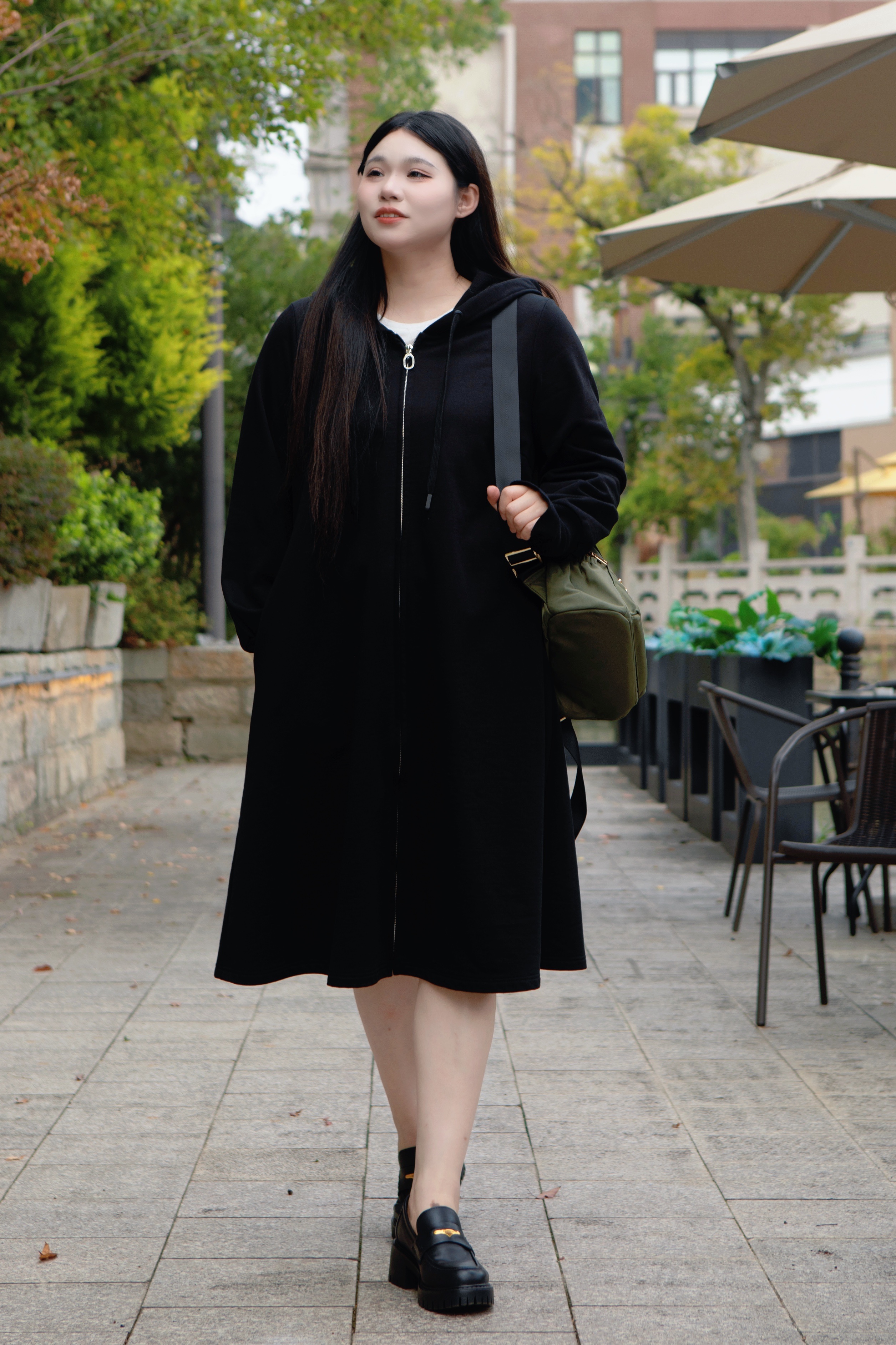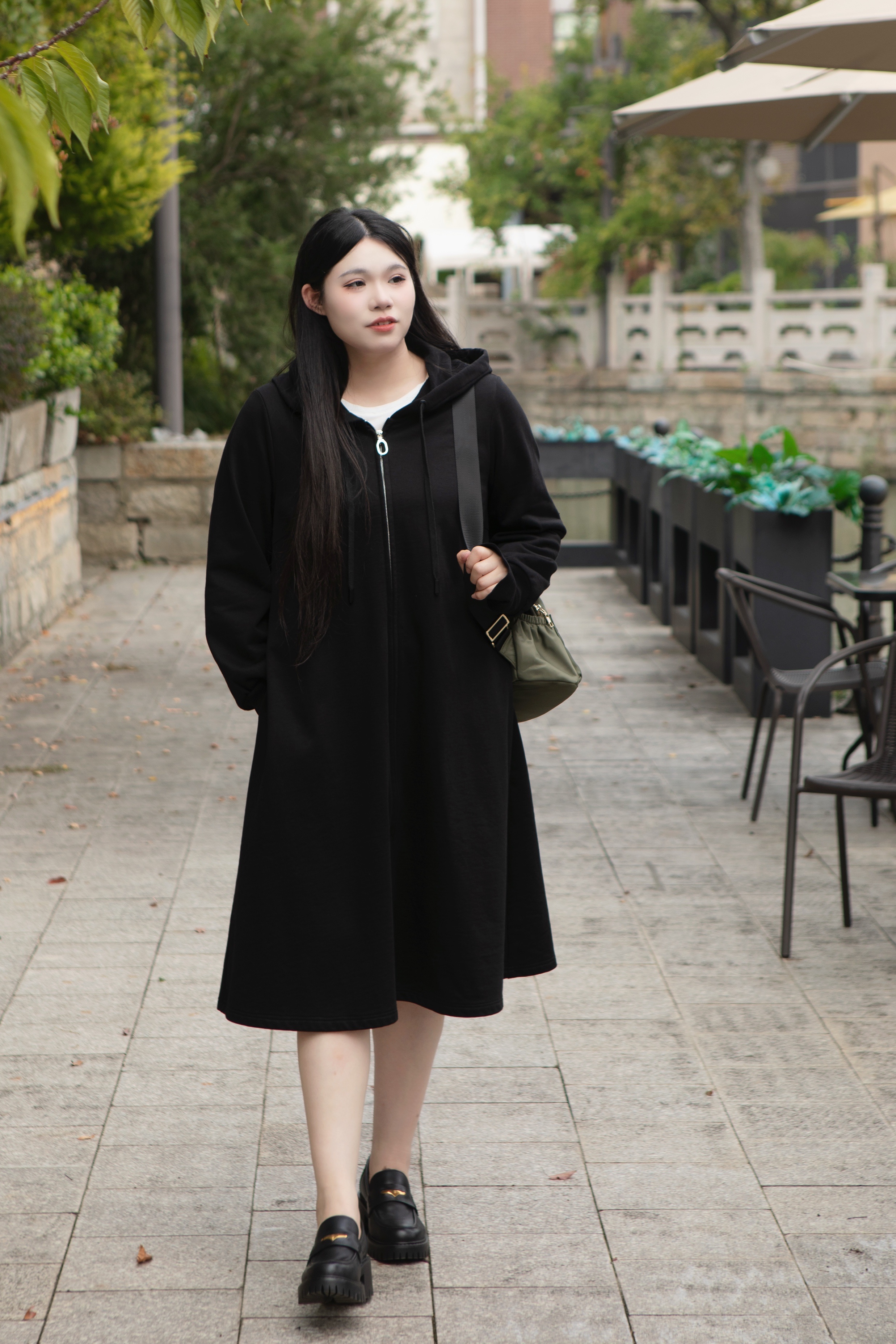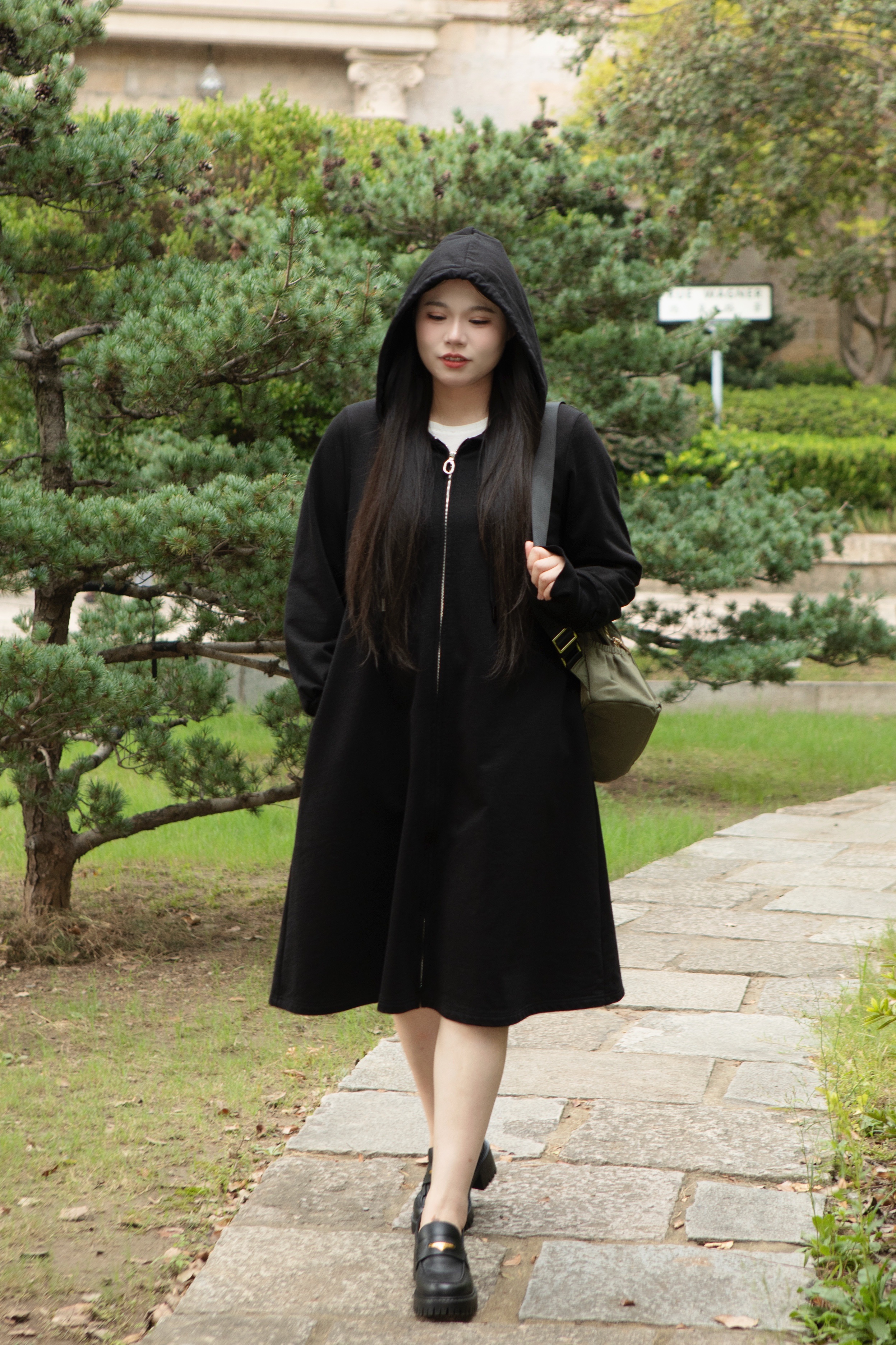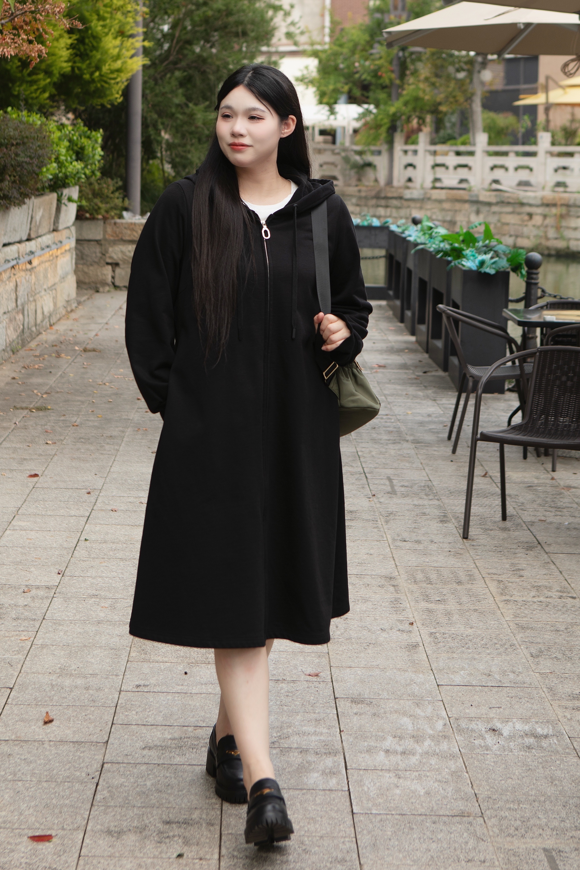 现货!今天发货!【100%纯棉 2穿外套】纯棉舒适卫衣外套,可当连衣裙、可当休闲长款外套。带帽、有口袋、加长防风袖!黑色显瘦百搭经典,推荐入手