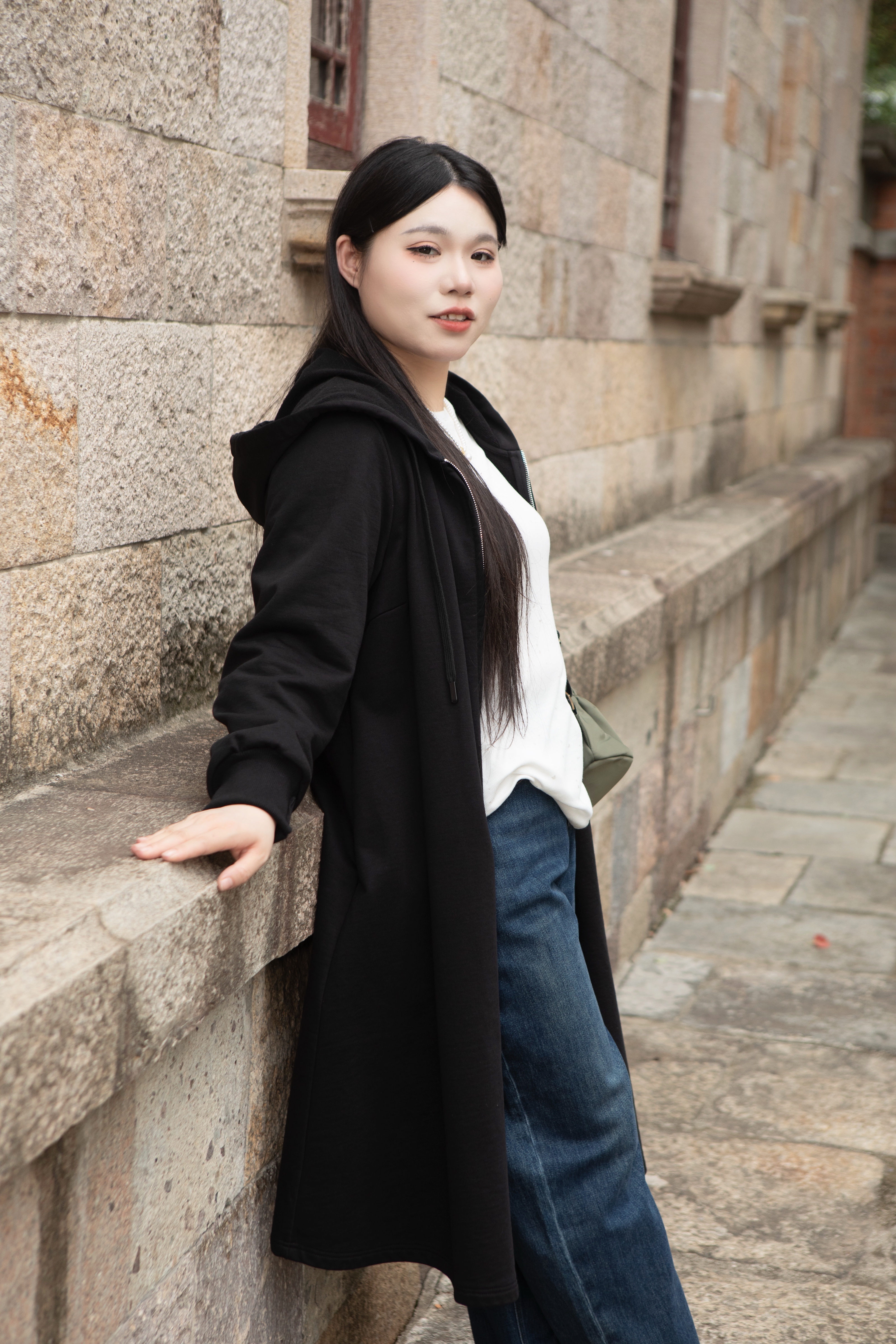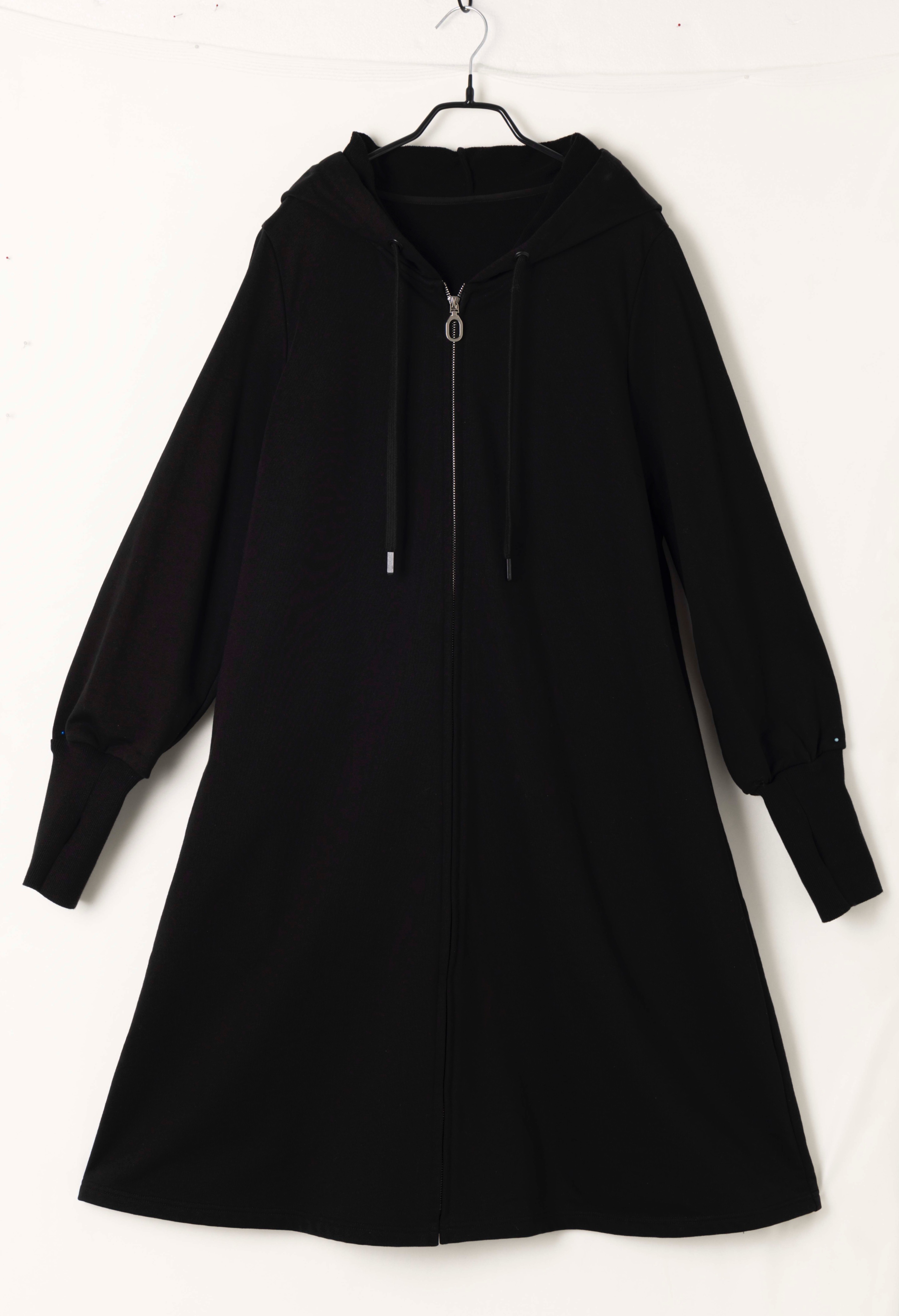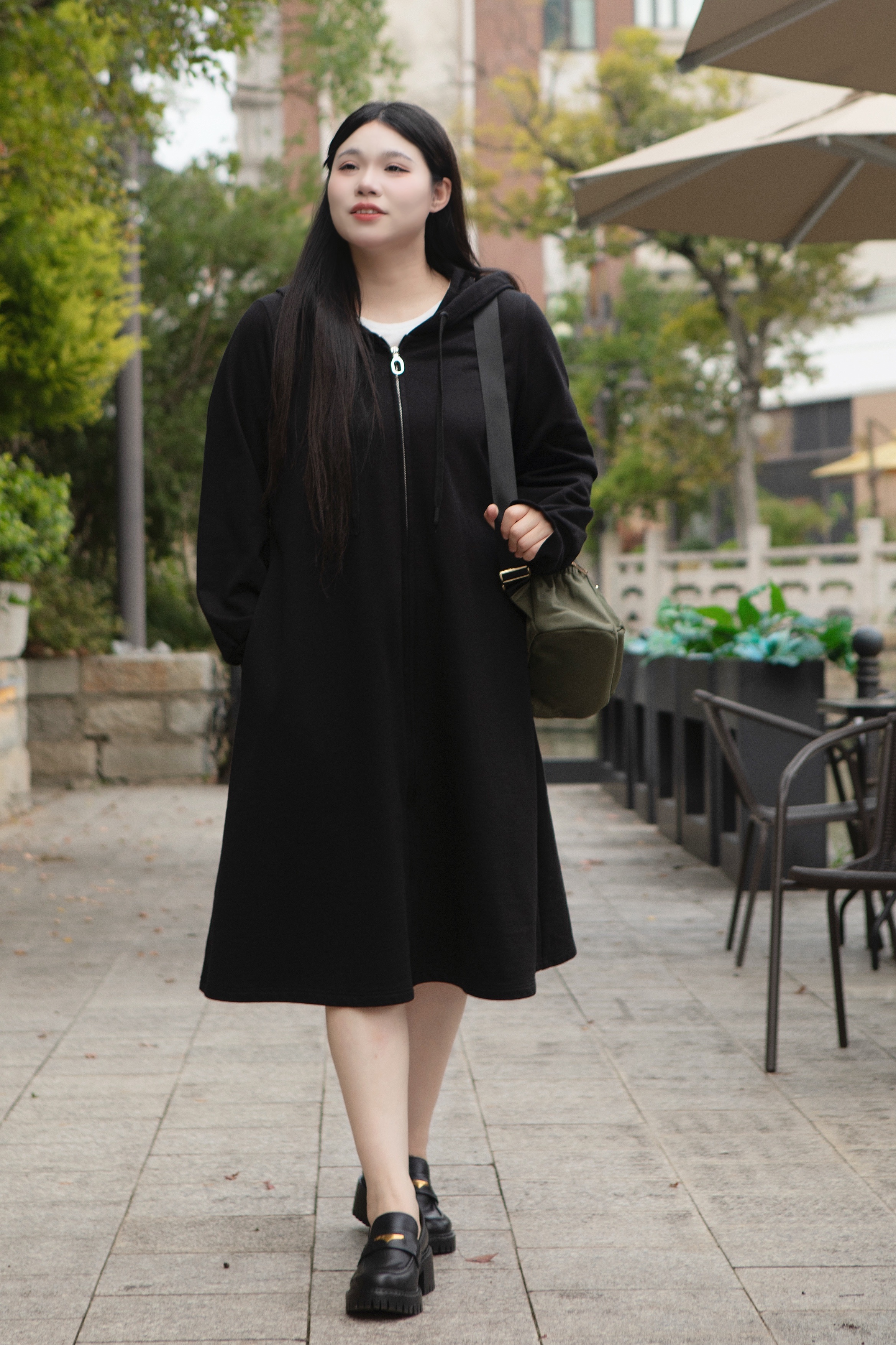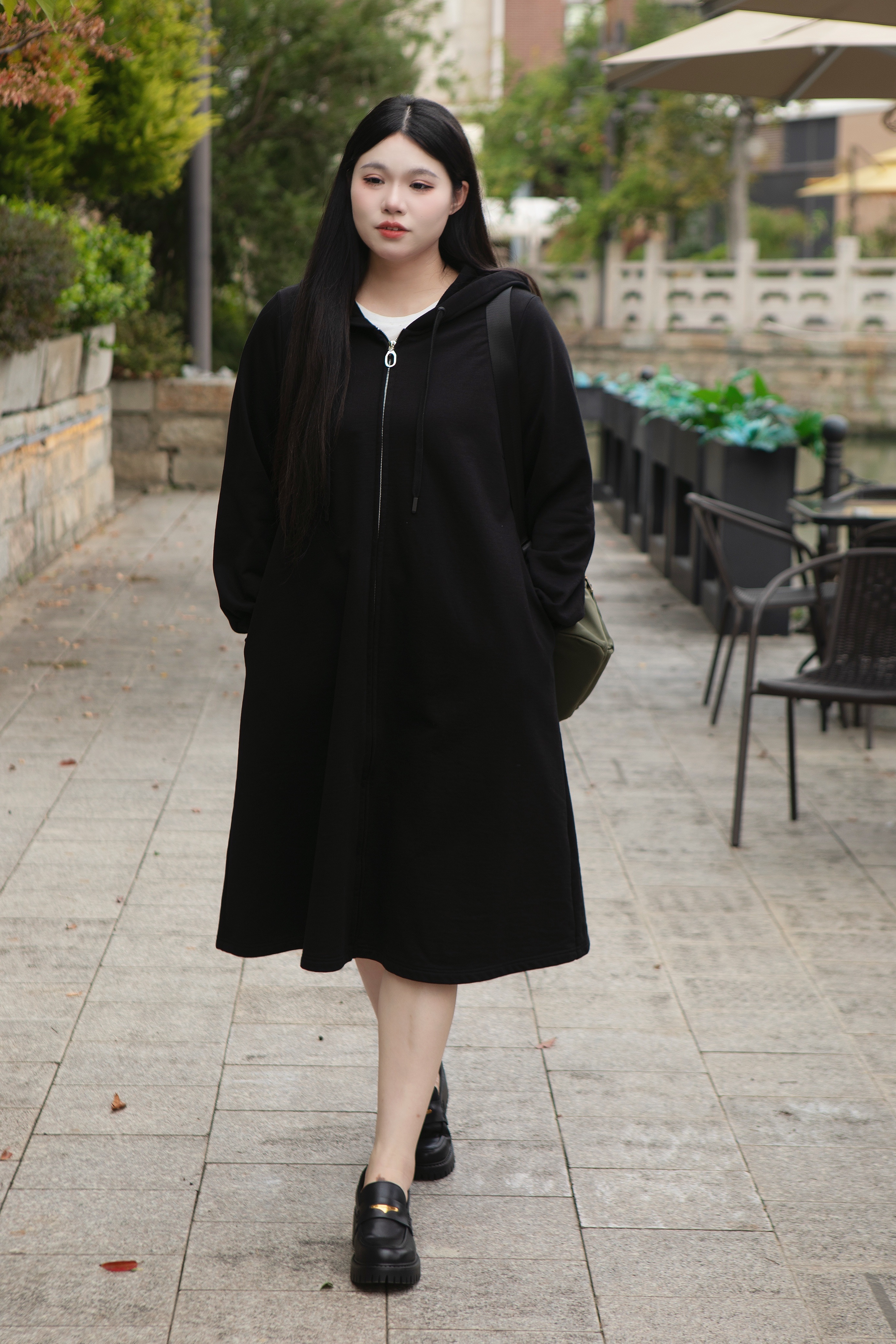 现货!今天发货!【100%纯棉 2穿外套】纯棉舒适卫衣外套,可当连衣裙、可当休闲长款外套。带帽、有口袋、加长防风袖!黑色显瘦百搭经典,推荐入手