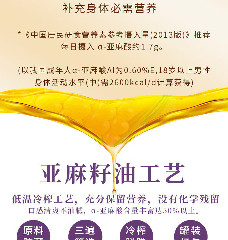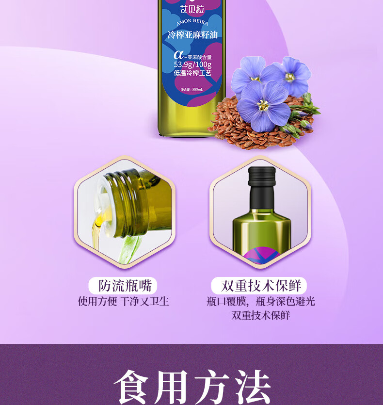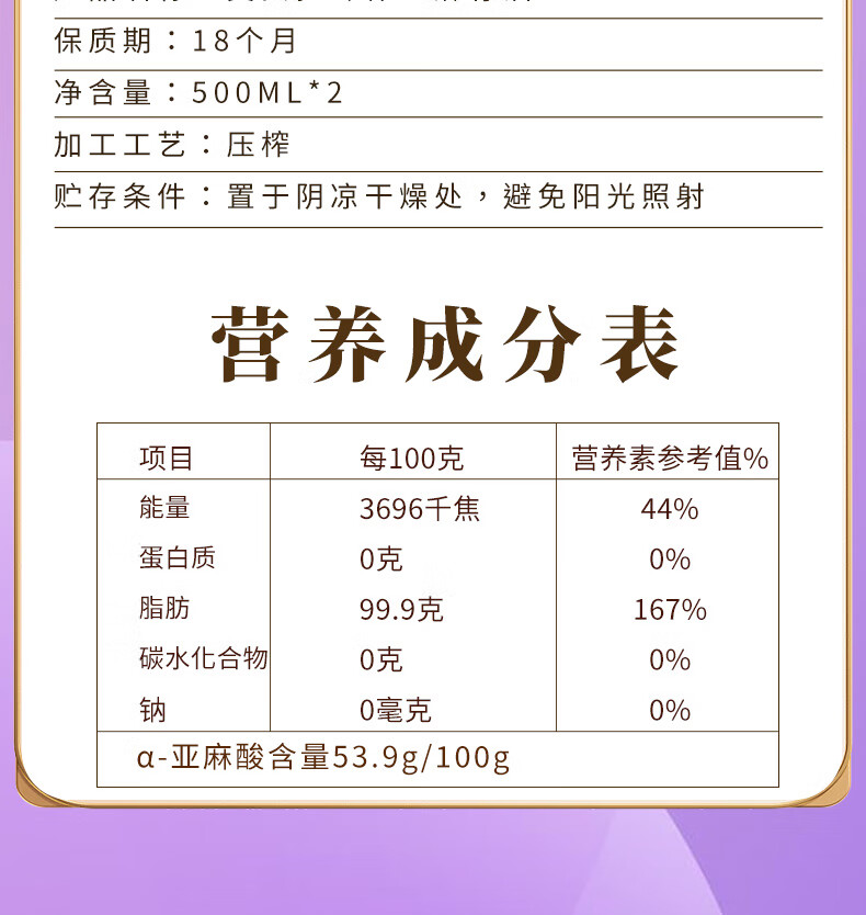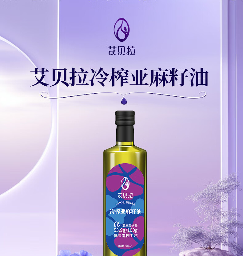 艾贝拉冷榨亚麻籽油1L*2瓶