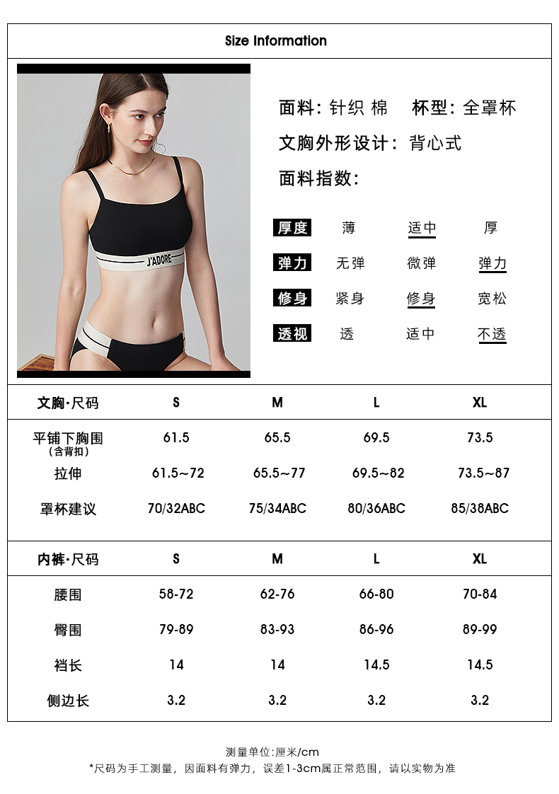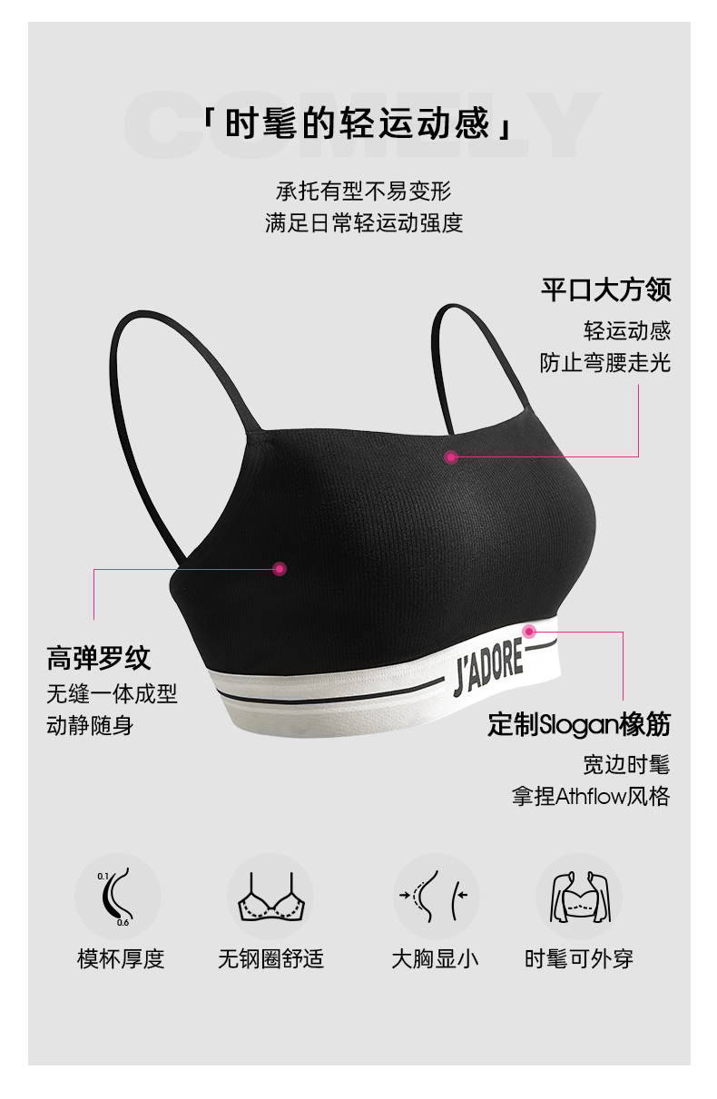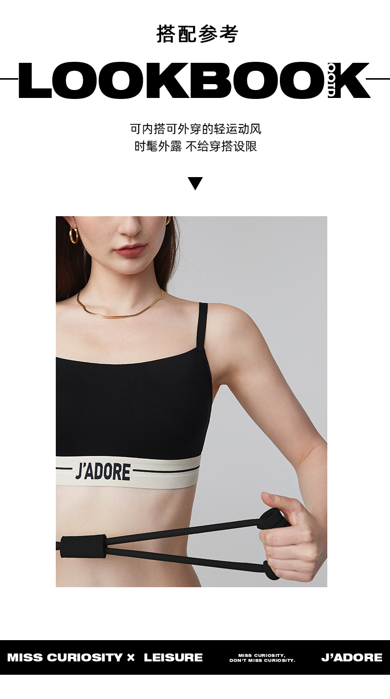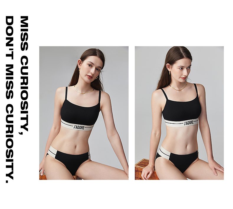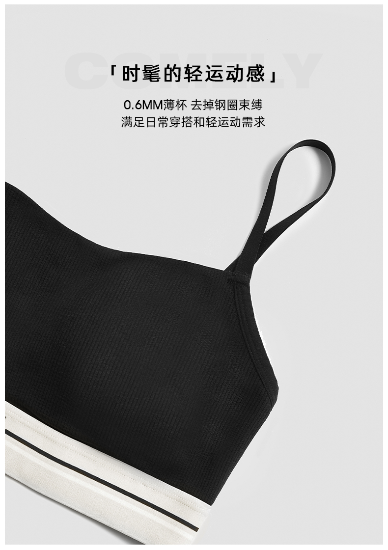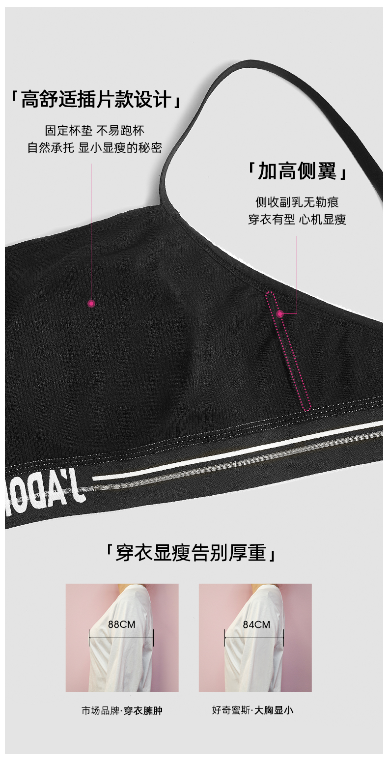 好奇蜜斯内衣女夏季内搭背心黑防走光抹胸罩大胸显小文胸套装 康莉