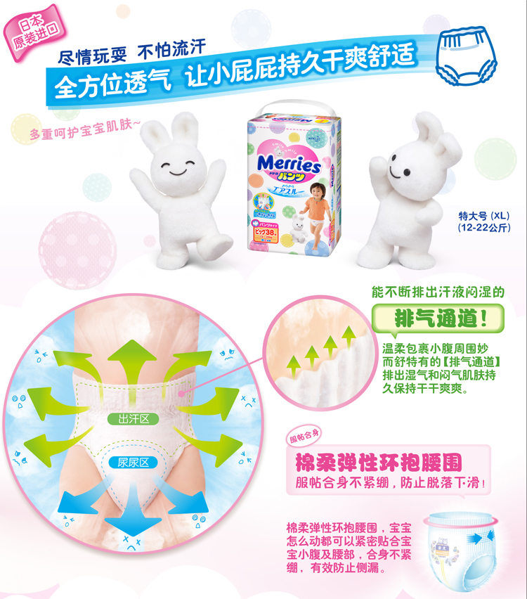花王(KAO) 日本进口 妙而舒 学步裤XL码 38片