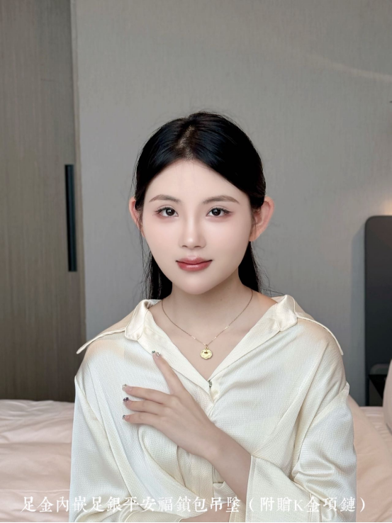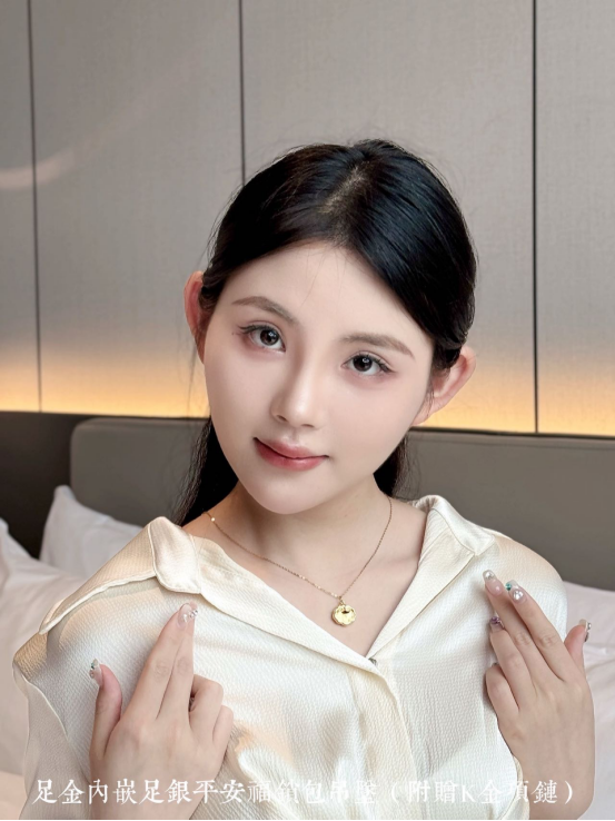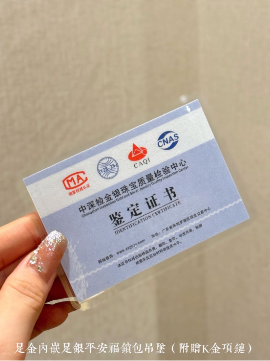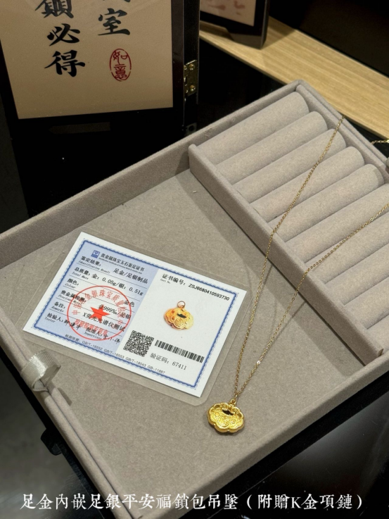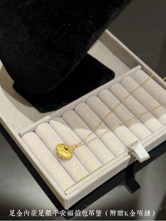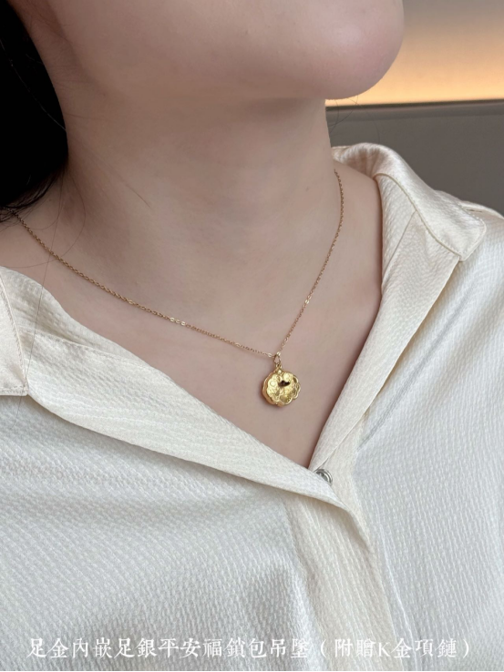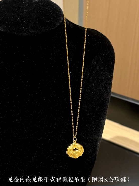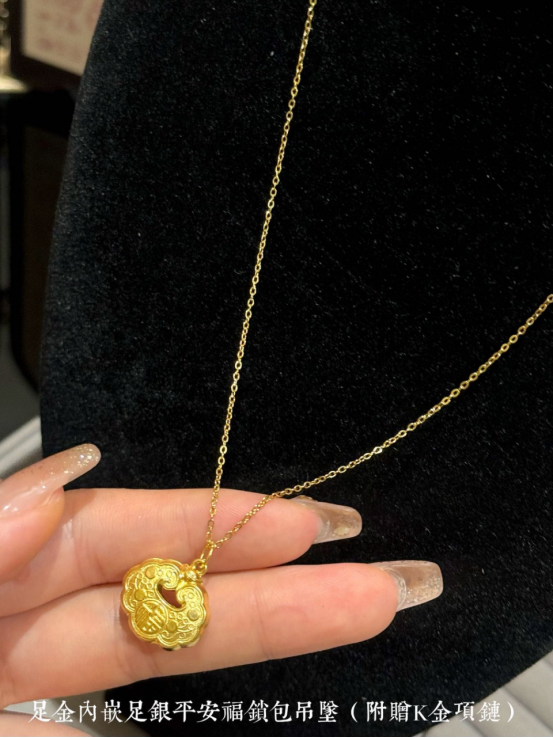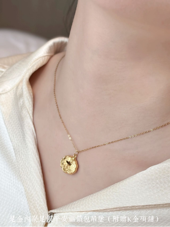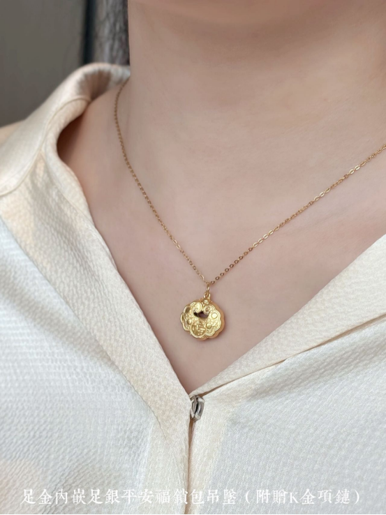 足金内嵌足银平安福锁包吊坠(附赠K金项链)