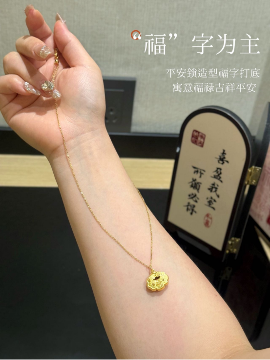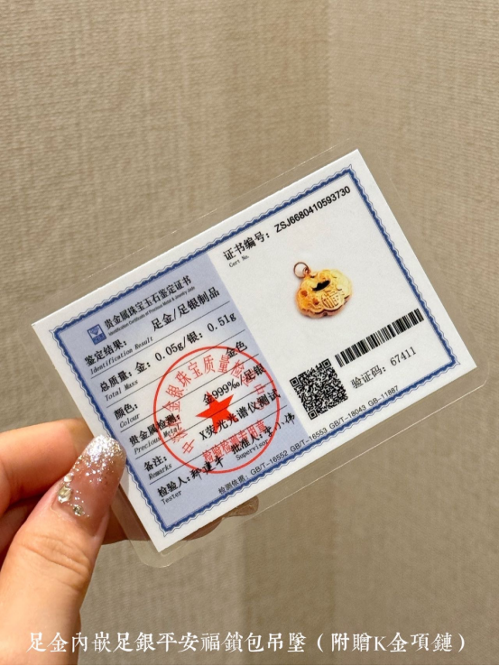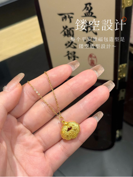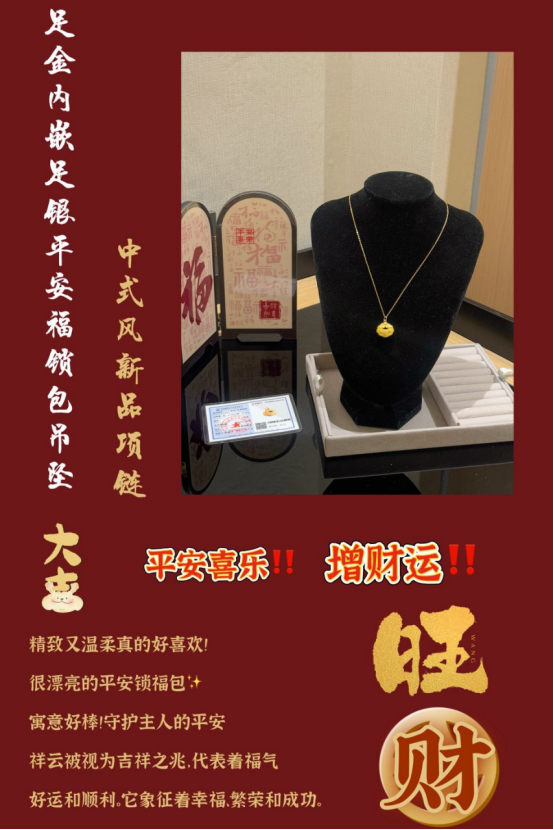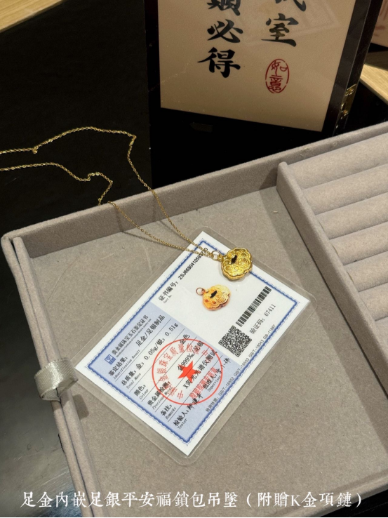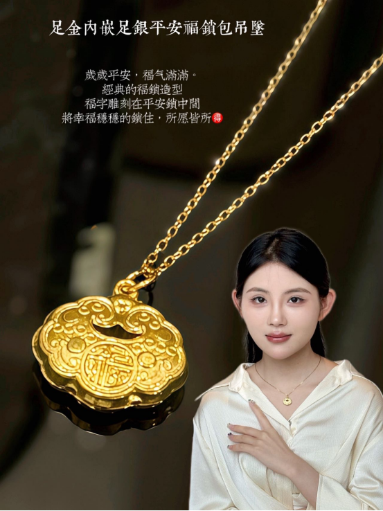 ❤️【香港周六福黄金钻石首饰集团】足金内嵌足银平安福锁包吊坠(附赠K金项链) ✅平平安安 锁住福气,古法工艺雕刻的祥云纹路✨、精致的福字细节,🌹每一处都藏着东方美学的韵味!