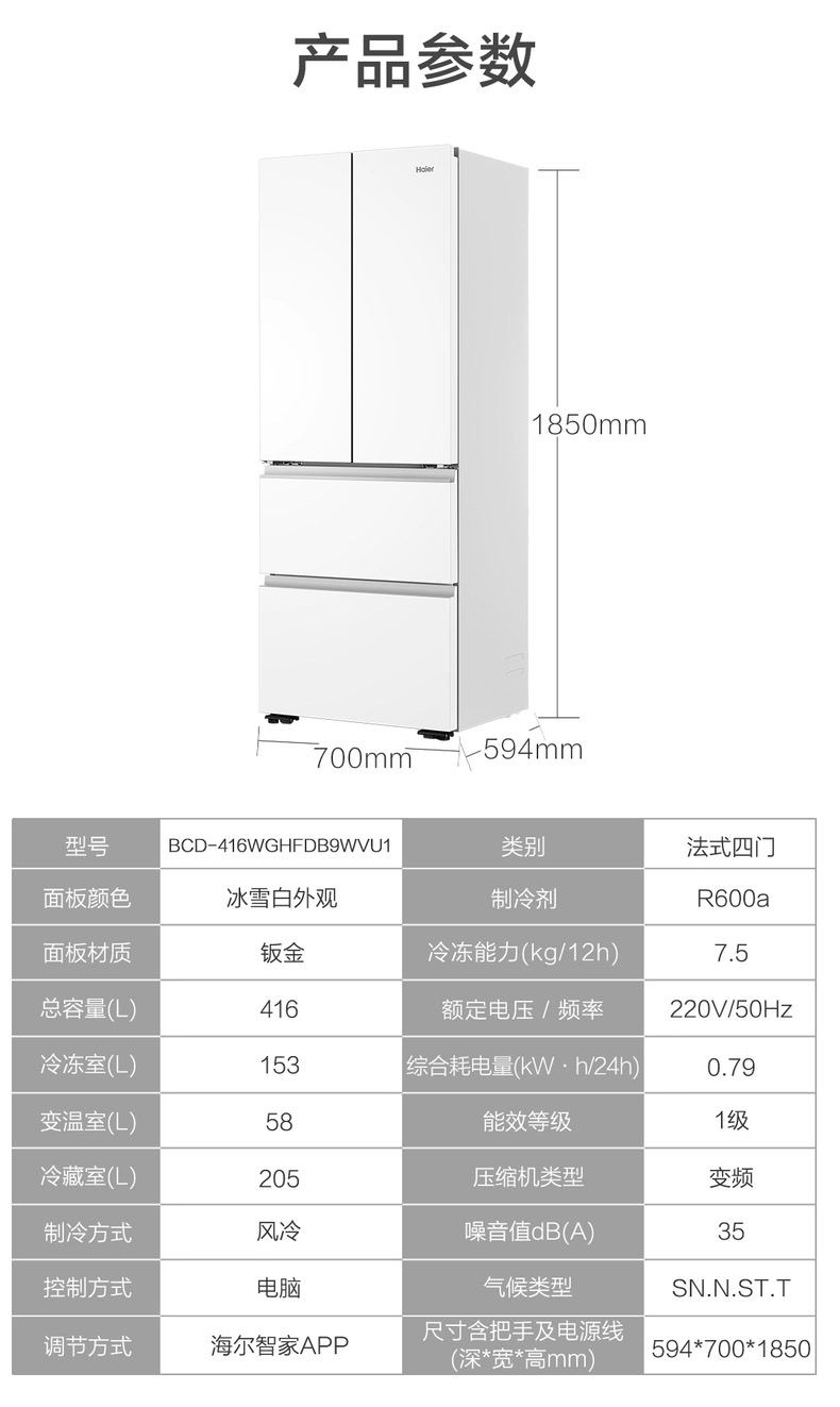 海尔(Haier)冰箱 BCD-416WGHFDB9WVU1