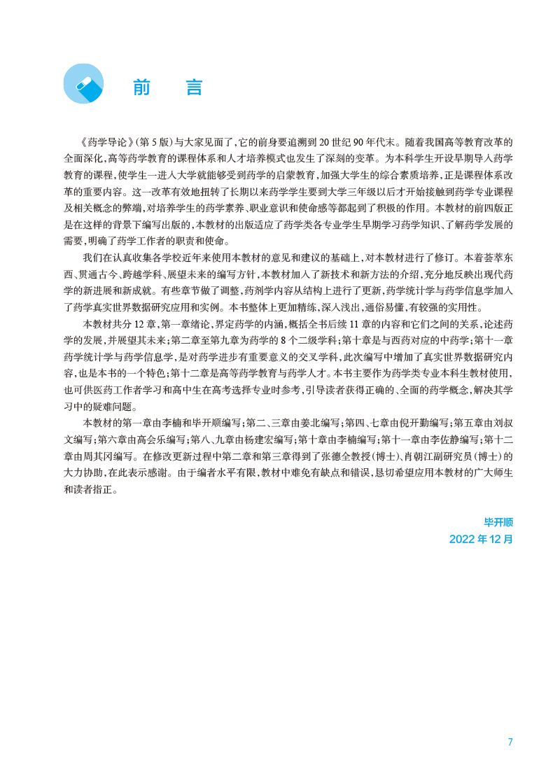药学导论 第5版 毕开顺主编 十四五规划教材 全国高等学校药学类专业第九轮规划教材 供药学类专业用 人民卫生出版社9787117348621