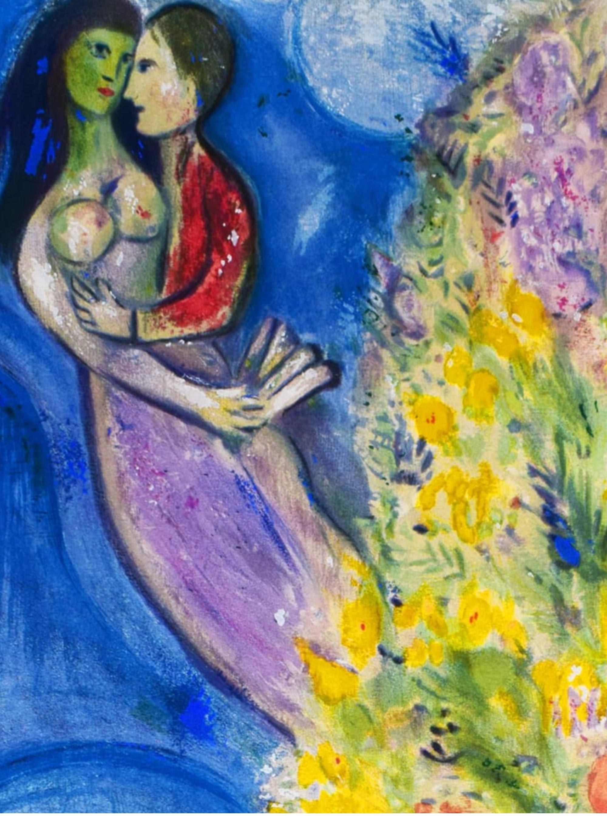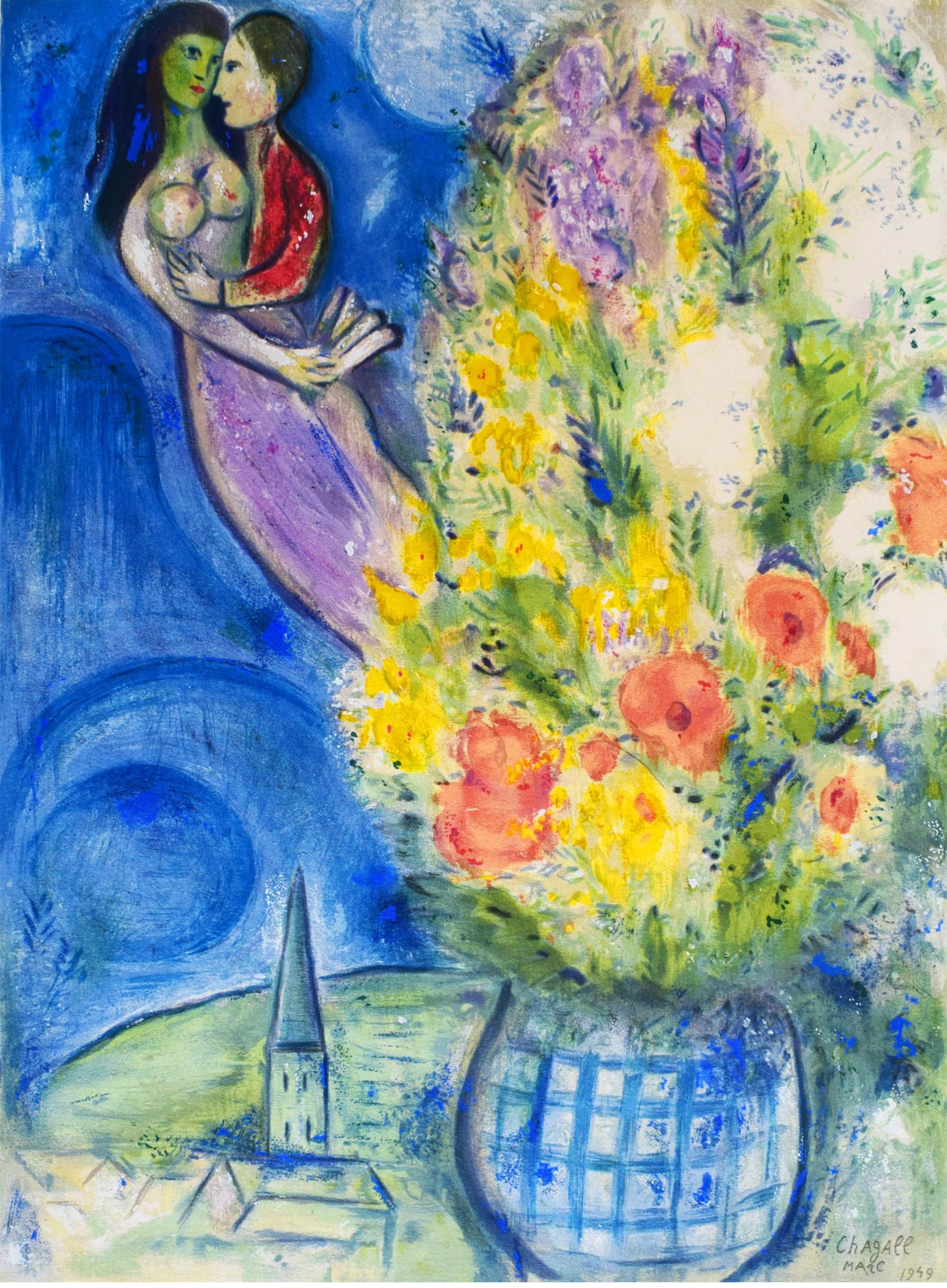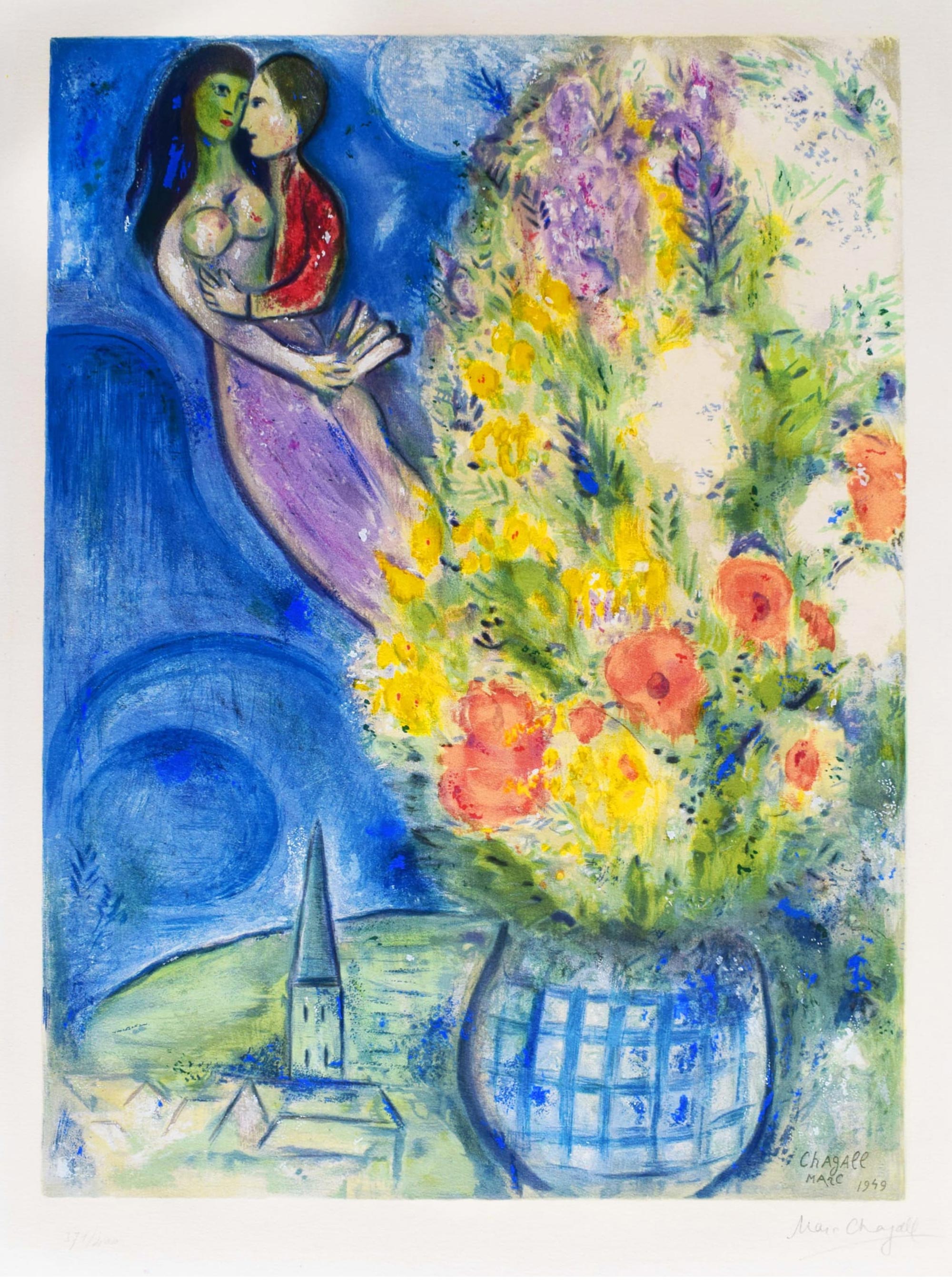 1949年法国现代艺术大师夏加尔与石版画印刷师Charles Sorlier合作出品「Les Coquelicots 罂粟花」限量彩色石版画