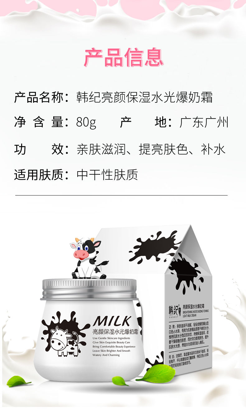 1瓶装韩纪补水保湿爆奶霜80g提亮肤色面霜收缩毛孔控油素颜霜学生