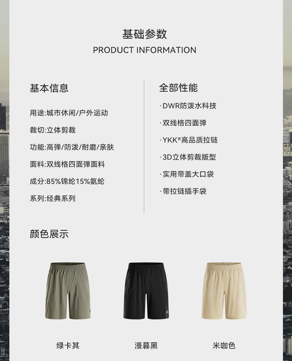 伯希和户外快干裤男新款弹力耐磨运动健身五分裤透气防泼休闲短裤
