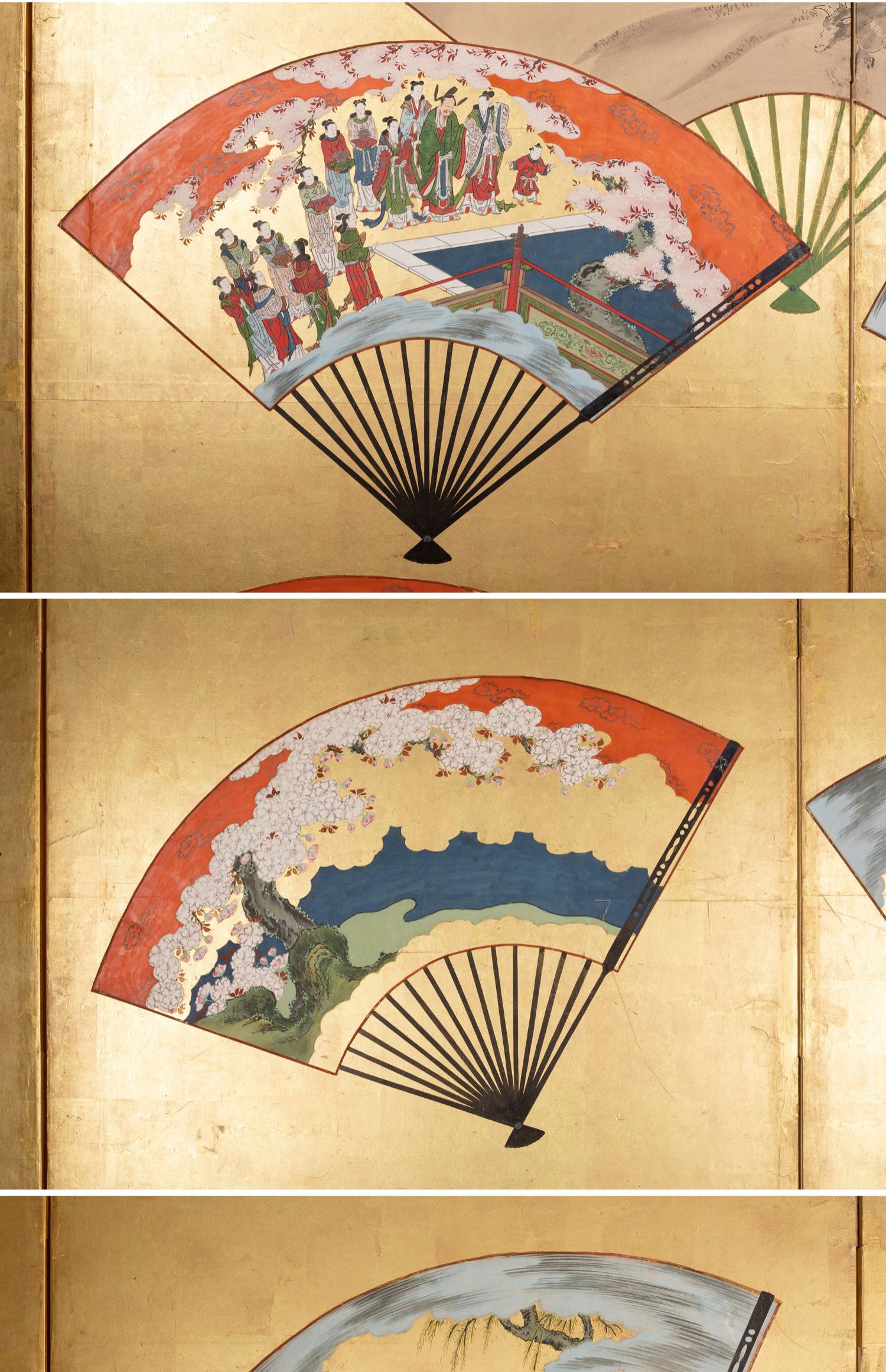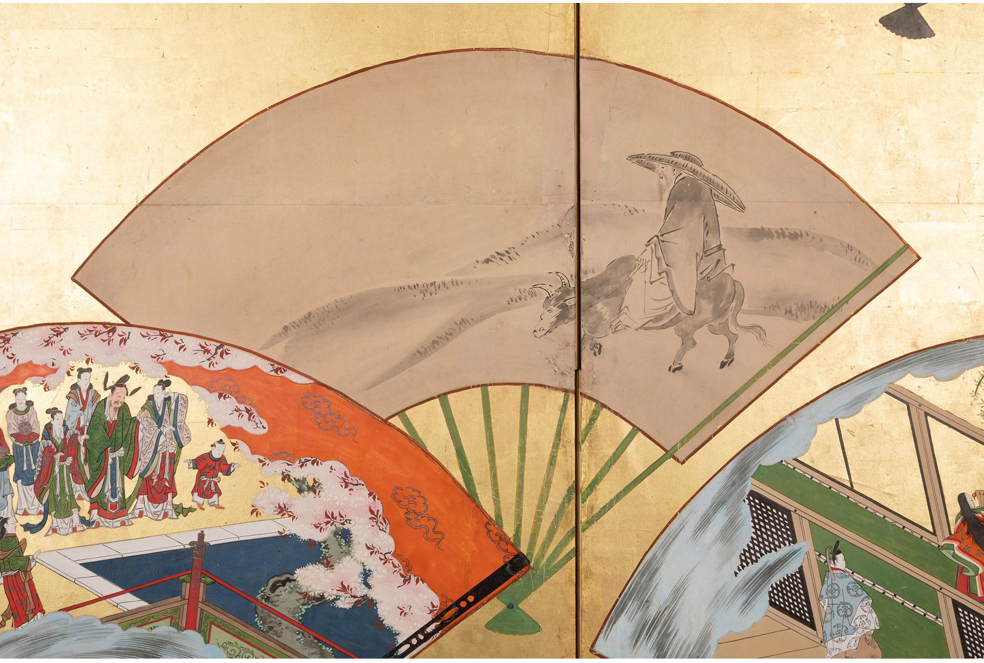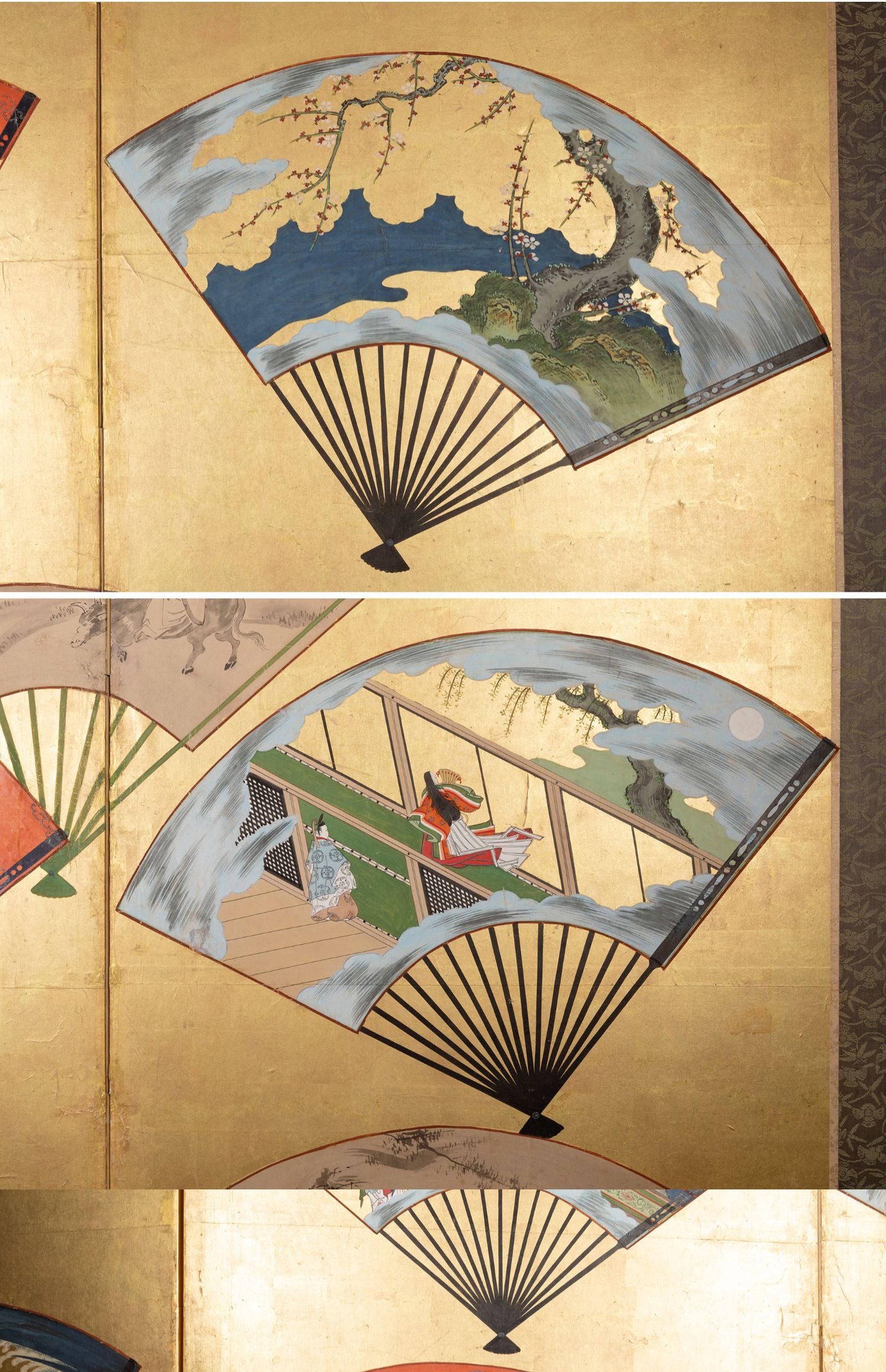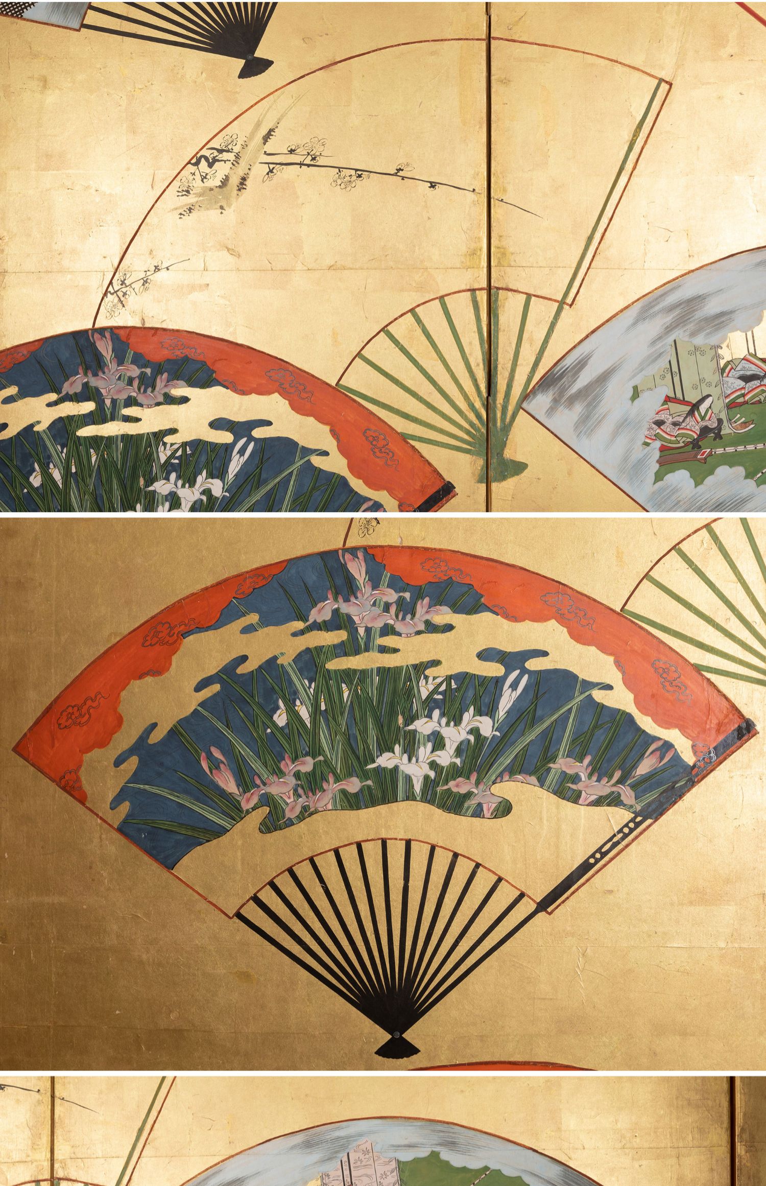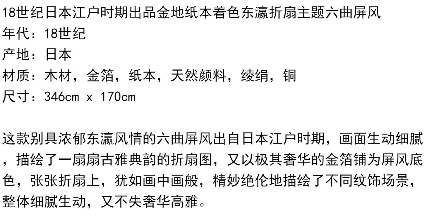 独角鹿西洋古董日本江户时期金地纸本着色东瀛折扇六曲日式屏风