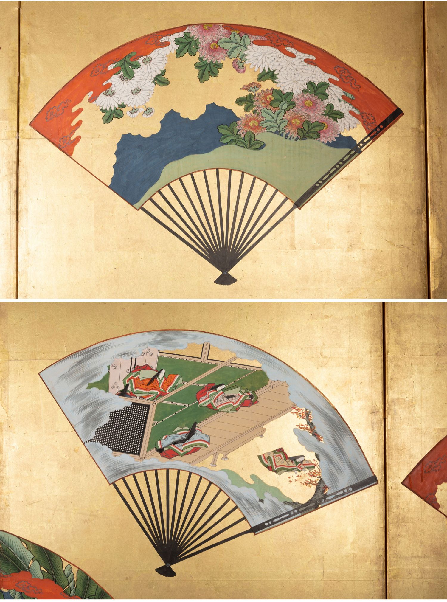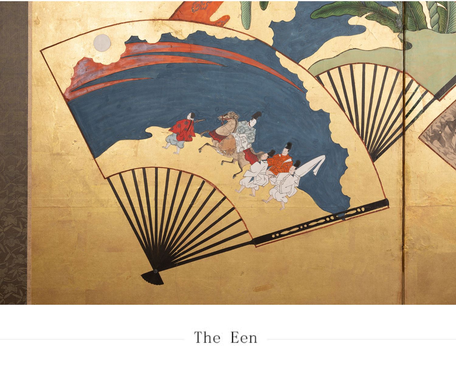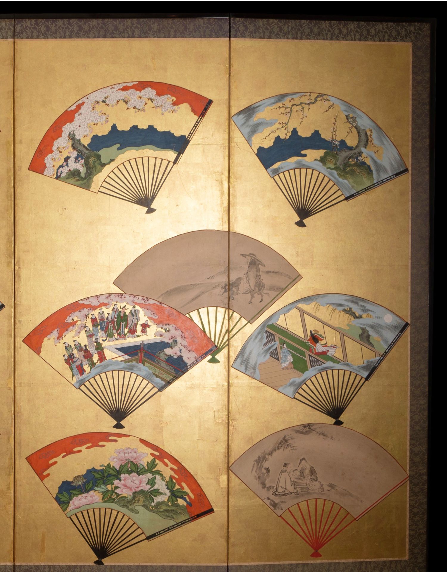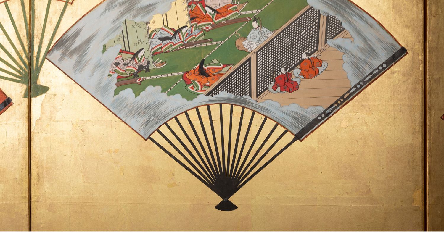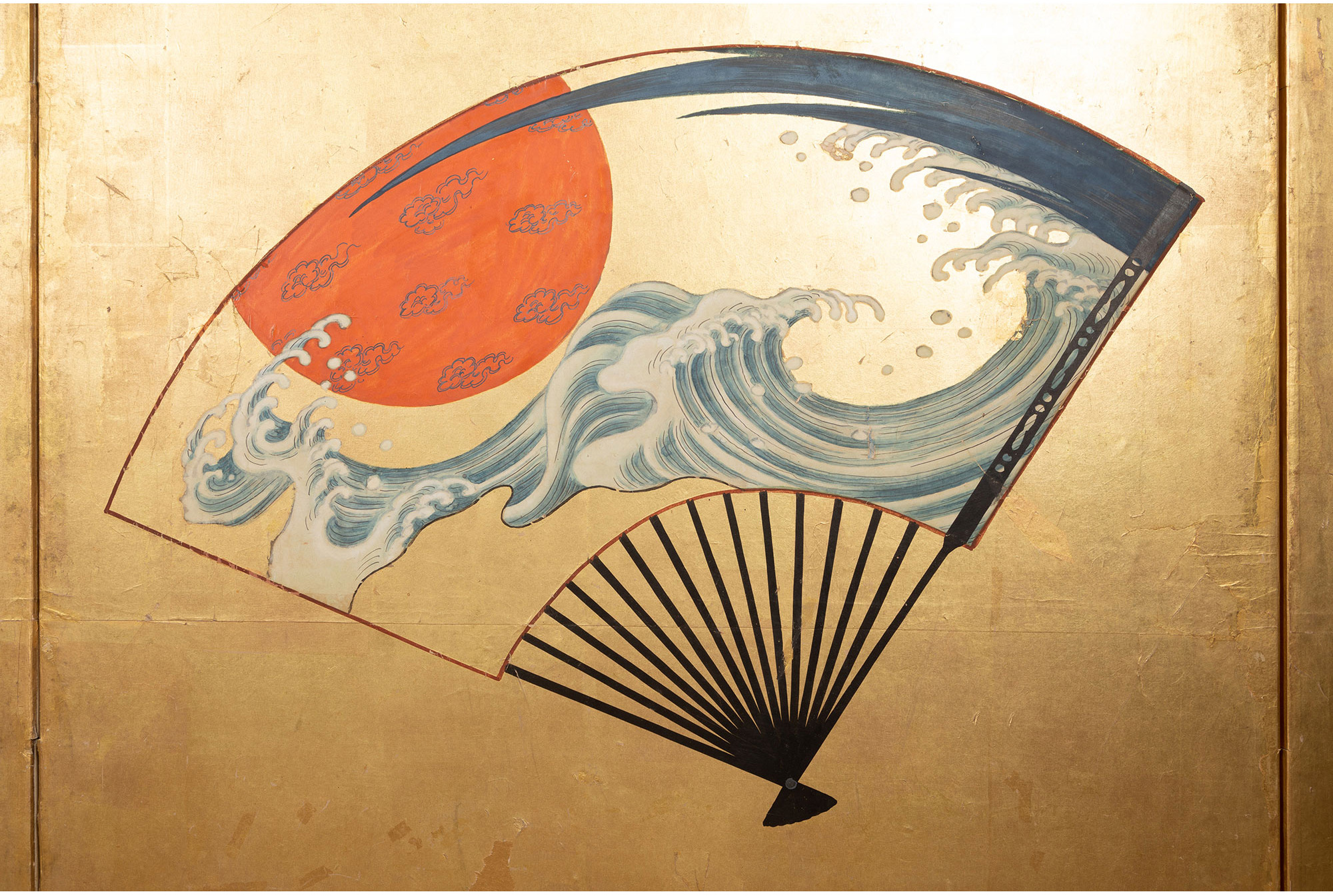独角鹿西洋古董日本江户时期金地纸本着色东瀛折扇六曲日式屏风