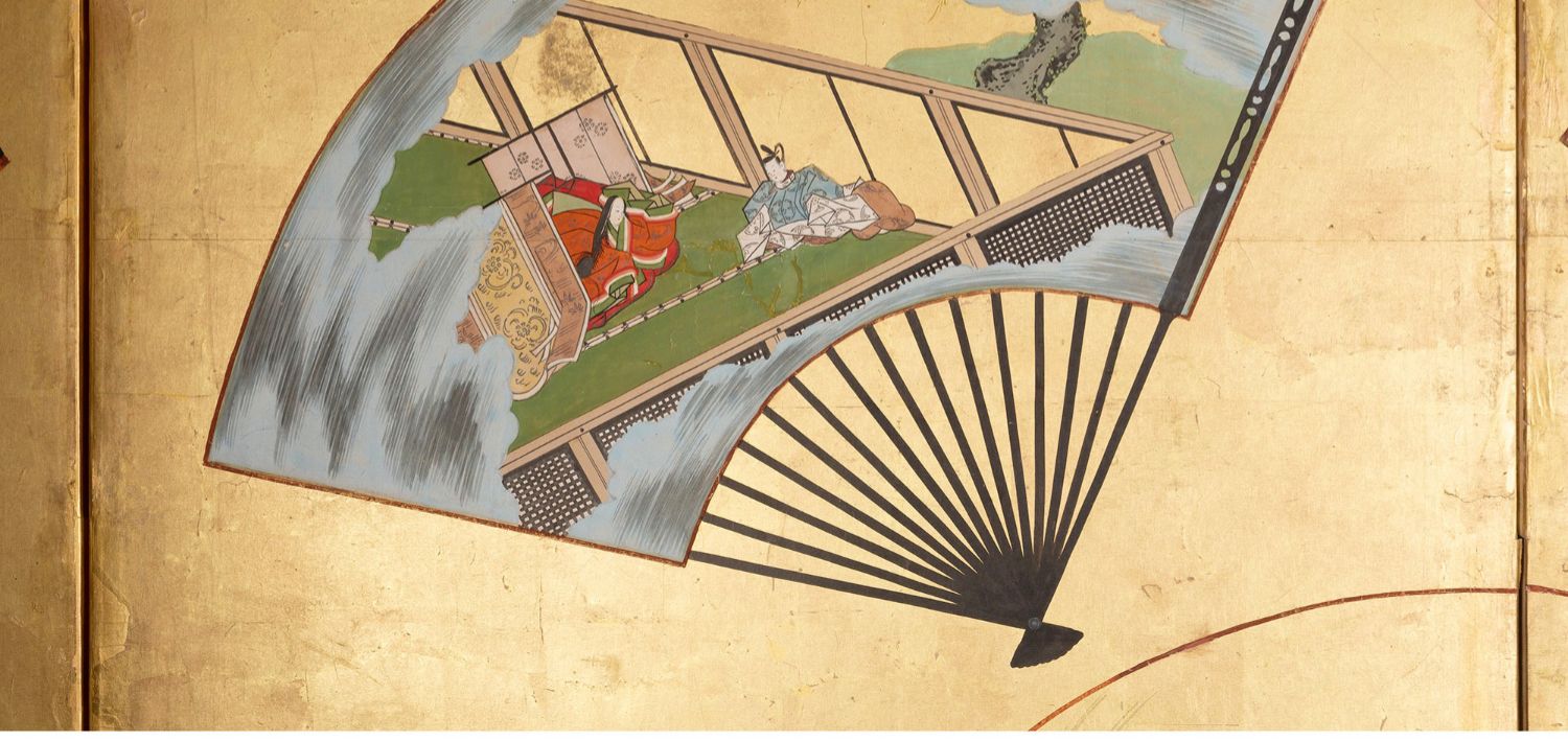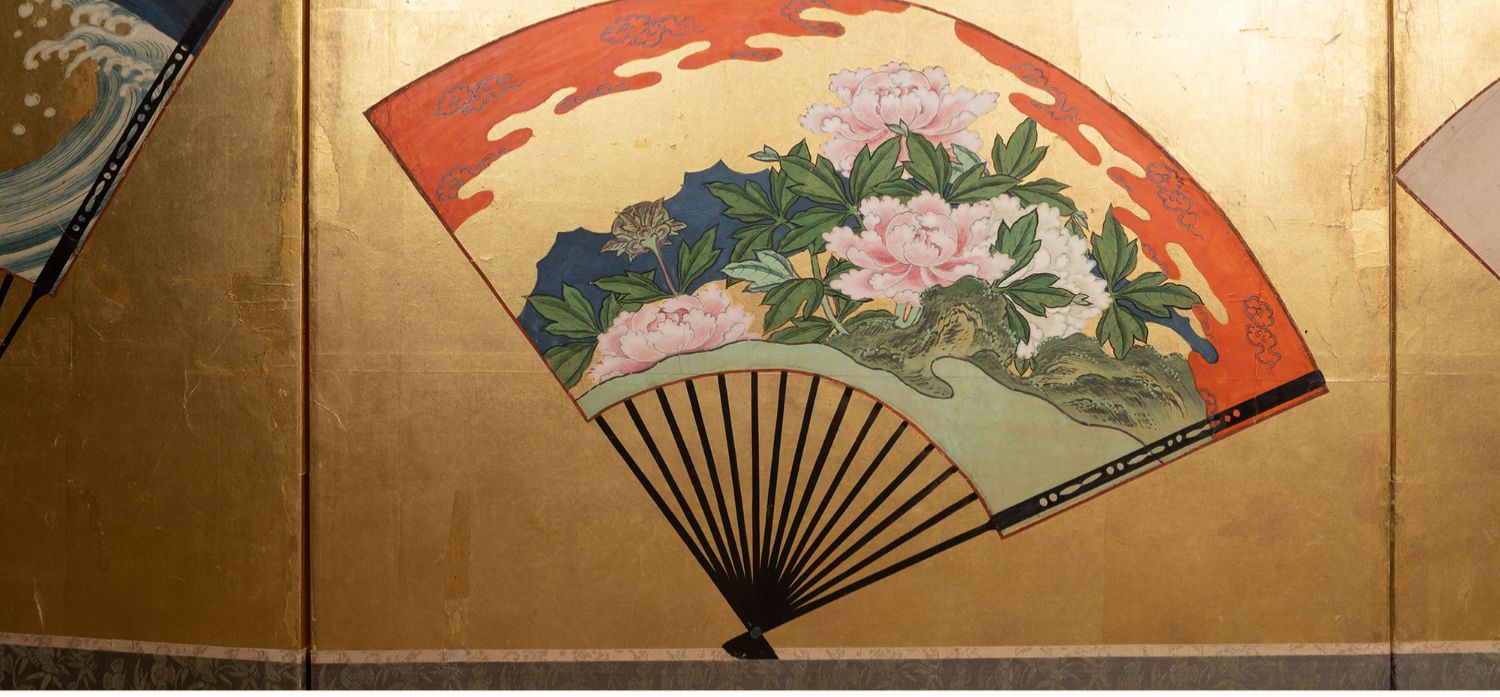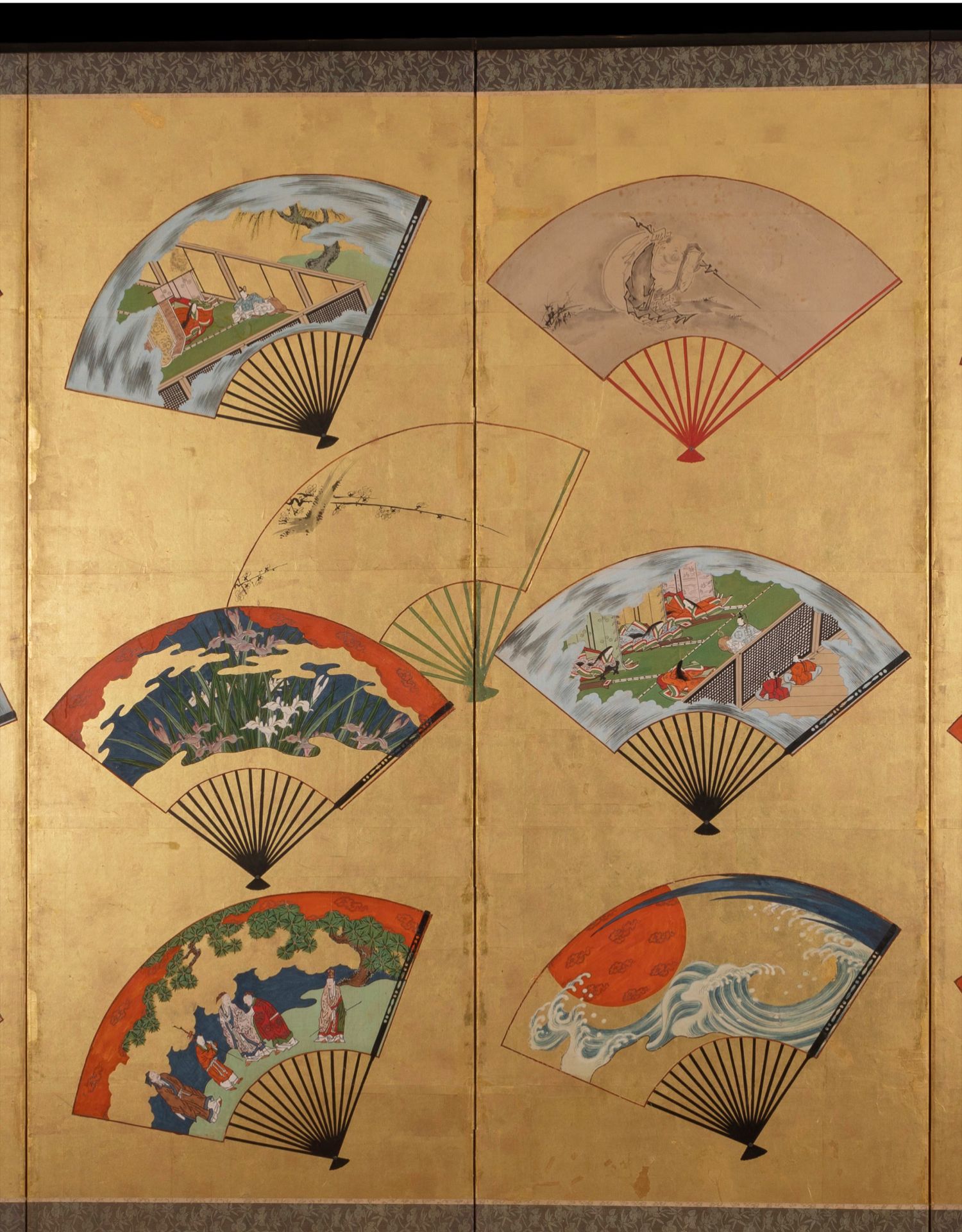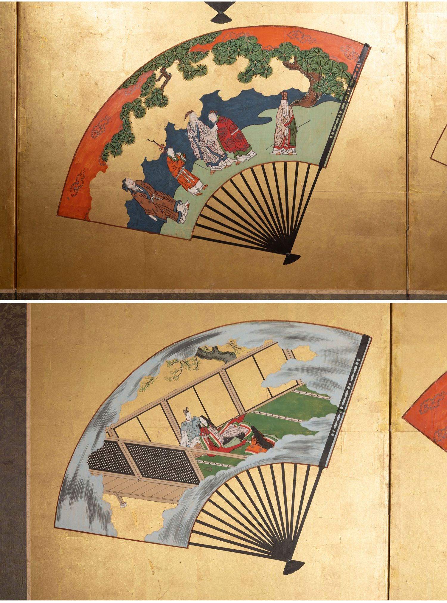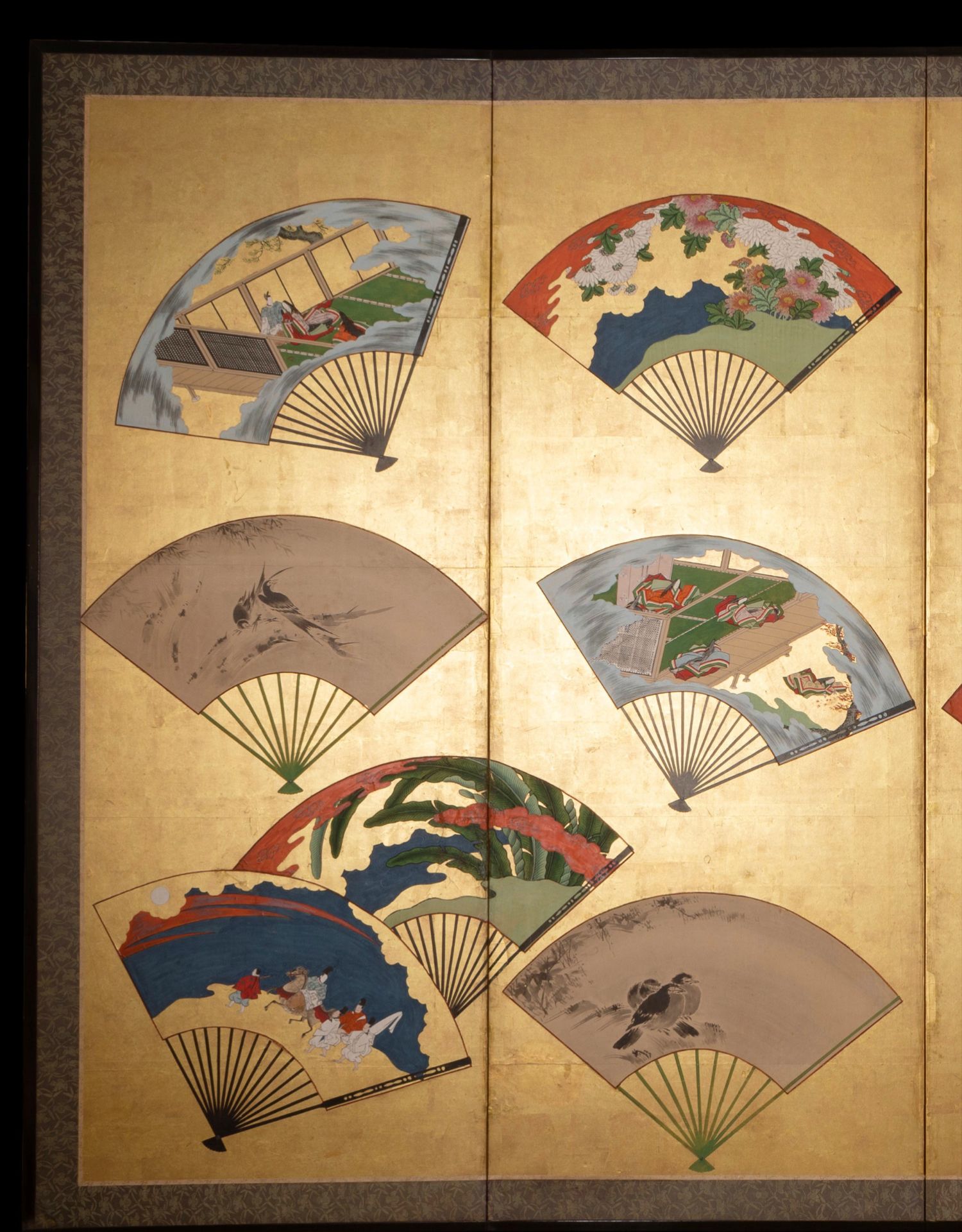 独角鹿西洋古董日本江户时期金地纸本着色东瀛折扇六曲日式屏风