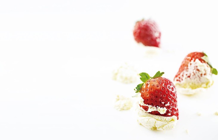 「食材」新西兰动物奶油,乳酪戚风蛋糕,红颜草莓,鲜榨草莓果蓉布丁,当季新鲜水果。