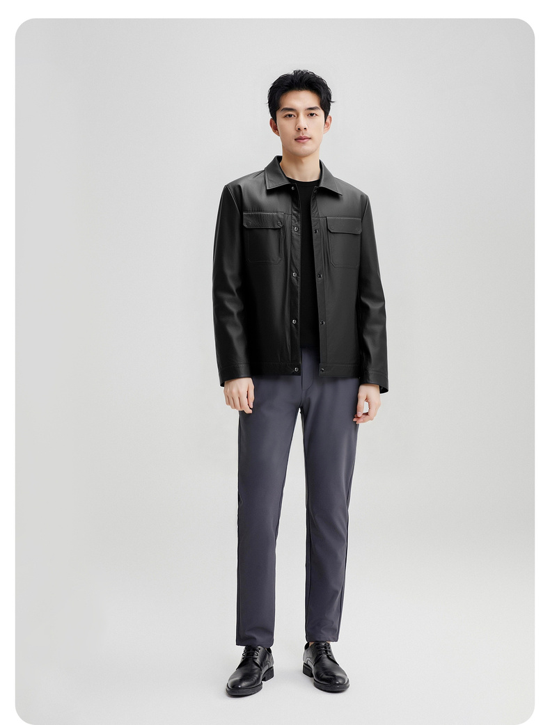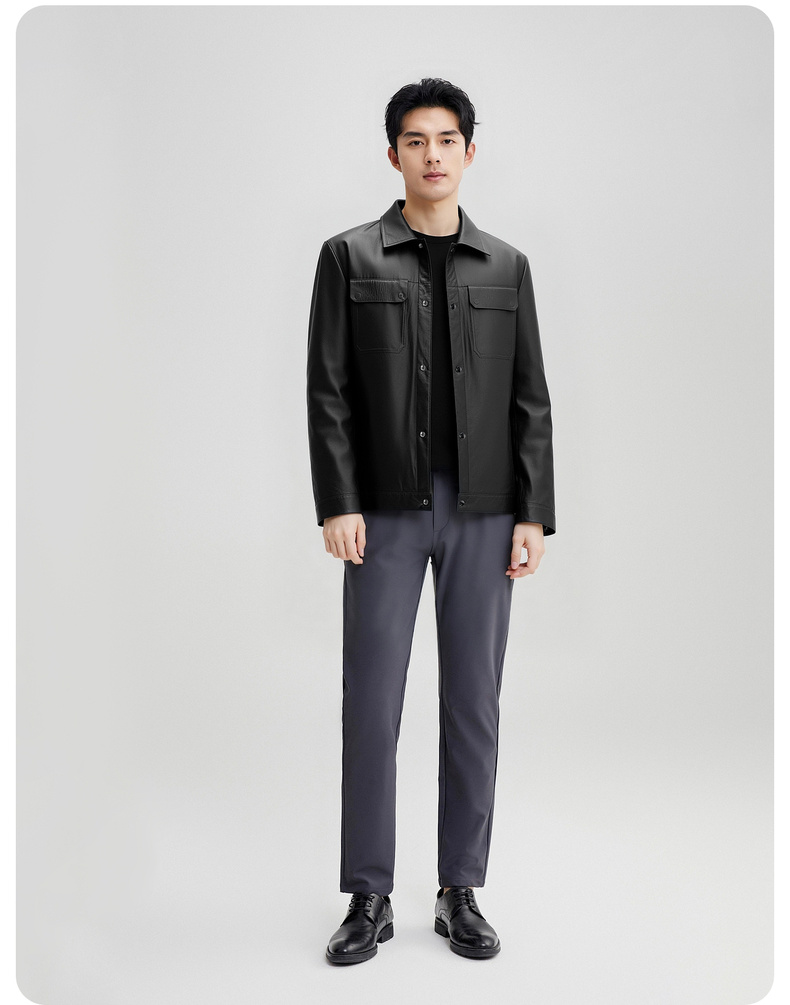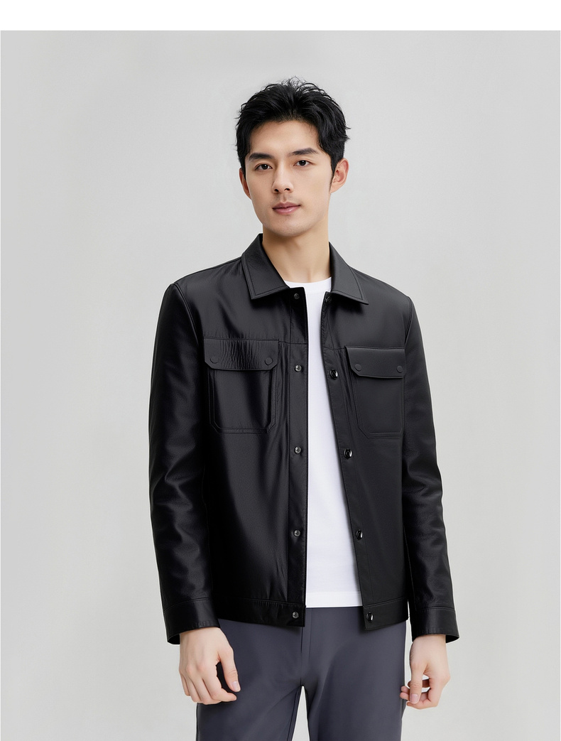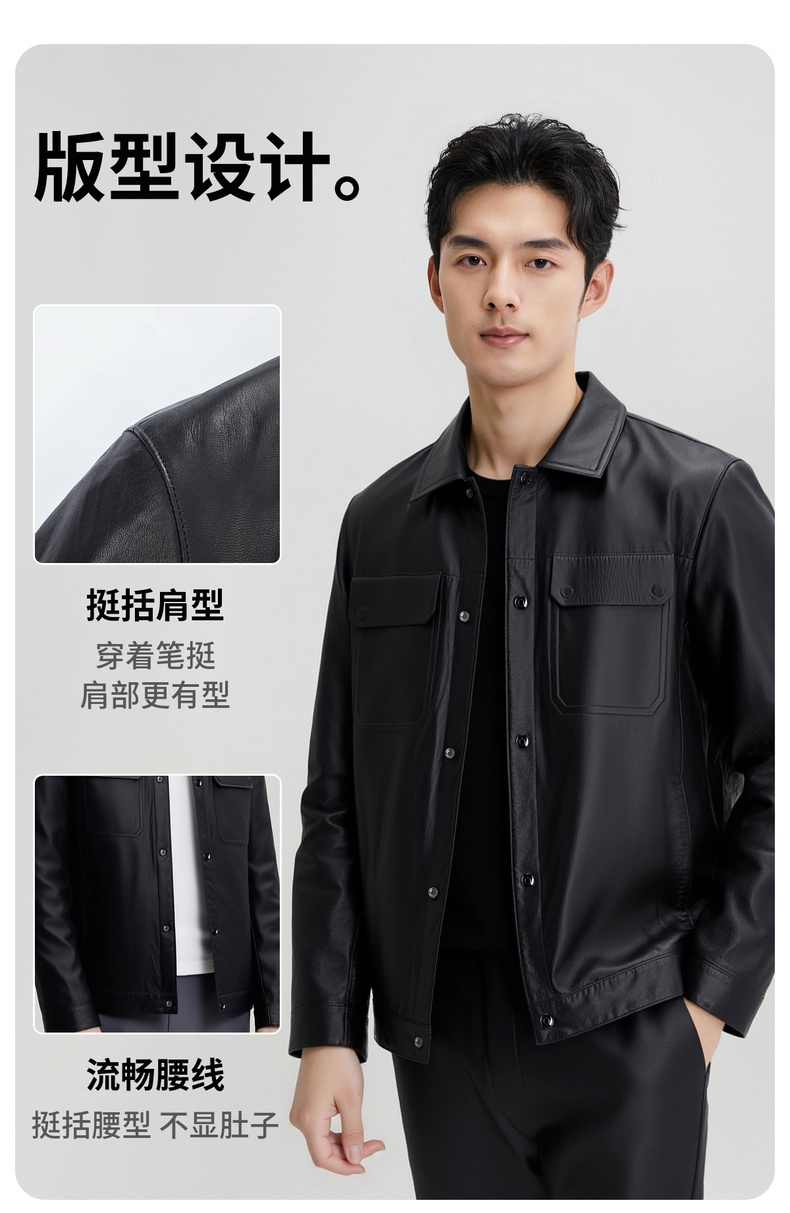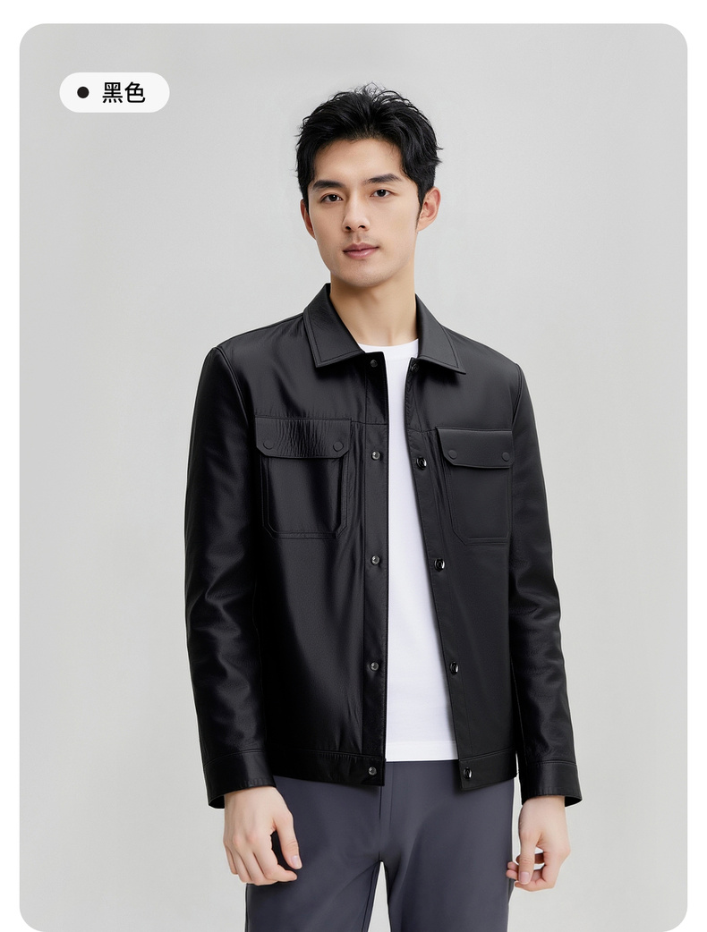 【100%山羊皮】圣得西男士商务工装皮夹克2025秋季时尚翻领皮衣