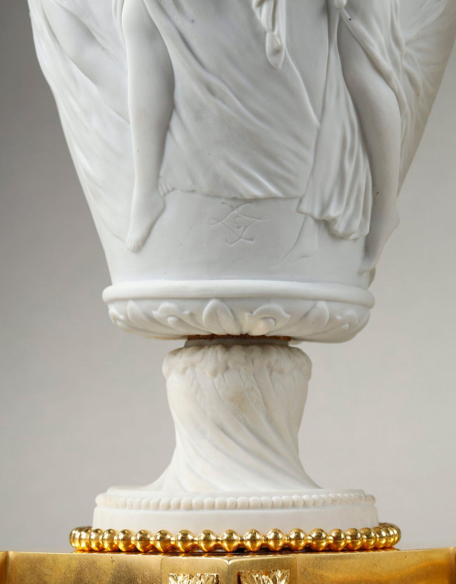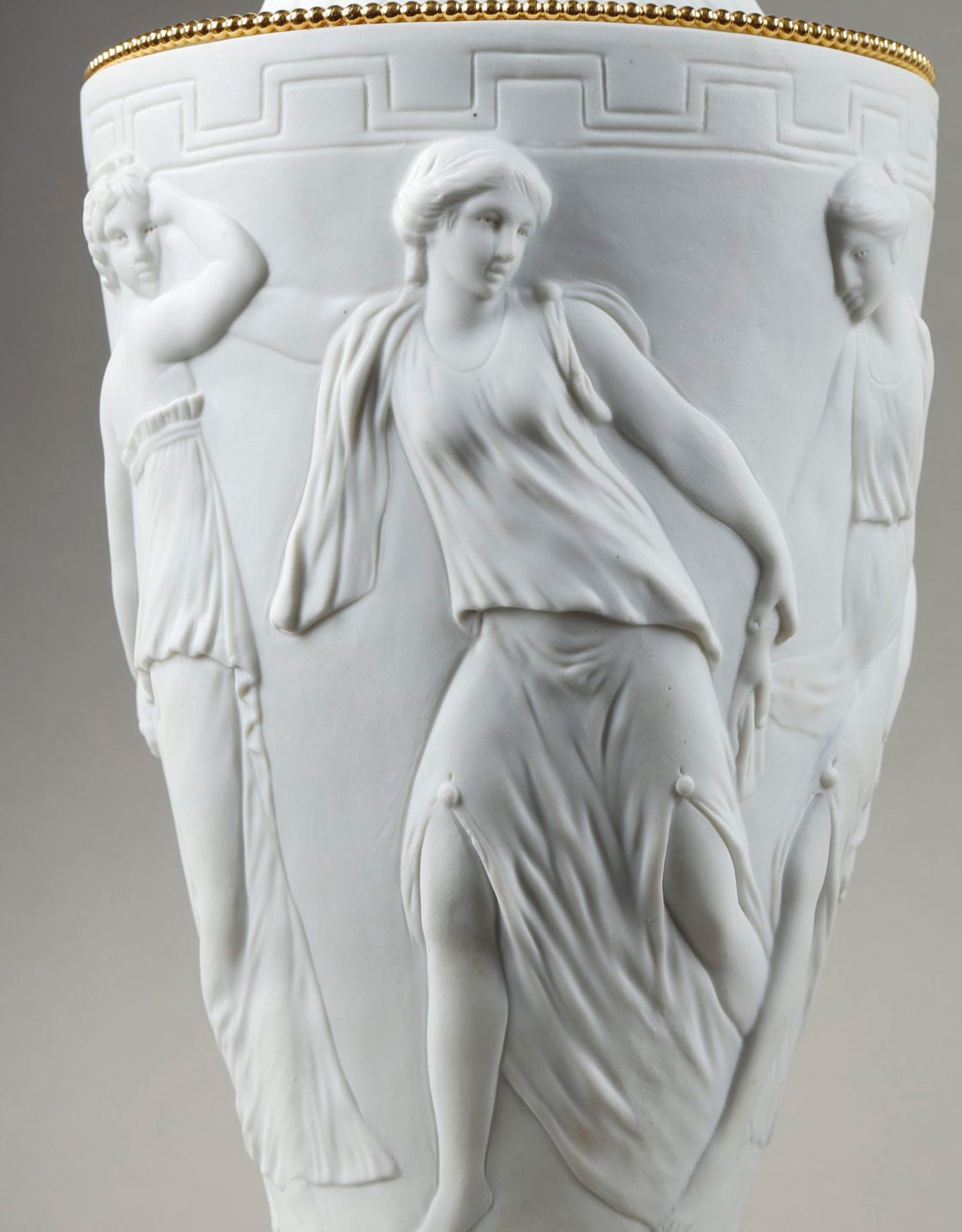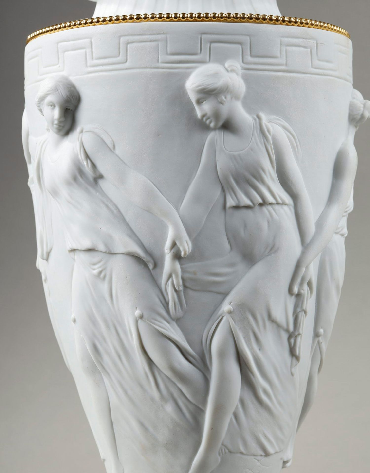 独角鹿西洋古董法国新古典主义舞动仙女浮雕素胎瓷铜鎏金带盖对瓶