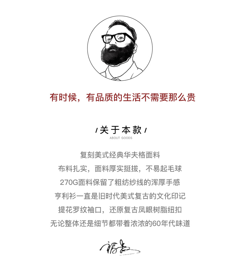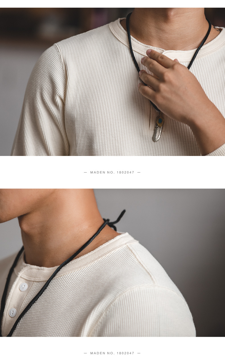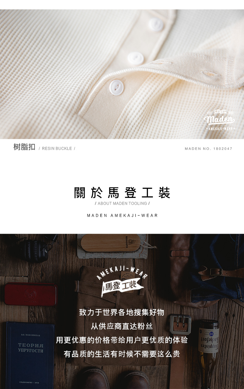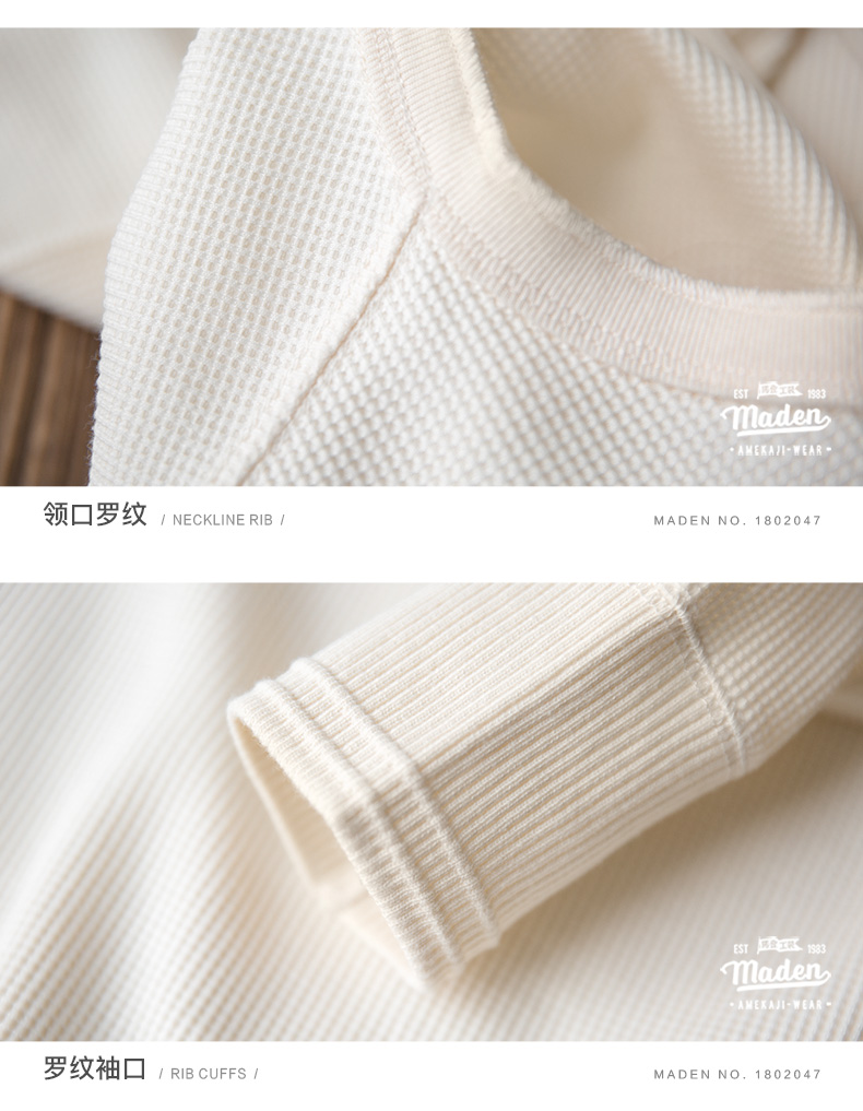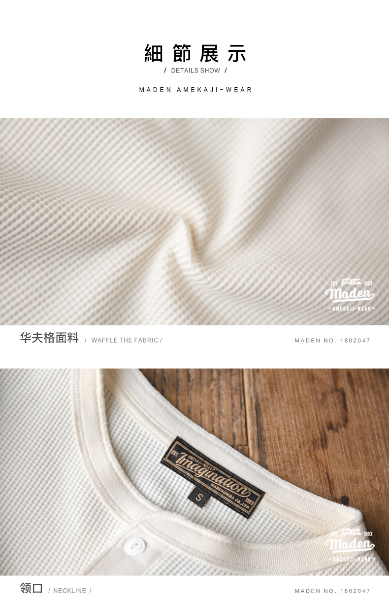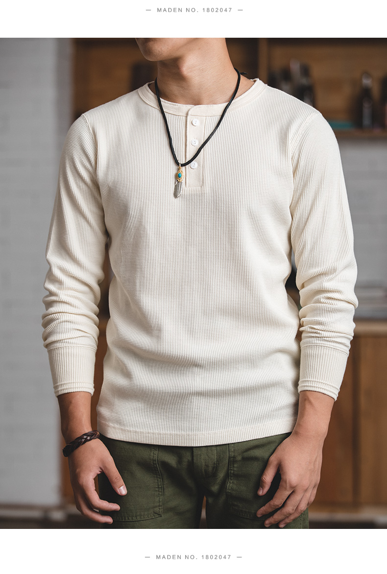 马登工装 vintage重磅华夫格亨利衫复古长袖阿美咔叽纯色卫衣男