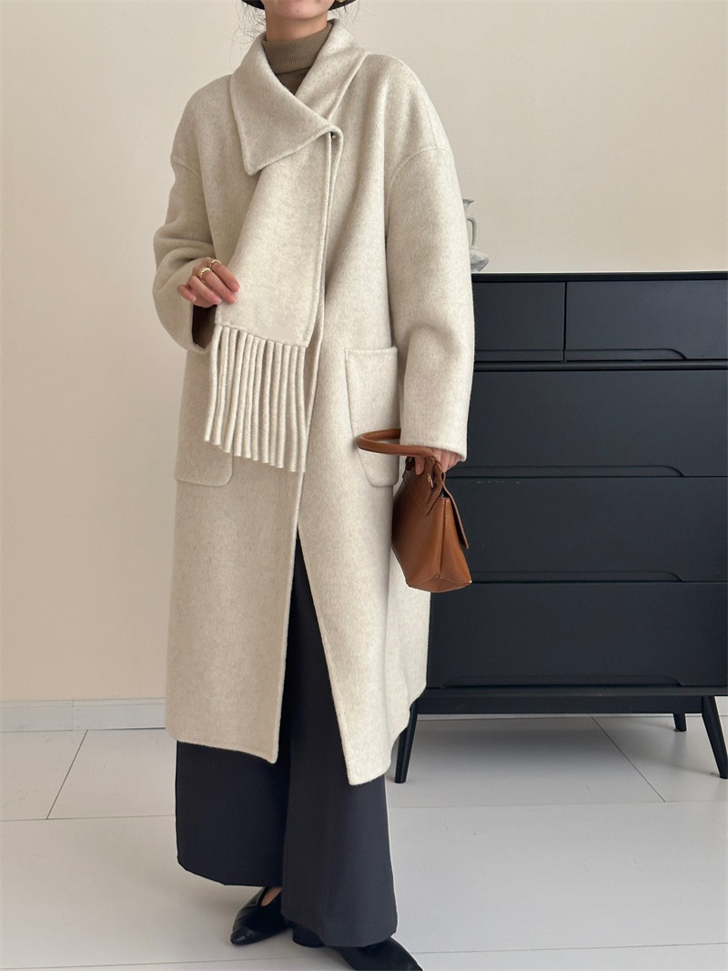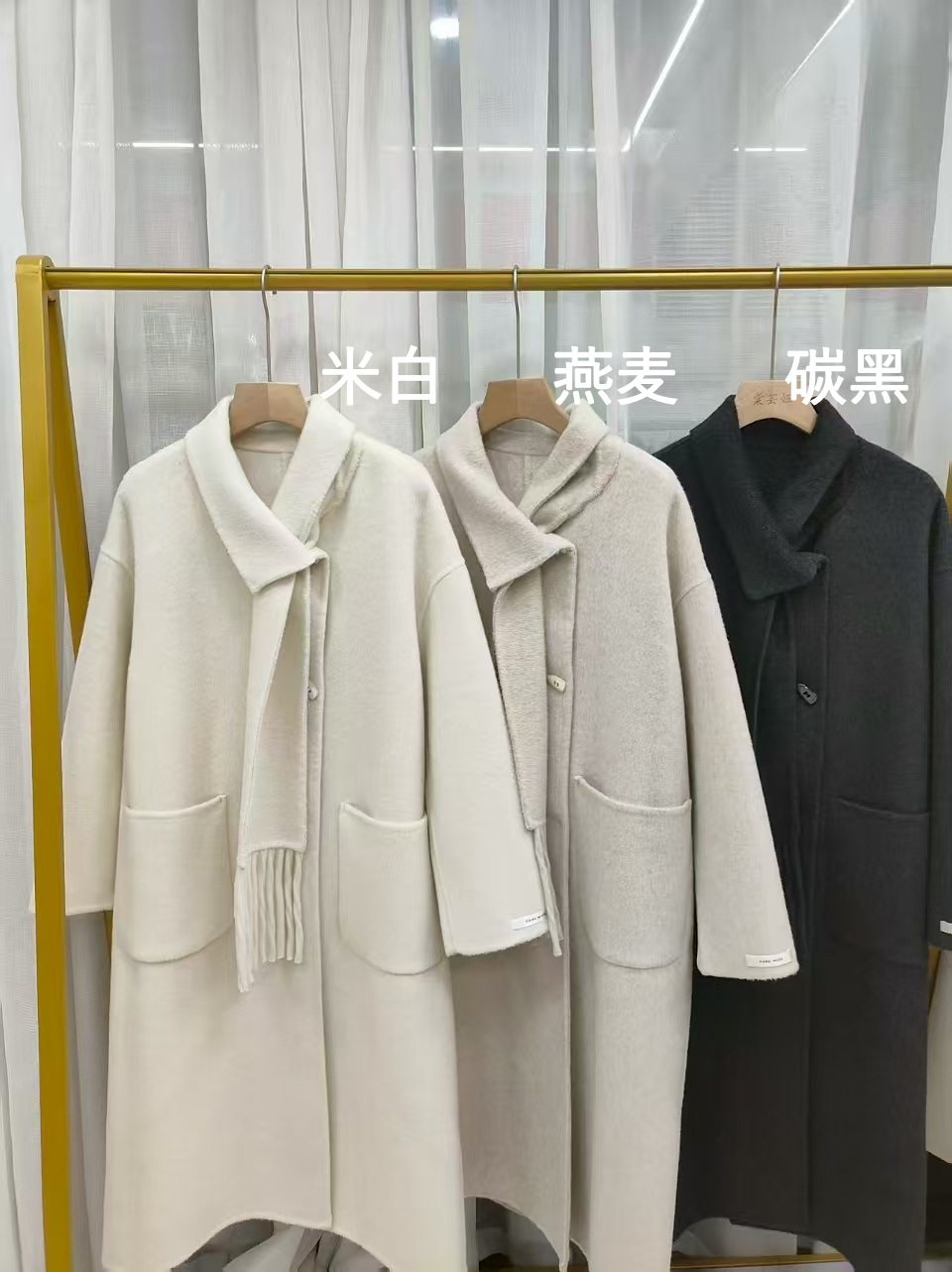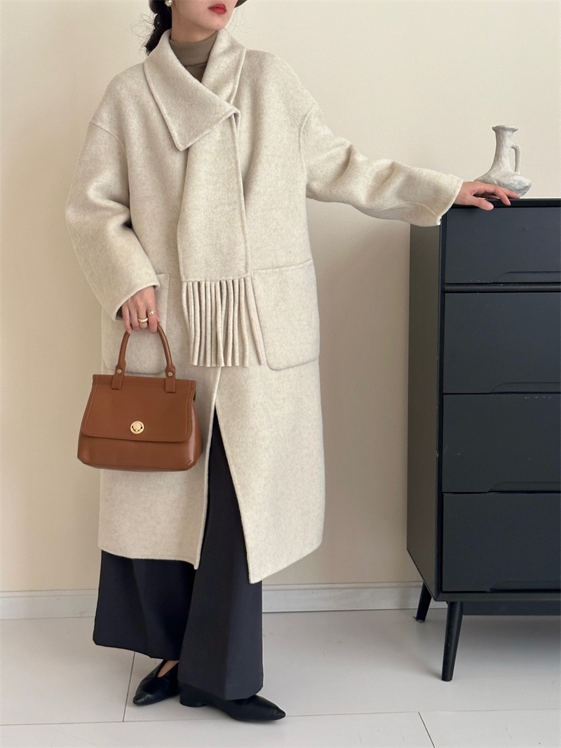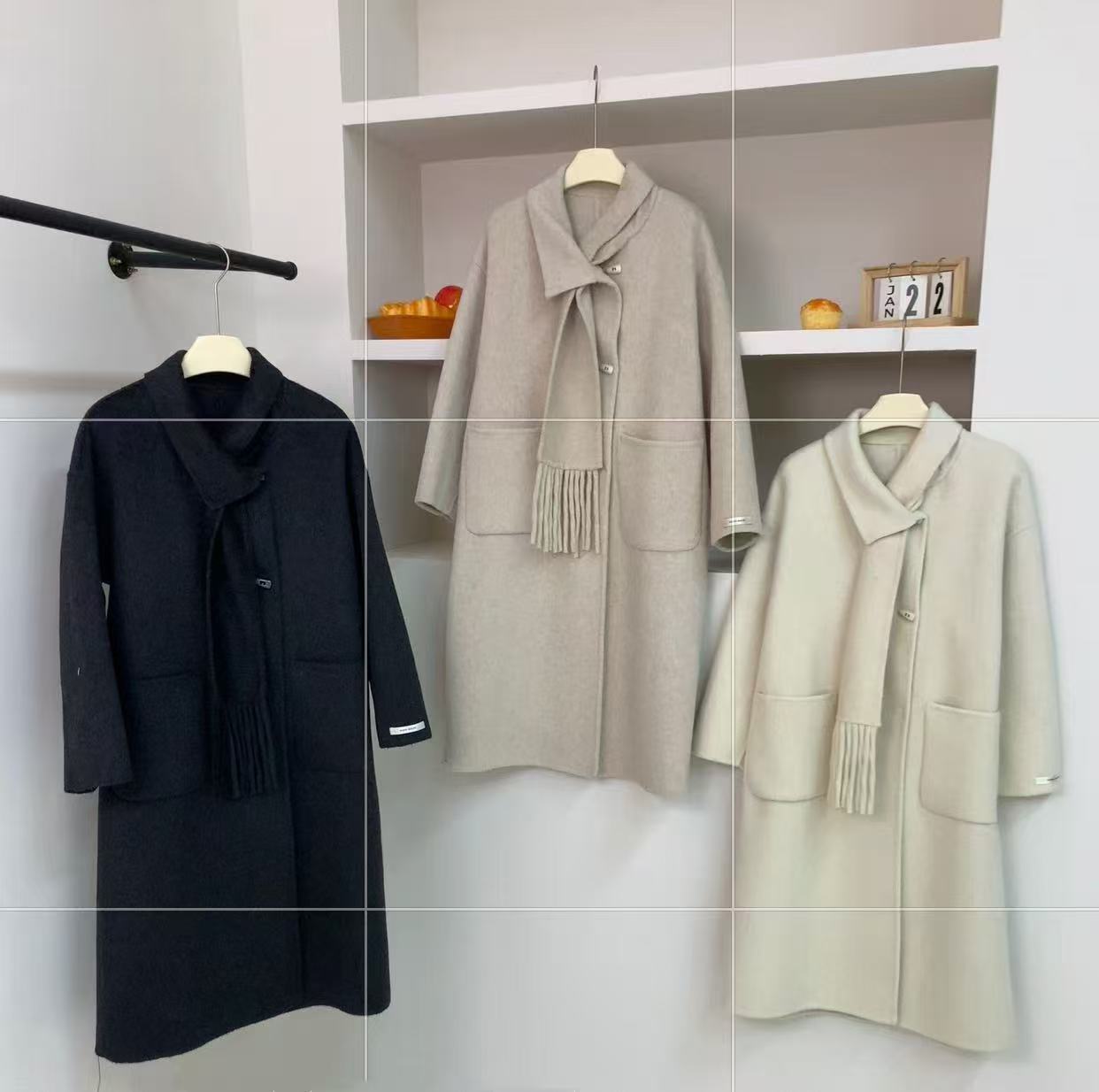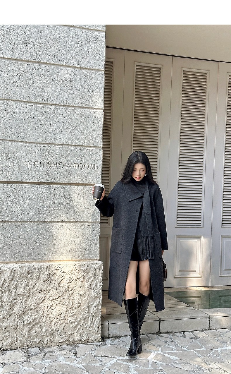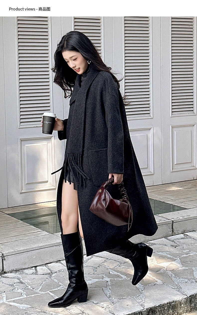 【YW】无忧购围巾款单排扣落肩袖纯色羊毛大衣毛呢外套8806(截单后3-5天发货)