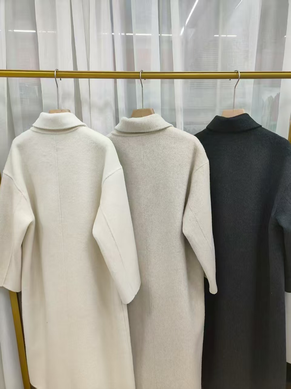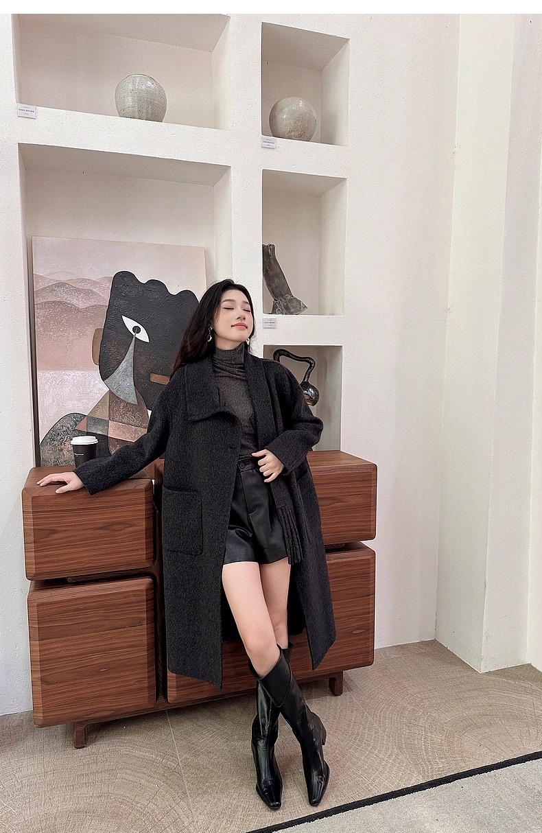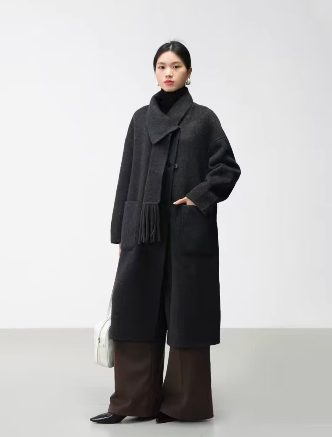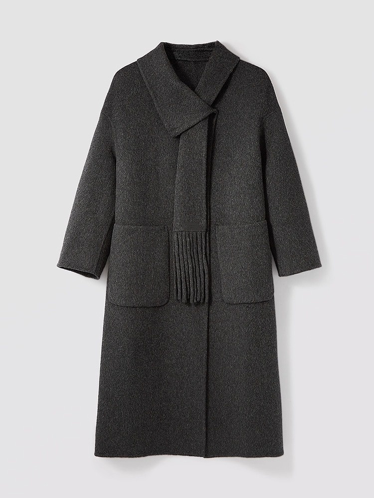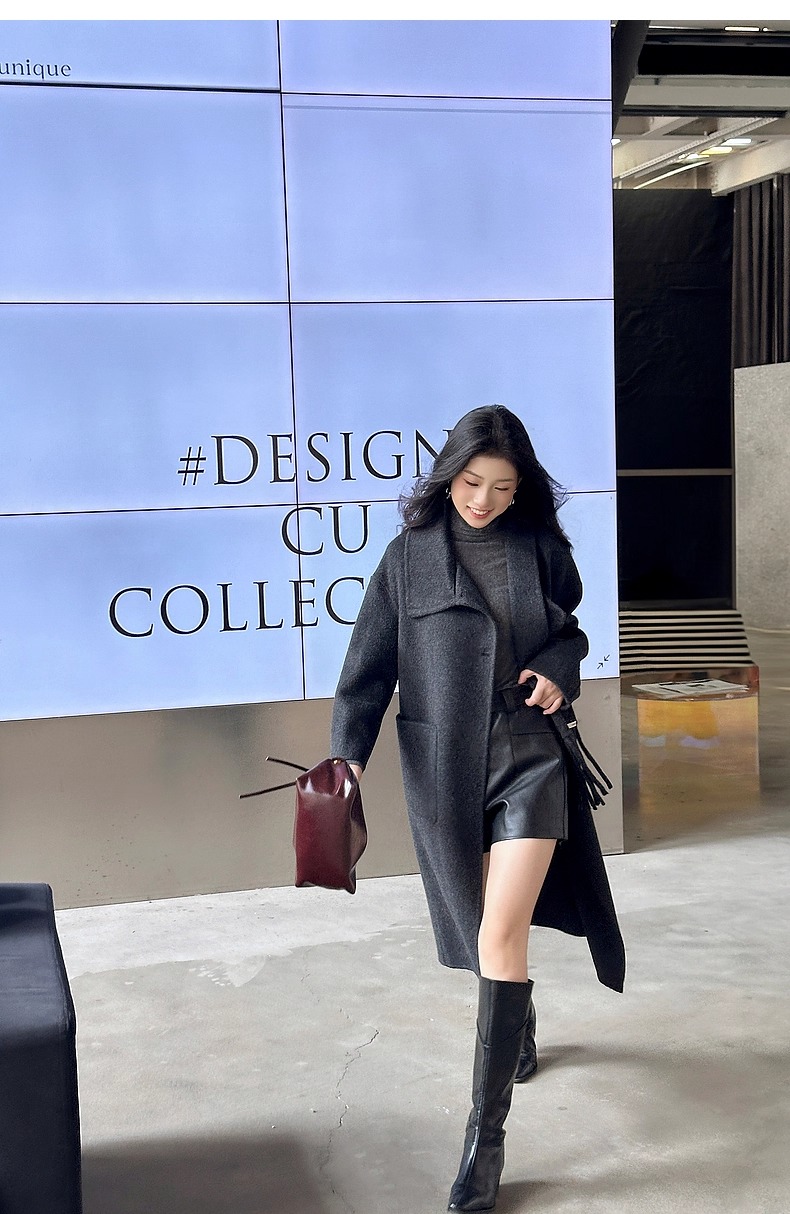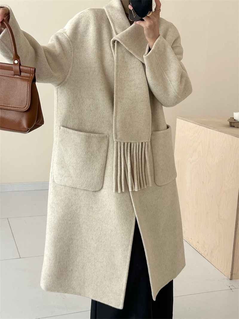 【YW】无忧购围巾款单排扣落肩袖纯色羊毛大衣毛呢外套8806(截单后3-5天发货)