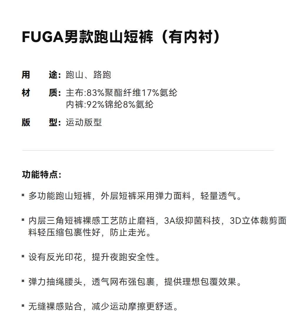 KAILAS凯乐石 FUGA男款跑山短裤(有内衬)KG2525302