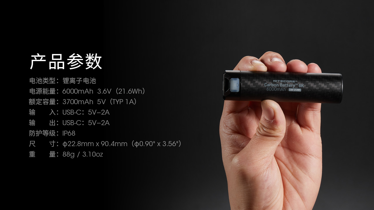 NITECORE奈特科尔Carbon_Battery_6K电池电源21700充电宝6000毫安