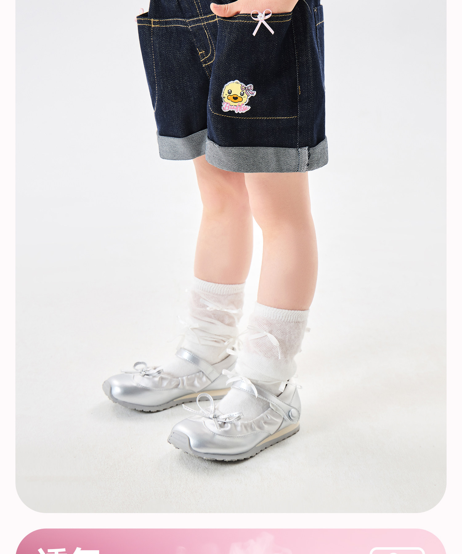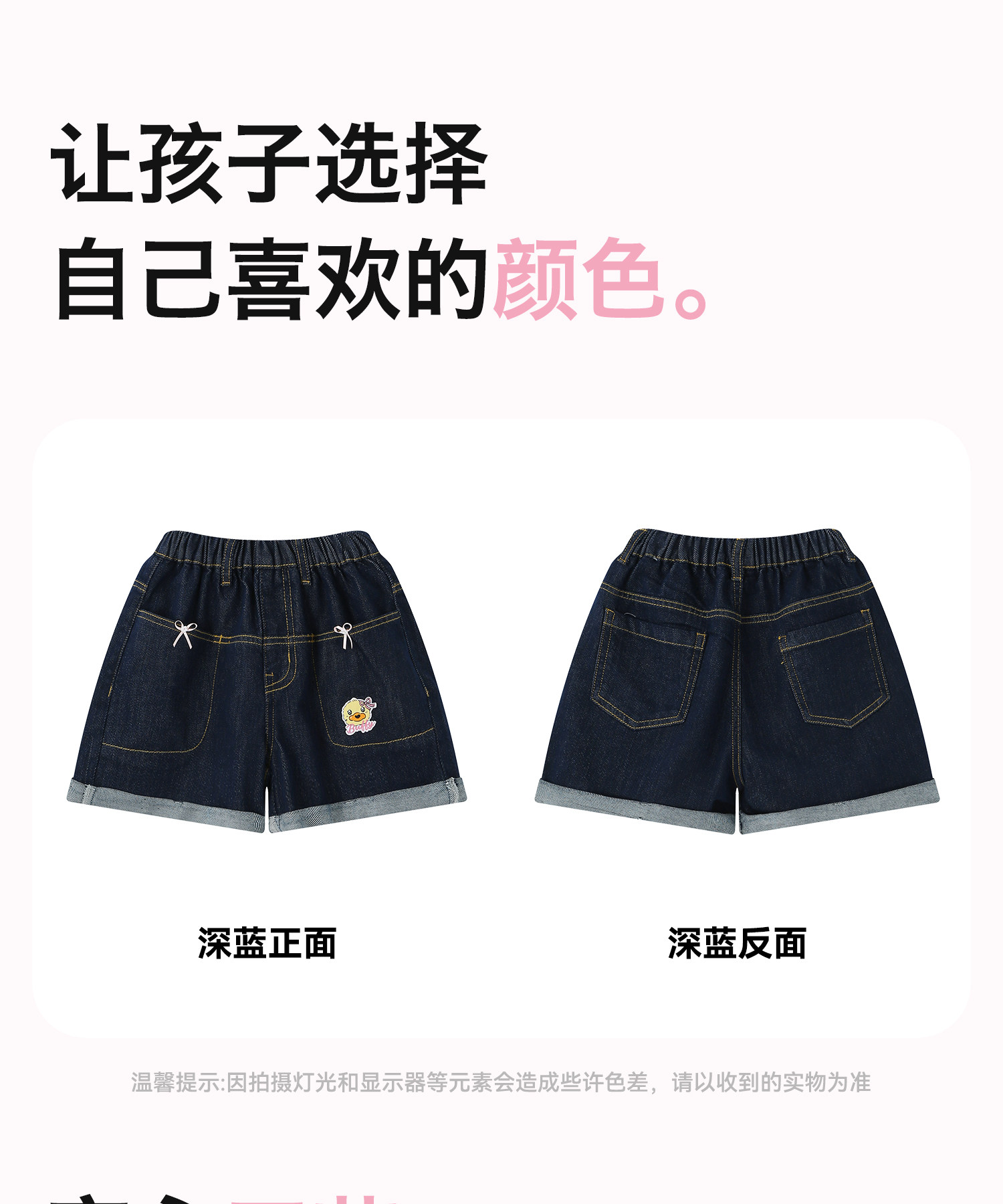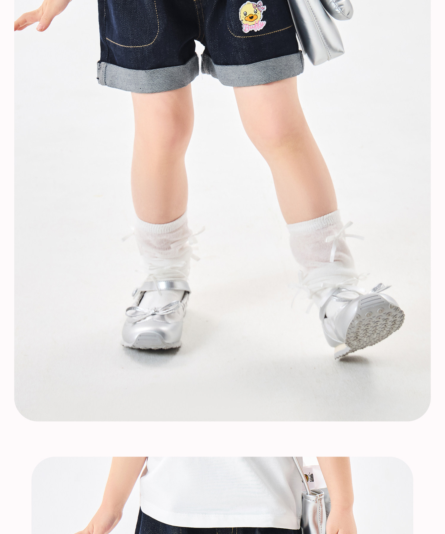 [防褪色]bduck小黄鸭童装女童短裤夏装儿童牛仔裤小女孩五分裤子105-150 FF2752050
