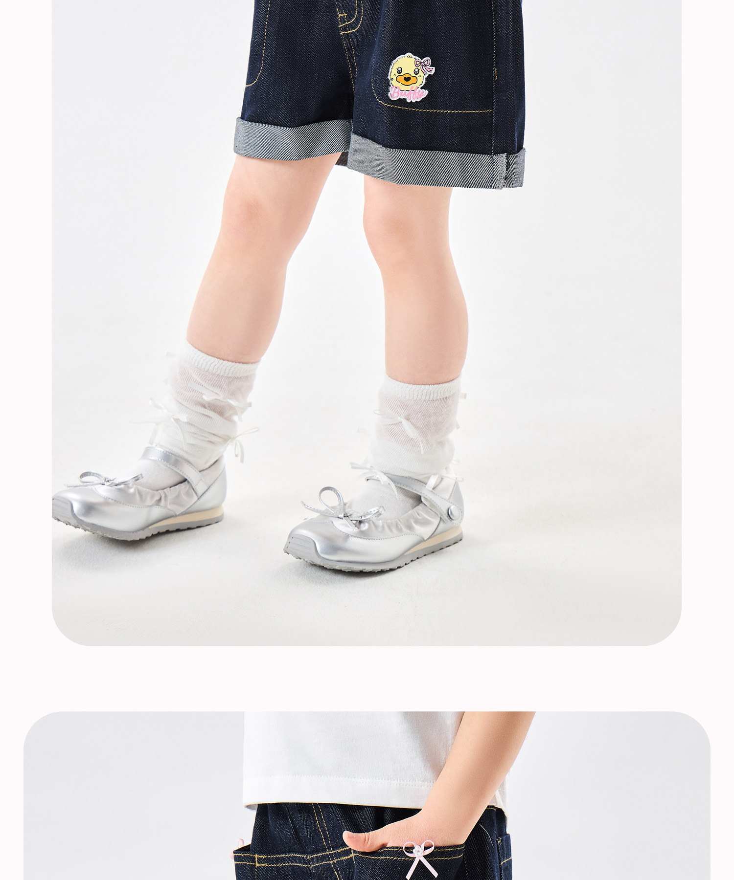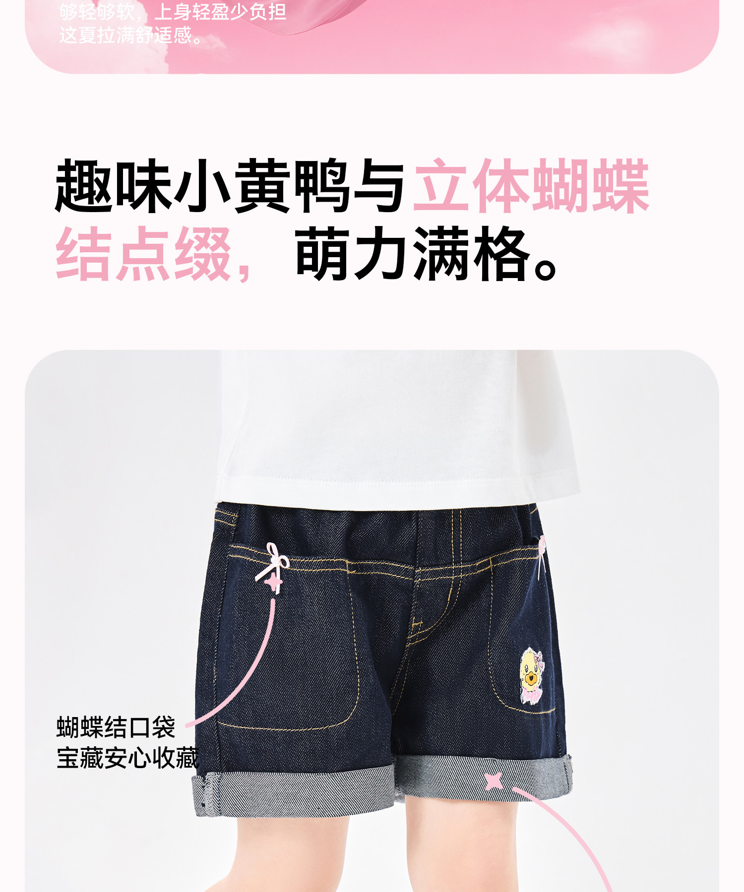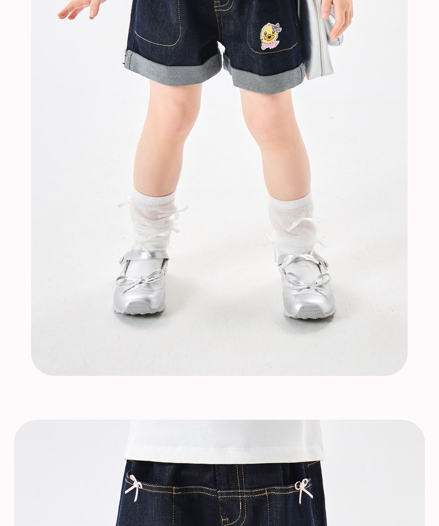[防褪色]bduck小黄鸭童装女童短裤夏装儿童牛仔裤小女孩五分裤子105-150 FF2752050